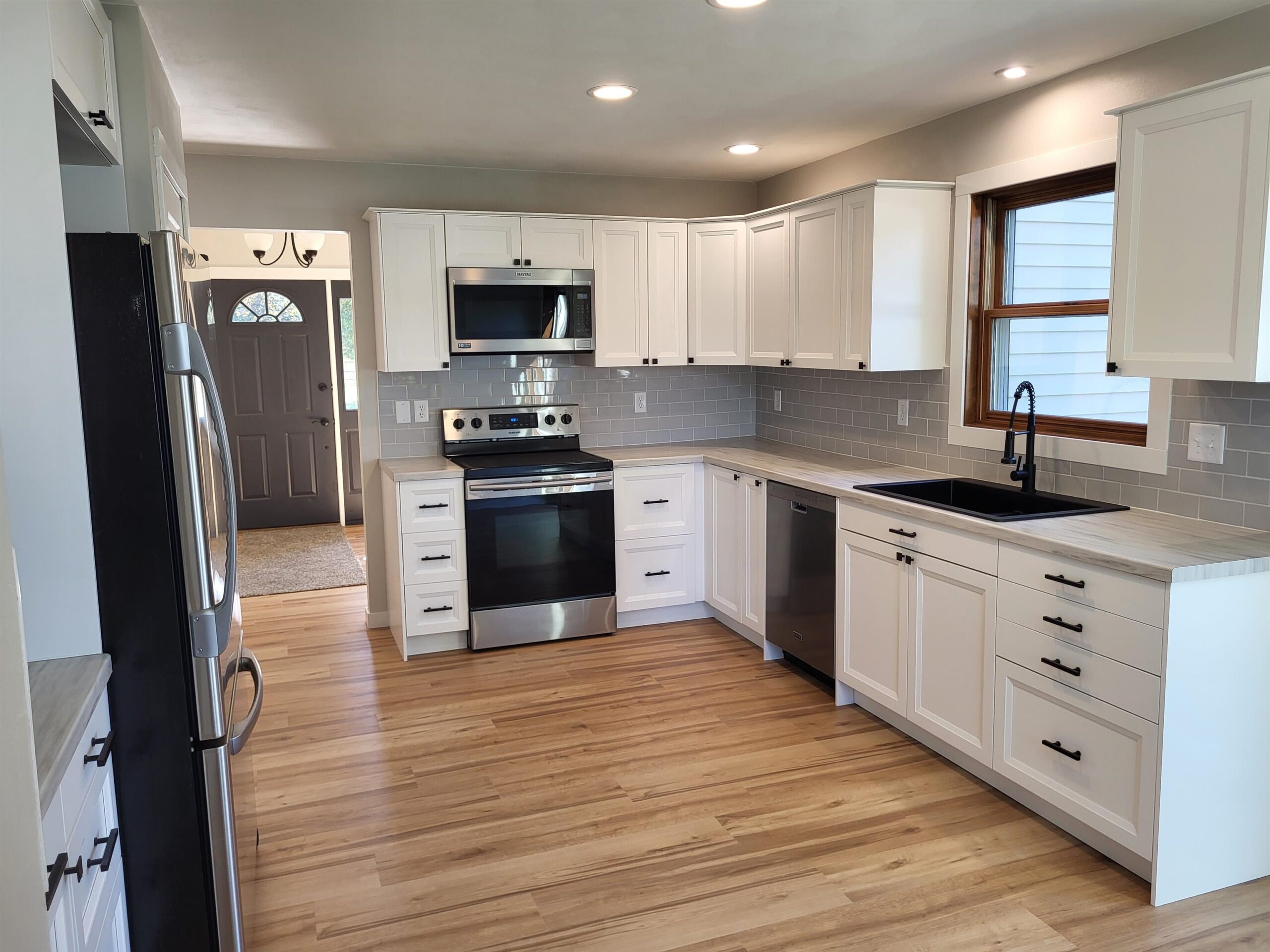 Welcome to a stunning, like-new Menasha home! Completely remodeled in 2025, this 3-bed, 2.5-bath residence is a true gem. The bright interior features new solid core doors, LVP flooring, cabinets, fixtures, and trim. The chef's kitchen boasts new cabinets and stainless steel appliances. Relax by the new gas fireplace with a 100-year-old barn beam mantle, or step out onto the deck to enjoy the large, newly landscaped yard with mature trees. The finished lower level is a perfect entertainment space. Located on a quiet street near parks, dining, and groceries, this home also includes a new, extra-wide concrete driveway and a spacious master suite. It's the modern, carefree living you've been waiting for.