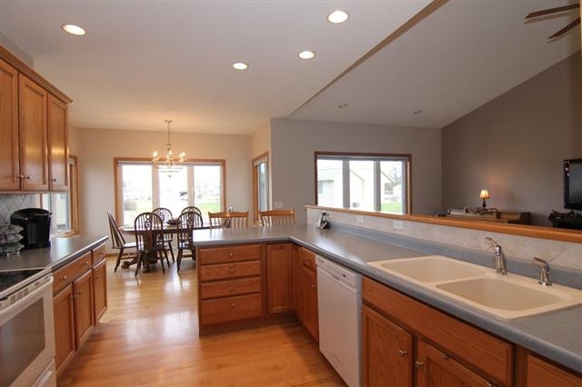 NEW PRICE! Room to grow in this spacious 3 bedroom ranch with an abundance of natural light. Open floor plan, great room & split bedroom layout. Beautiful maple floors. Stay organized with custom built pantry, mud room locker & master bedroom suite walk-in closet. Huge finished LL w/full bath, simply add a wall for 4th bedroom-closet already in place. Lots of storage in garage with stairs to basement. Large deck and backyard. Great location, close to parks. New roof and siding 2005. UHP.