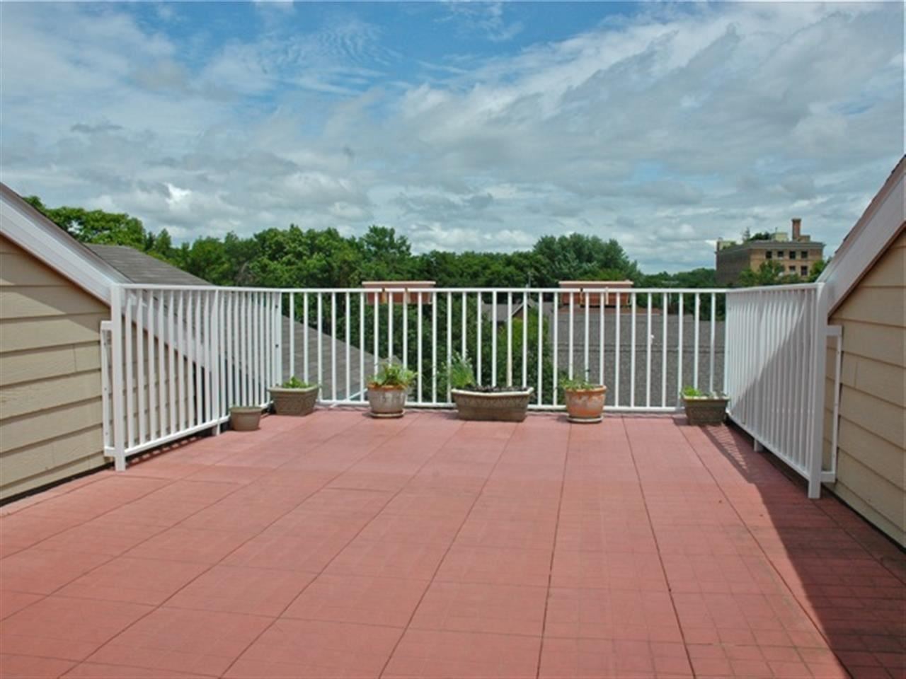 A perfect blend of character (crown molding & built-ins) and newer construction. Professionally painted & cleaned. Quiet corner downtown condo on top two floors offers treetop views. Ample open space with great storage, 2 car parking, & XXL roof terrace (Private-No Neighbors!) Foyer w/open staircase, formal-but-open dining, large laundry rm w/extra storage, & gas + SS kitchen. 2nd fl. king sized master suite, cozy sitting rm w/gas FP, huge walk-in closet w/tons of organizers.