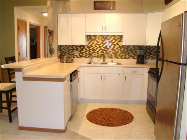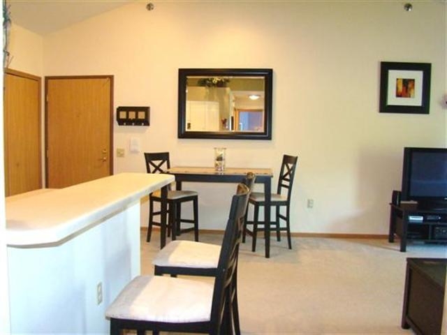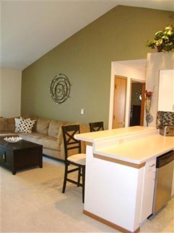 Beautiful, corner condo in great location backing to creek, park, school and athletic facilities! Vaulted ceilings, new stainless appliances, large master bedroom & fresh decorating. Nice deck off living room with view & storage room. Private, 2nd floor location. Heat, water & sewer, hot & soft water included in the $200 fee. Owning is cheaper than renting. Affordable living & condos can be rented so could be good investment with immediate cash flow. Special financing land contract may be available.
