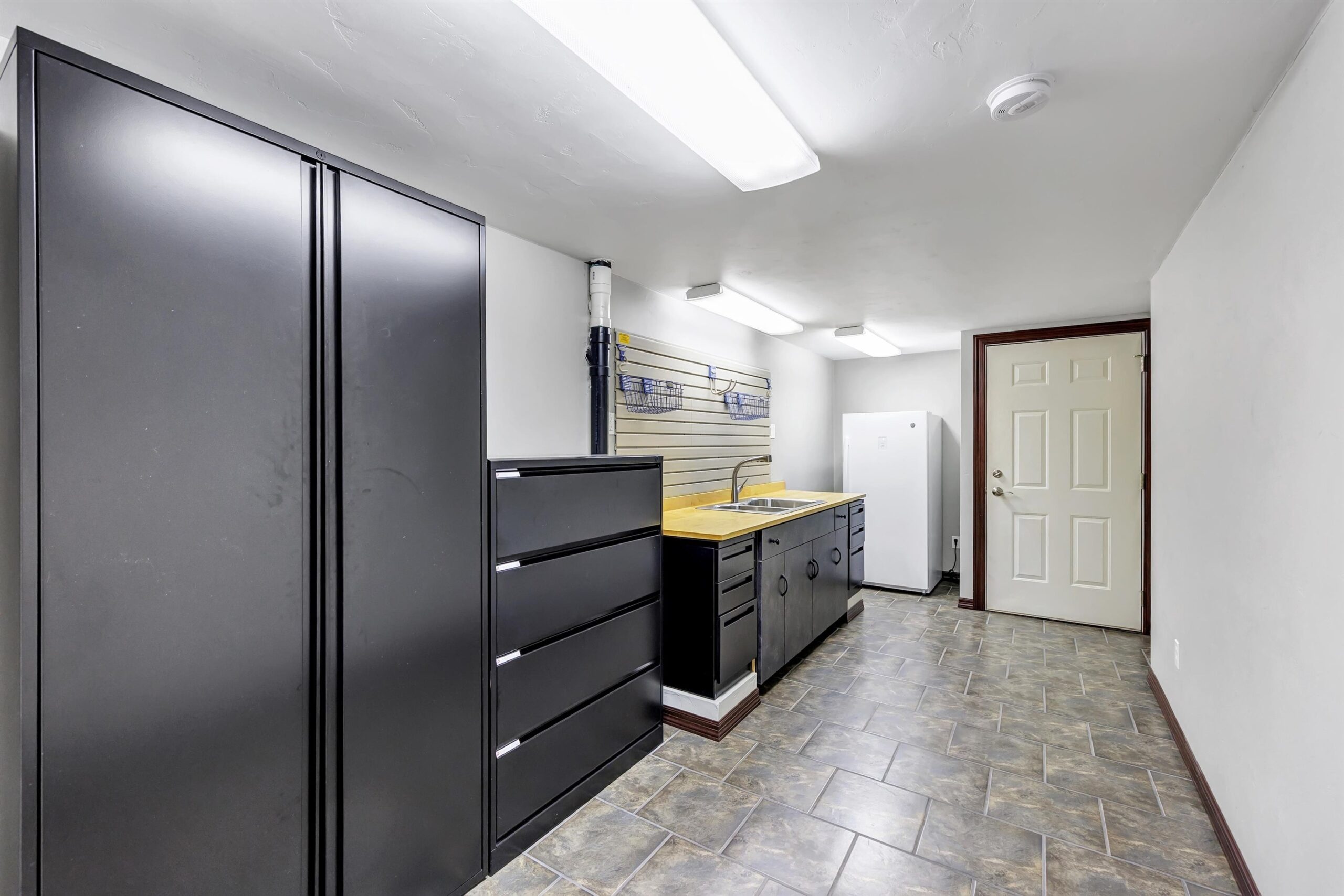Seller's Personal Property, shop vac on mount in garage, retractable extension cord mounted in garage.