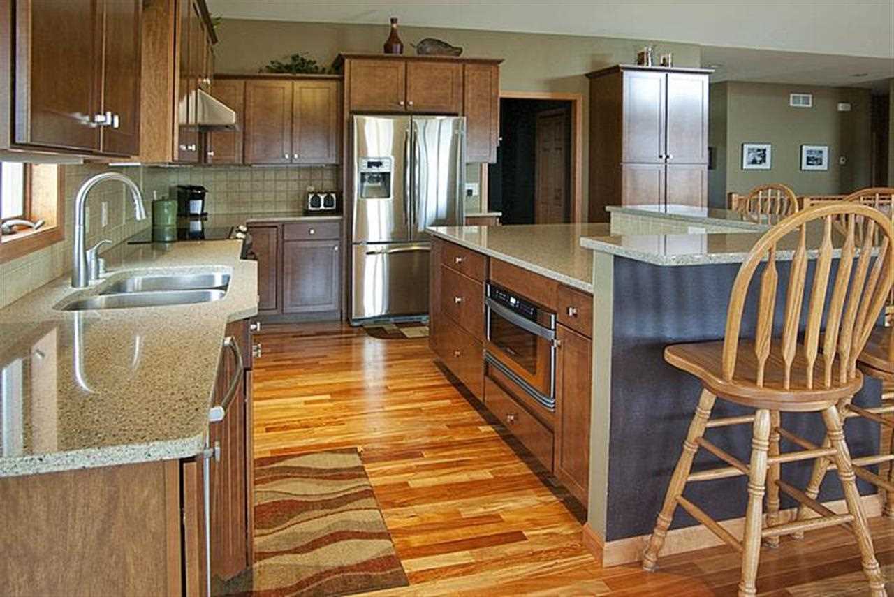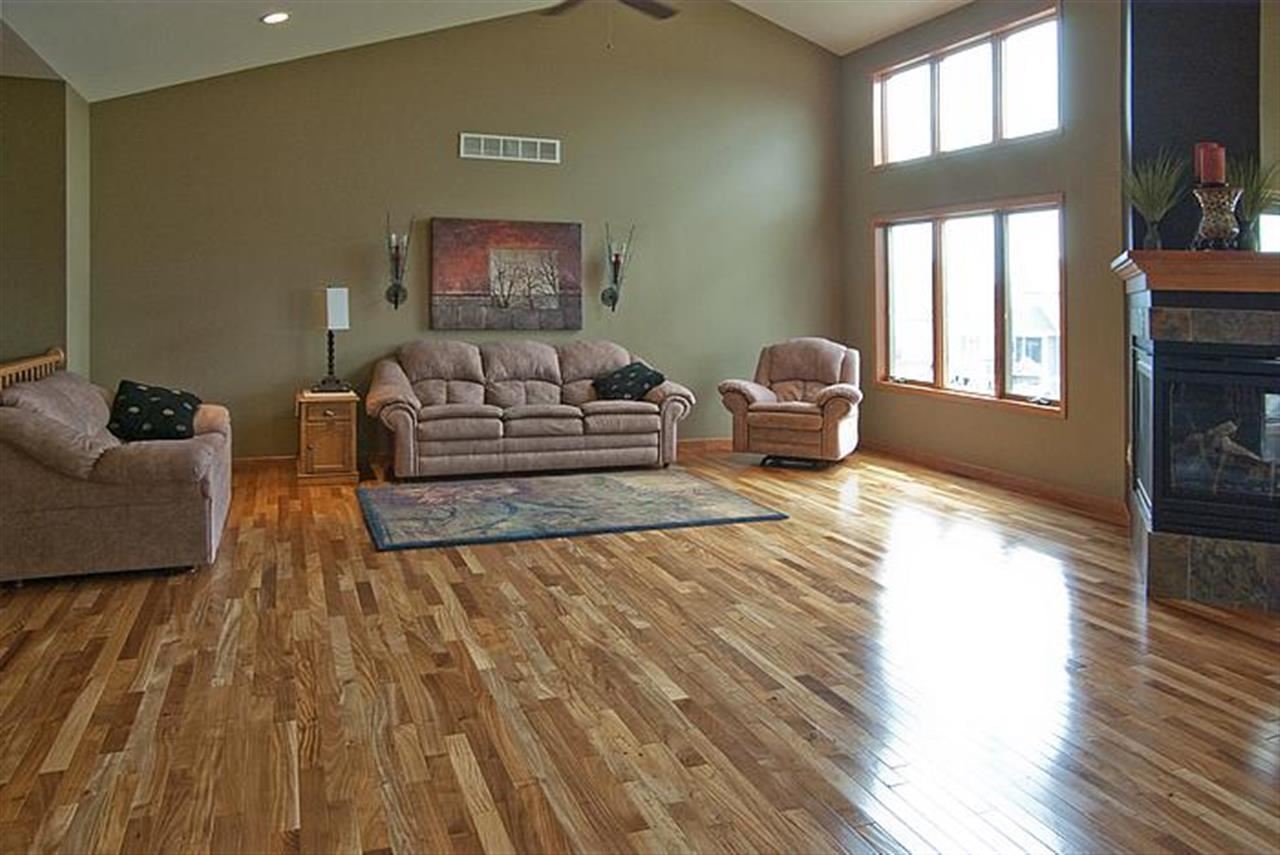 Stunning ranch home w/3 bedrms, 2.5 baths, private 1st floor laundry & 3 car garage! Humongous & gorgeous kitchen w/quartz countertops, maple cabinets+trim, huge work island, tile backsplash, s/s appliances & Brazilian Amendoim wood floors! Great rm w/cathedral ceilings & 2 way fireplace to sitting area! Master suite w/tray ceiling, walk-in closet+whirlpool tub! Walk-out lower level ready to be finished w/rough-in wet bar & 3/4 bathrm! Anderson windows+new roof in 2012! Set up for 2-zone heating system.