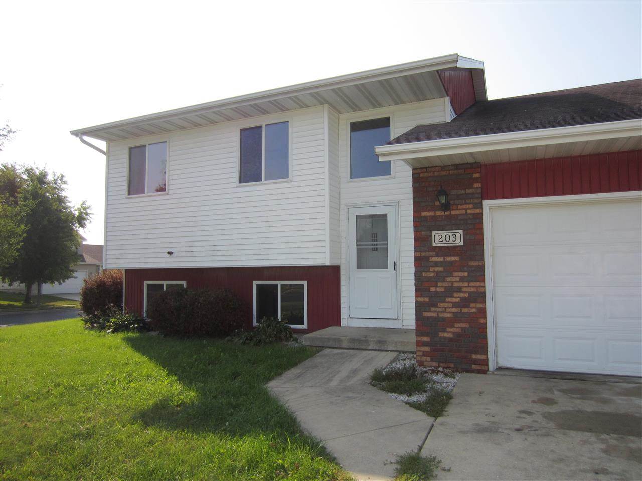 Half duplex with lots of potential. Kitchen and dining area are open to living room. Master bedroom has walk-in closet and full bath. Additional bedroom, full bath, linen closet and laundry on main level. Exposed lower level features large family room with gas-burning fireplace, 3rd bedroom, 3/4 bath, and lots of storage. Corner lot with great yard space and deck. 2 car attached garage. New paint and carpet throughout!