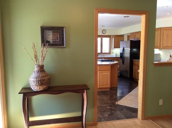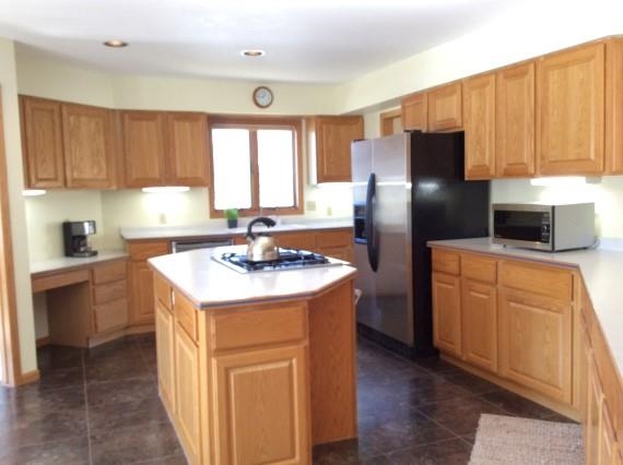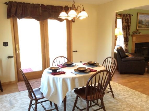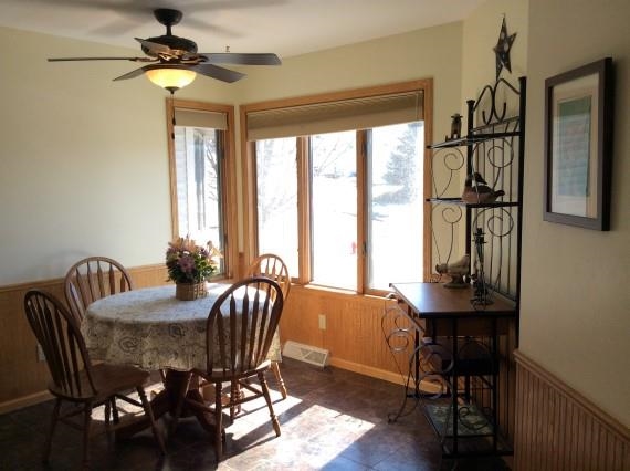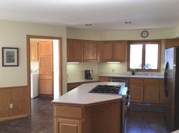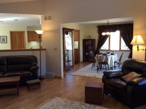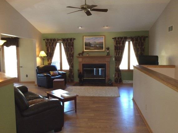 REDUCED $5,000! Spacious home with an abundance of natural light. Nice location on a corner lot. Large fenced yard nicely landscaped with perennials, rose garden and fruit trees. Open floor plan offers a great flow. Huge kitchen with tile floors, stainless appliances, desk and breakfast nook. Main floor laundry room off the kitchen. Formal dining area with walk-out to deck. Fireplace and vaulted ceiling in the living room. Master suite with jetted tub. Huge lower level with room to play. Newer roof. UHP.