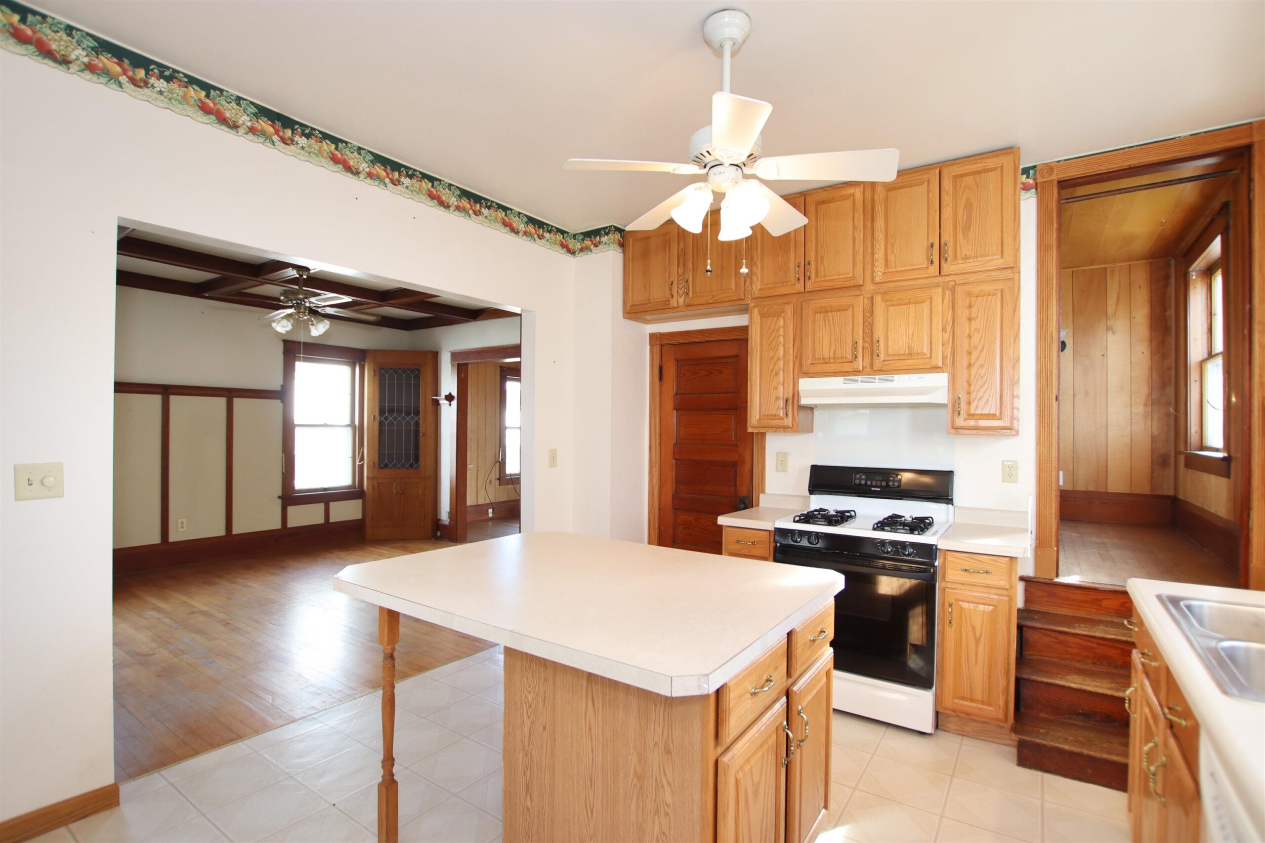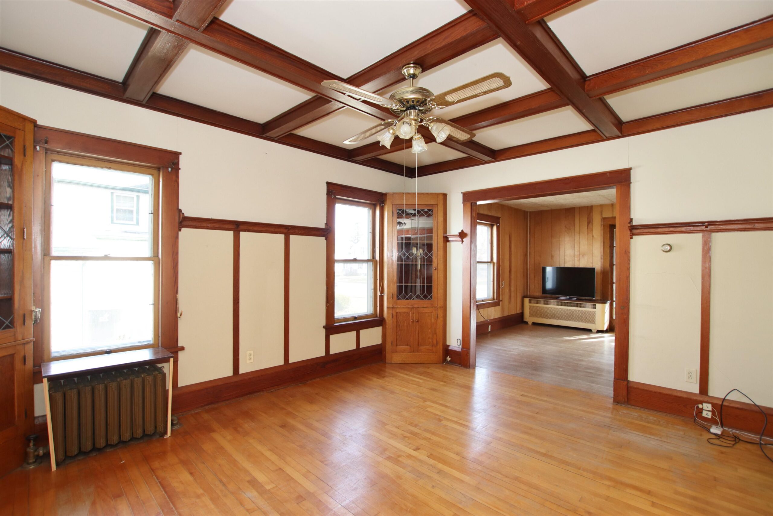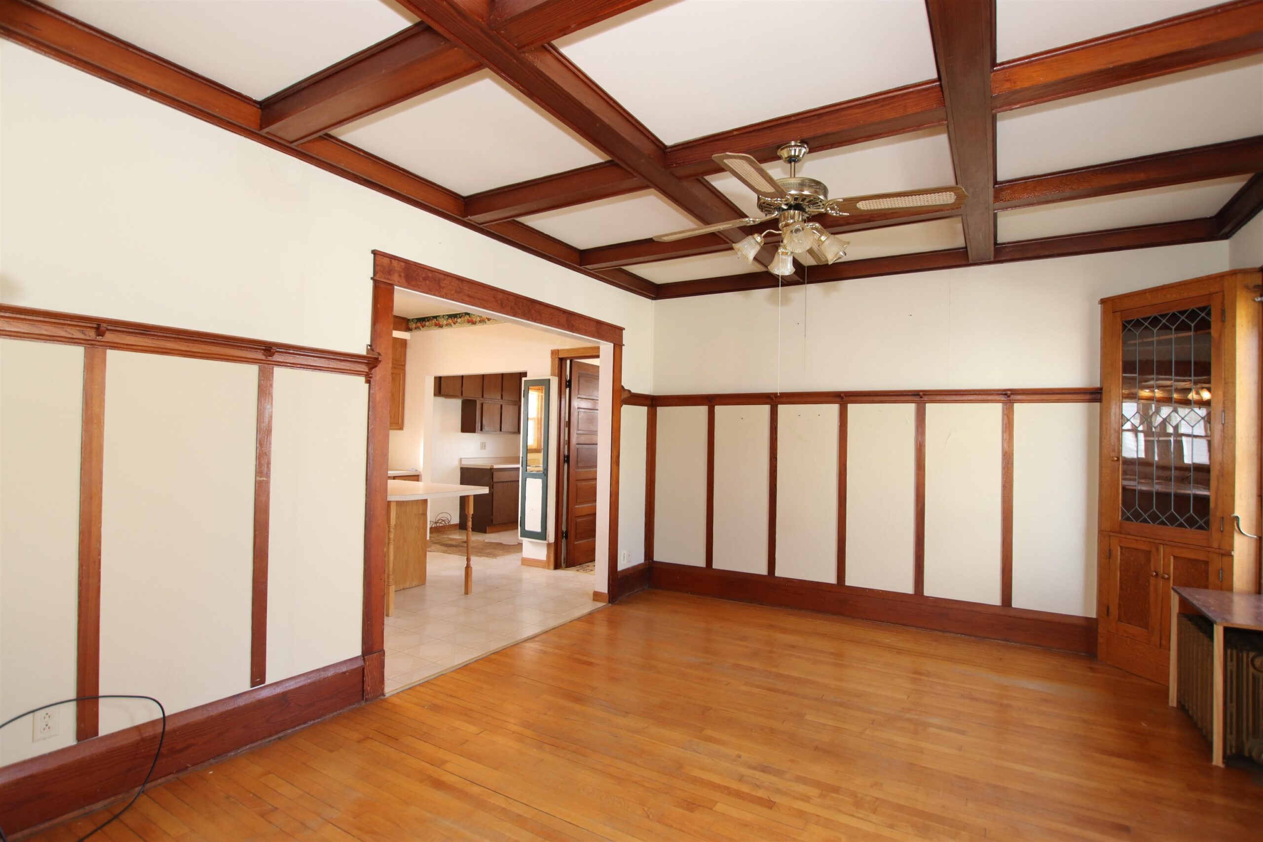 Spacious 2 Story charmer within walking distance to downtown. Bring you ideas & work with the existing character or transition this to your style of decorating. Additional features include built in corner cabinets, coffered wood ceiling, double staircase, hardwood floors, and oversized wood trim. Kitchen features island for food prep & plenty of storage space. Total of 3 bedrooms and 2 full baths plus walk up attic that could also be finished! Deck off back along with huge detached 23x32 garage. Driveway on the street side plus entrance to the garage from the back. New hot water heater and sump pump! Immediate Occupancy! If exact square footage is a concern, measurements should be verified by purchaser.