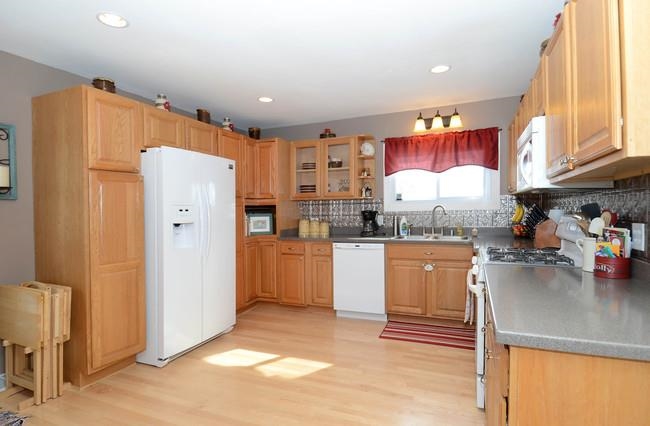 Looking for a quiet neighborhood in a small village? This 3 bedroom home sets on a quiet dead end street next to farm fields. There is a large fenced back yard for pets, kids, or privacy. The yard has large pine trees for added privacy. The home is move in ready including the kitchen appliances. All the carpeting has been removed and replaced with wood flooring. Basement has a large laundry room and an additional bath that is partly finished. A new roof was installed in 2012.
