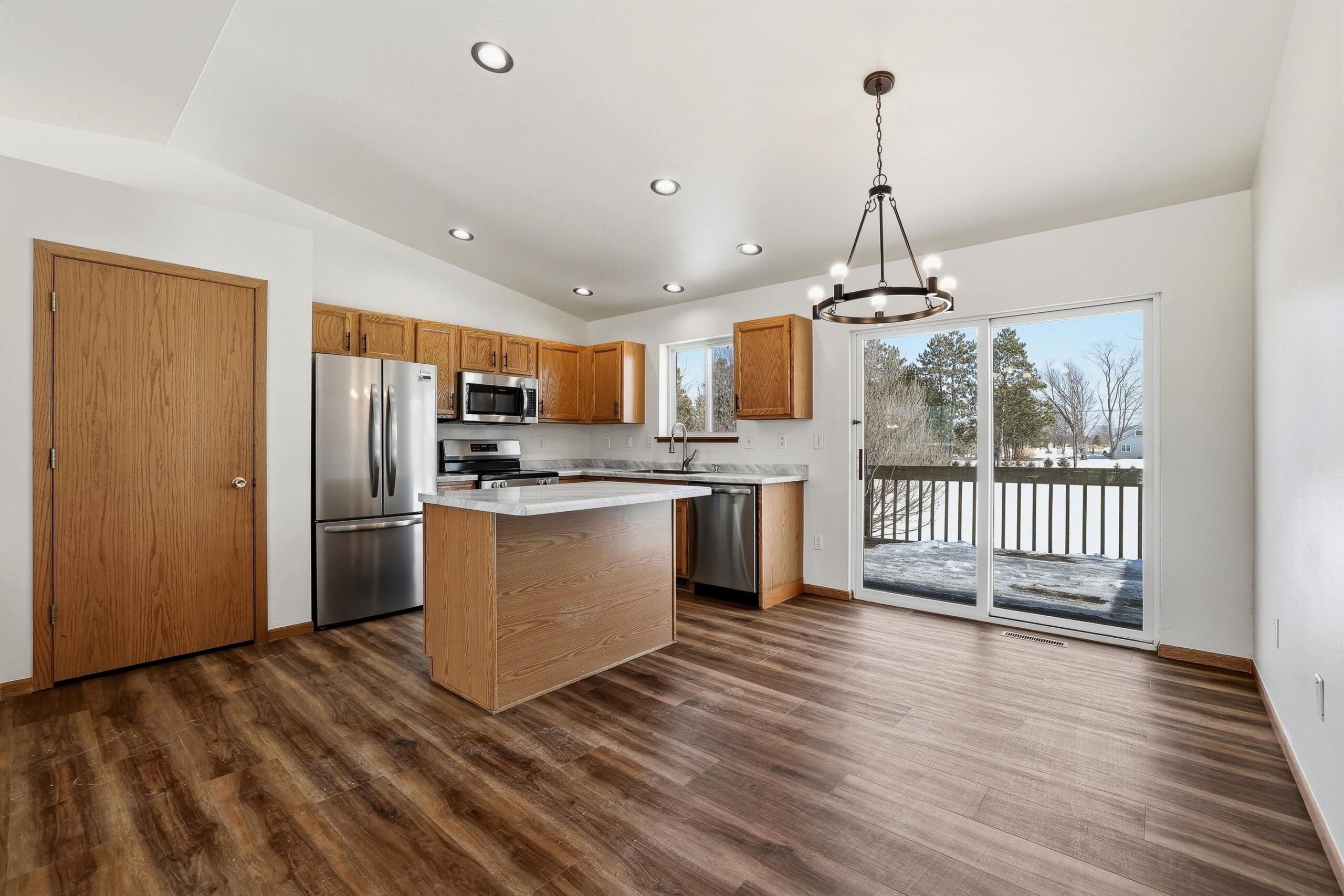 Welcome to Kronenwetter! This spacious bi-level home offers the perfect blend of functional design and cozy Wisconsin charm. Featuring 4 beds and 2 baths, this home is designed to maximize both privacy and togetherness. Step inside to an open-concept upper level where vaulted ceilings and oversized windows flood the living area with natural light. The seamless flow between the living room, dining area, and kitchen makes this home feel spacious, great for entertaining or relaxing. Step outside to enjoy the deck and expansive backyard, a great space for a garden, swing set, or summer evening entertaining. This home is move-in ready and just waiting for new owners! Call today, this one won't last long! *Please verify measurements if square footage is of utmost importance.