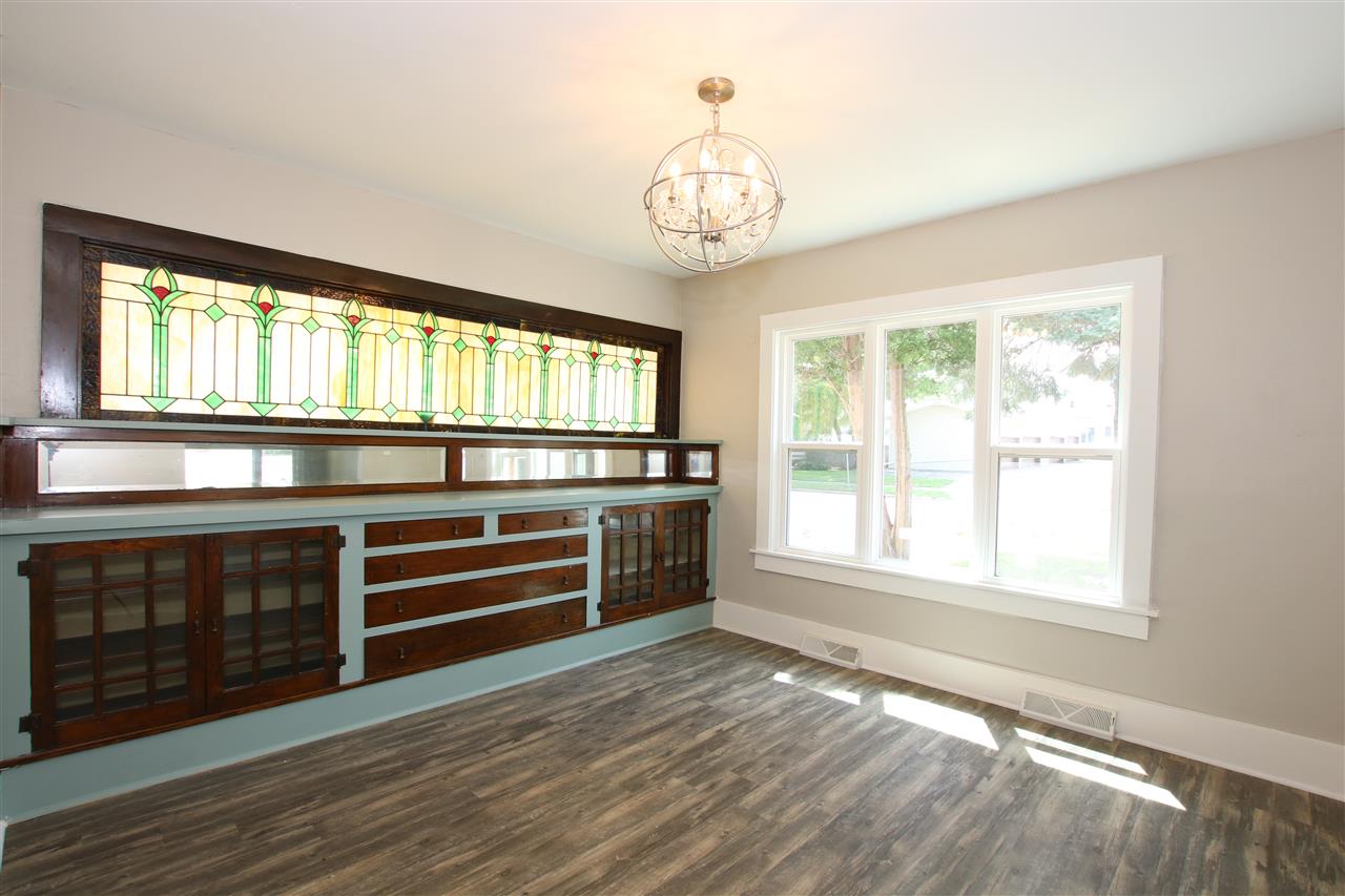 Prepared to be amazed with this fully remodeled 4 bed 1.5 bath home with modern finishes and old world charm! Great central location close to churches, schools, and parks. This home features many improvements including the new roof, windows, flooring, kitchen, bathroom, paint, re sided garage, deck, refrigerator, stove, and much more! Beautiful stain glass windows in the dining room, decorative fireplace, and exposed brink are just a few things to fall in love with! Partially finished rec room and office in the lower level. Move in and enjoy today!