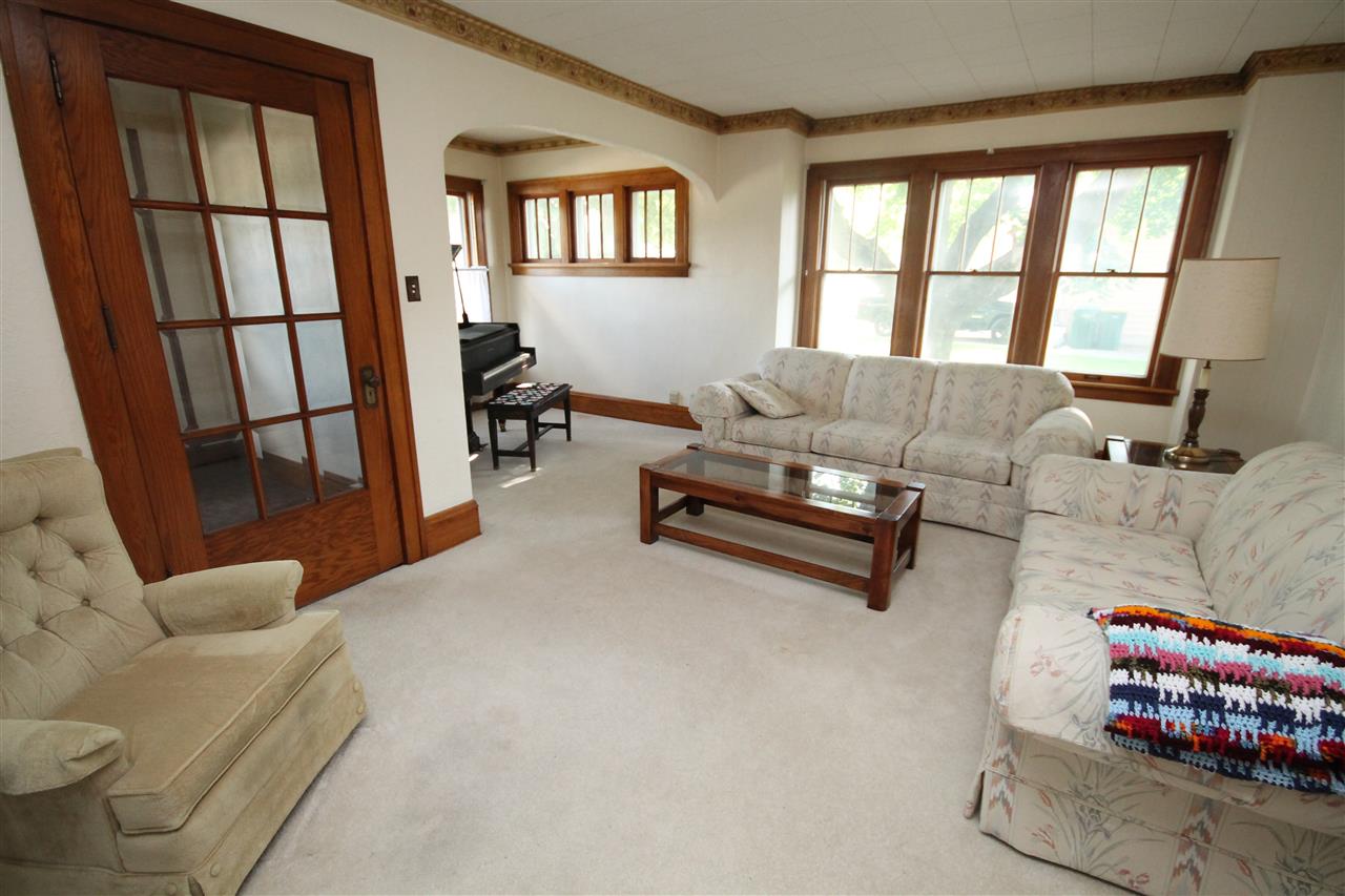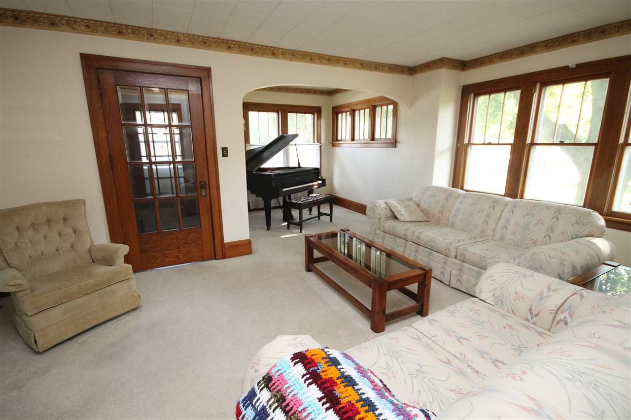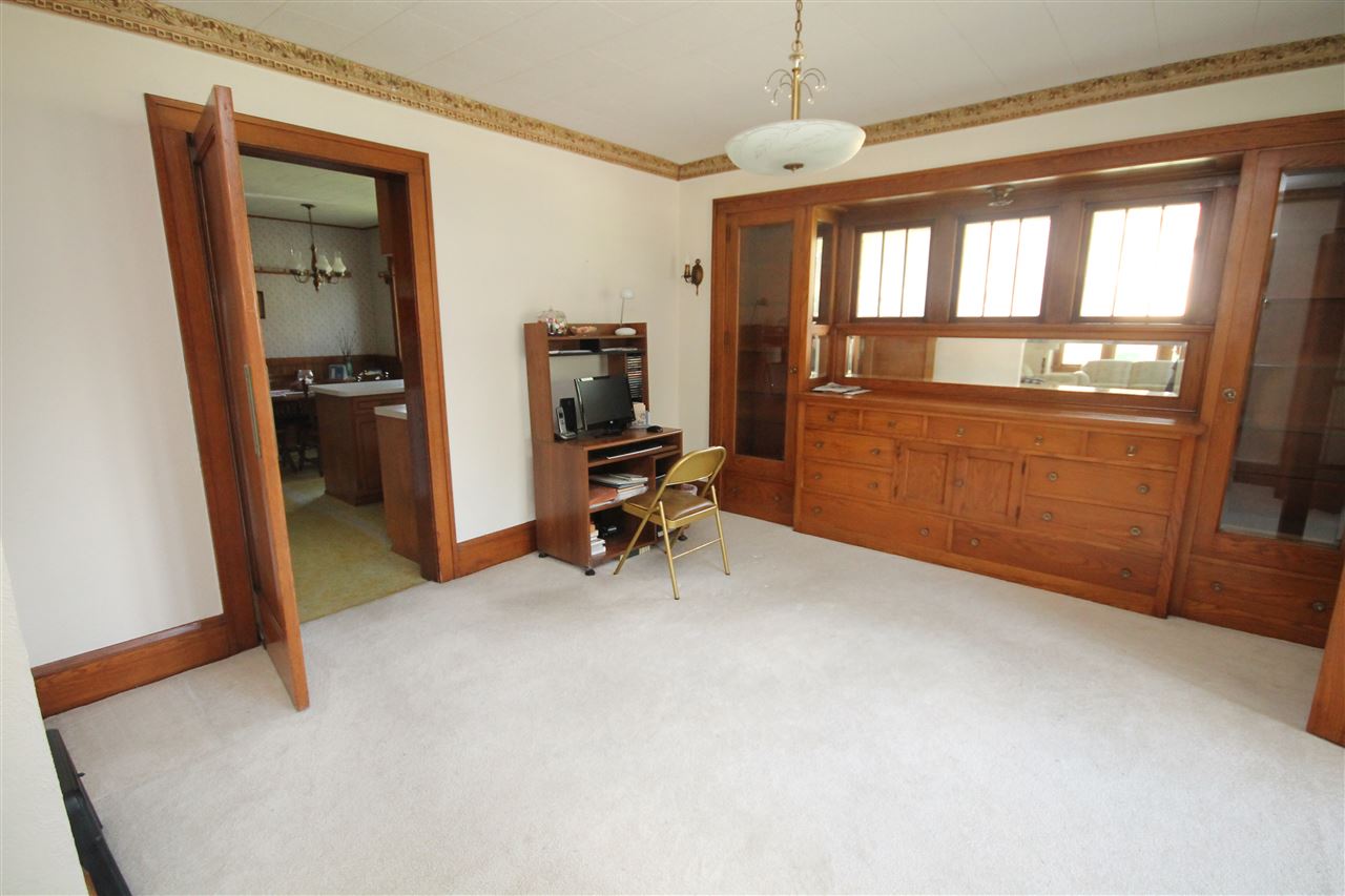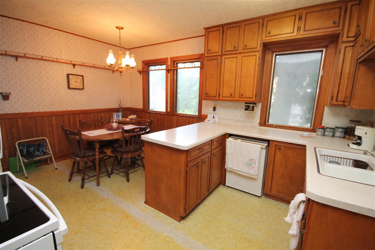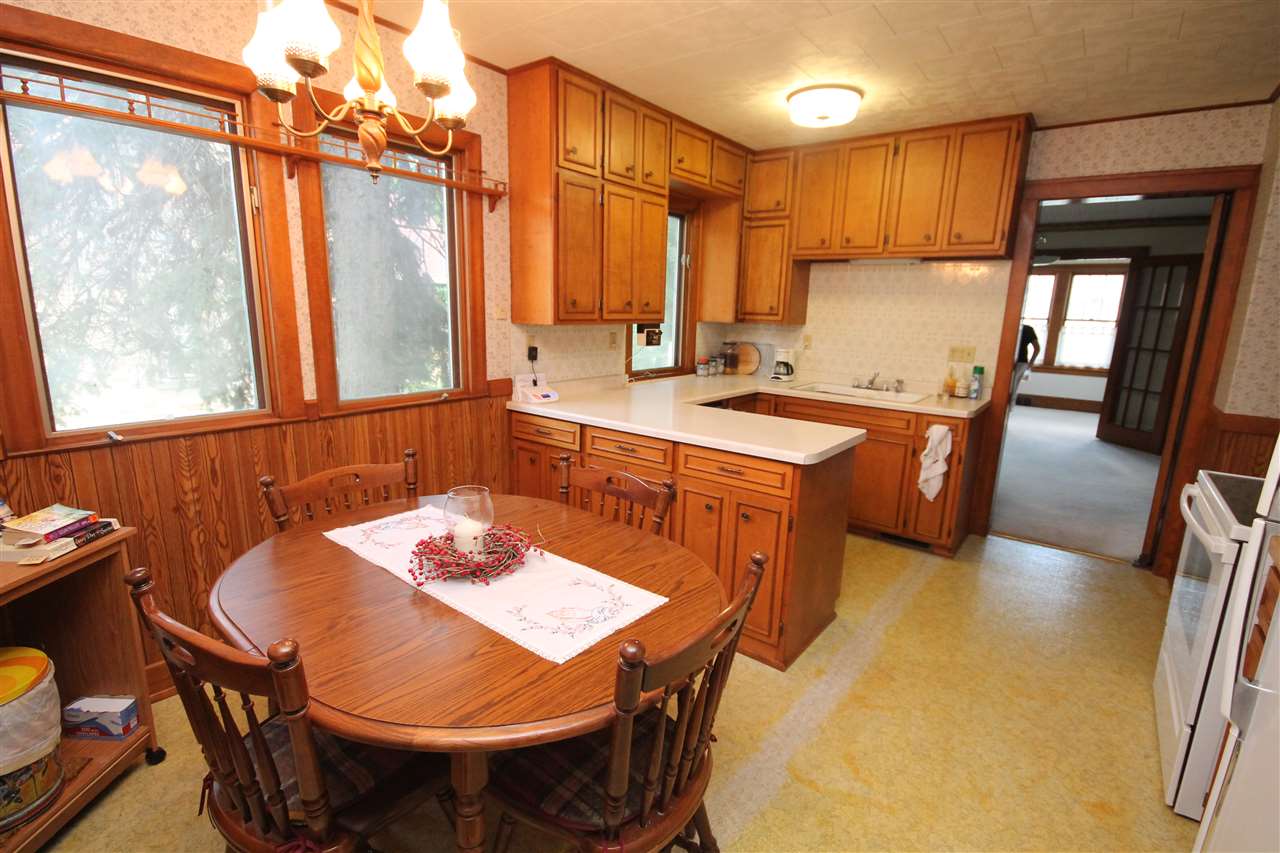 Make your own memories in this charming 1920's home. Character abounds with gorgeous natural woodwork, french doors to Sunroom and tiled front foyer. Huge dining area with stunning built in hutch and china cabinet. Convenient main floor bedroom and full bath. 3 additional bedrooms upstairs with 1/2 bath. Huge closets, great storage & built ins throughout. A rare find in this steel pole building offers a 2 car garage and shop area for the hobbyist. Quiet village living is calling you! No showings until Aug 1st, 2017