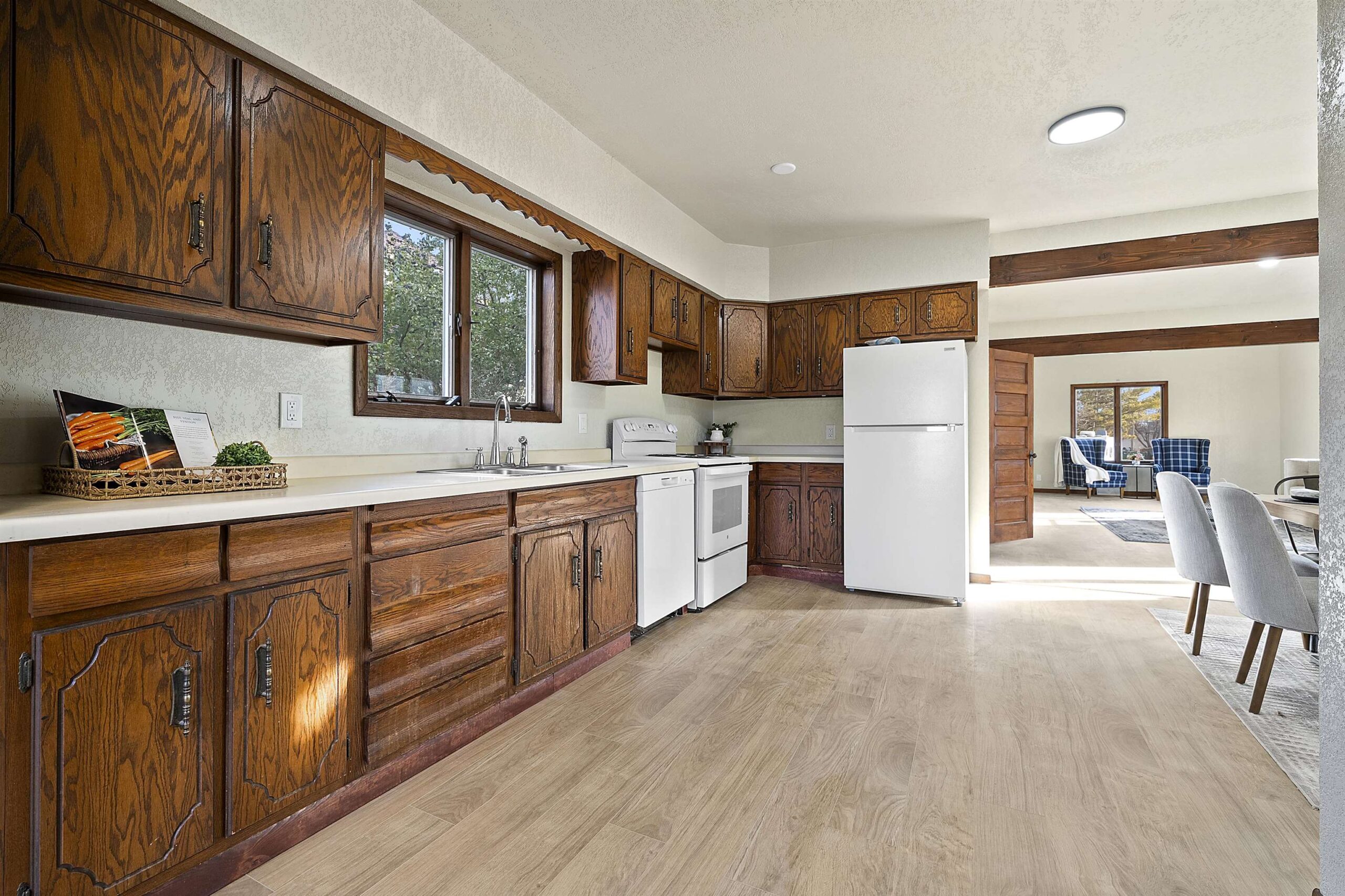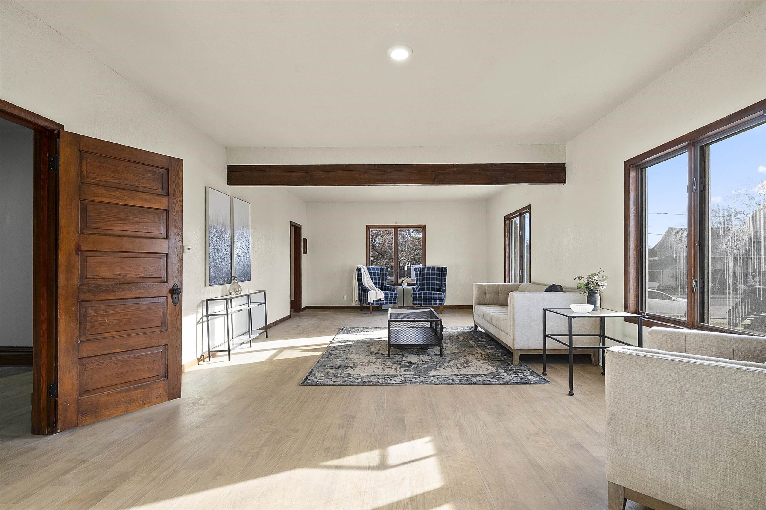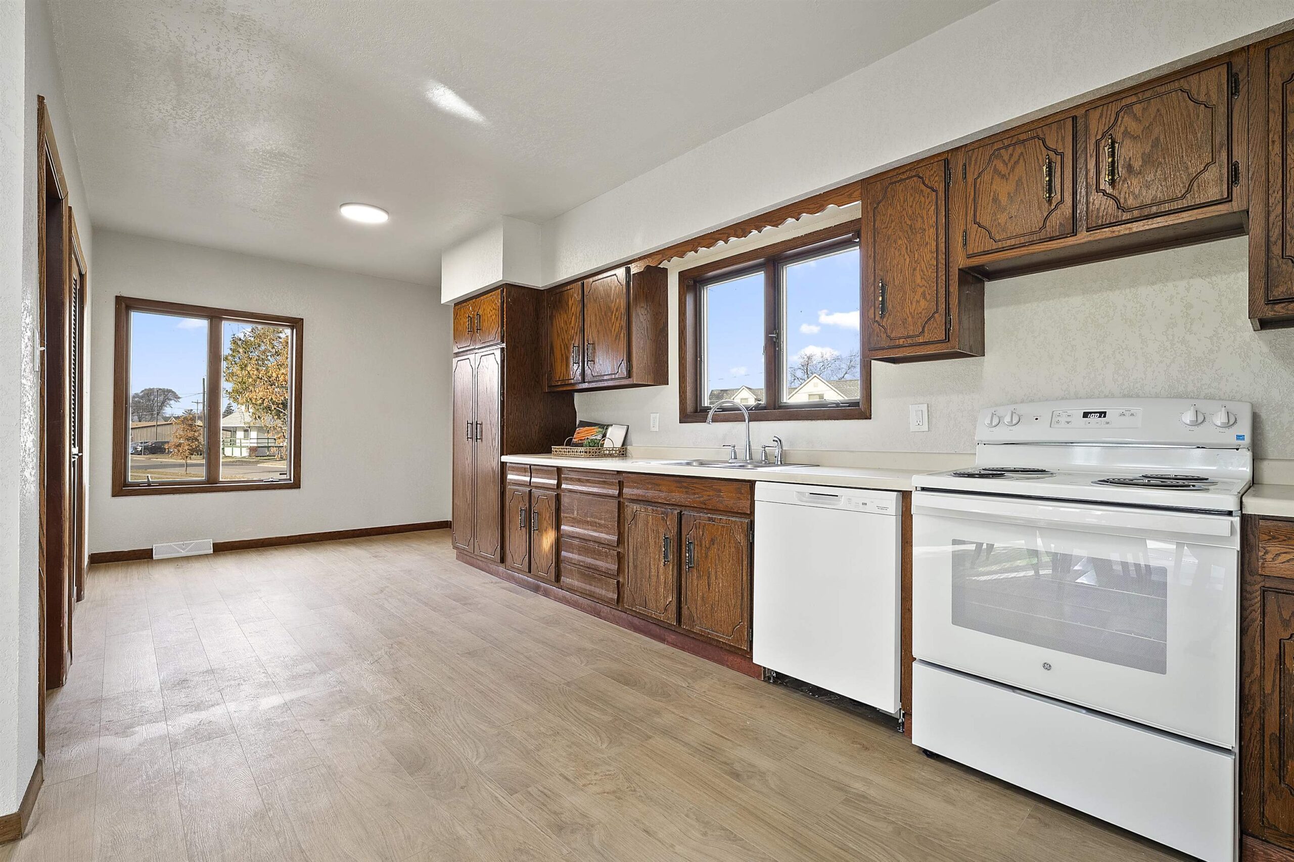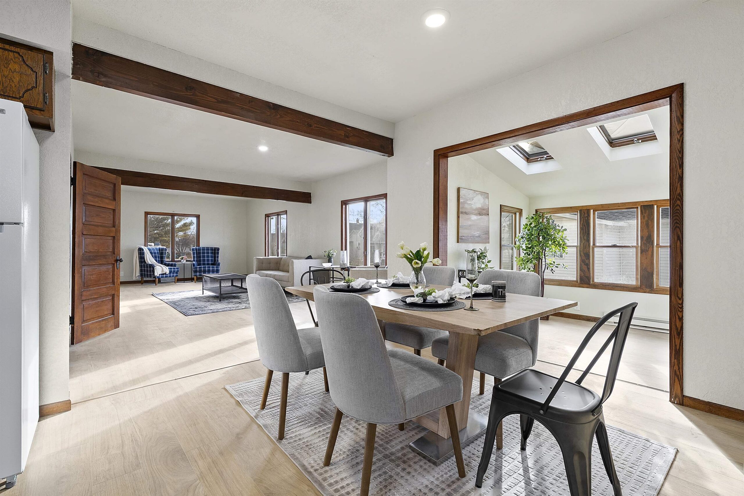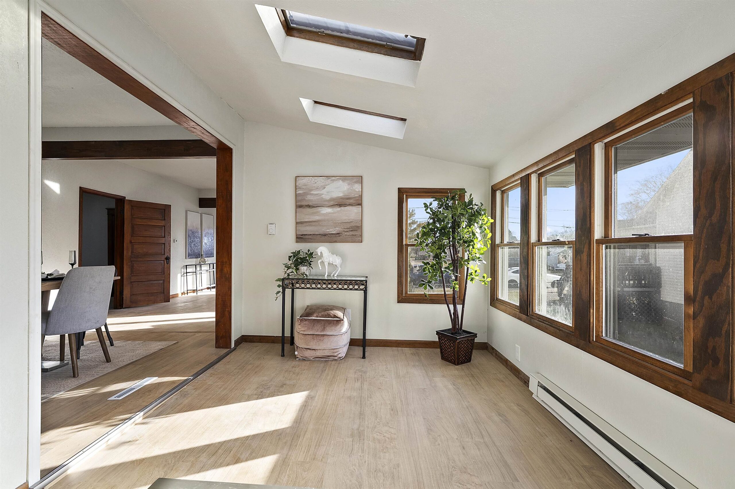 Welcome to this updated and inviting home on Ogden St. Step inside to an open and sun-drenched main living space highlighted by fresh paint and brand-new flooring throughout. A convenient main floor bedroom provides flexibility, while the remaining bedrooms are located upstairs for added privacy. The bright sunroom with skylights offers a relaxing year-round space filled with natural light. The layout provides a comfortable flow from living to dining to kitchen areas, all designed to feel open and refreshed. Outside, the oversized garage delivers excellent storage and room for hobbies, complemented by a manageable yard suited to a variety of uses. Please allow 24 hours binding acceptance. LL family rm has concrete floors