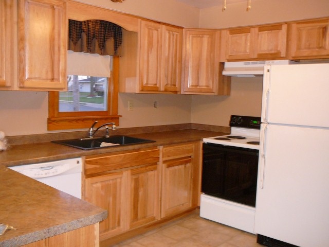 Extremely well cared for brick 3 BR home with new kitchen, featuring hickory cabinets, laminate flooring & new counters. Living room & hall has newer carpet but original wood flooring underneath. Hardwood floors in bedrooms. Two bedrooms have walk in closets. Laundry is in the very clean, useable basement. Basement had interior water proofing done. A shower in basement. Detached one car garage with workbench & additional storage. Level backyard. Exterior doors & roof 6 yrs old.