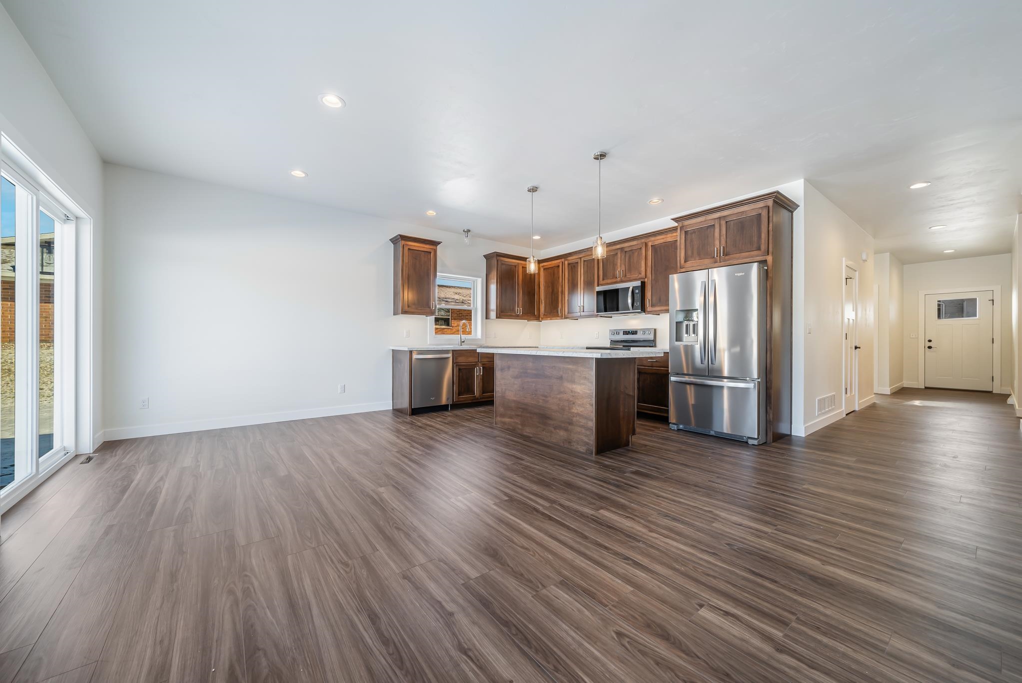 Check out this new side by side 1 story condo. This home features 3 nice size bedrooms including primary suite with large walk in closet and primary bath, 2 full baths, all Kohler fixtures, bathroom toe kick lighting, 9ft ceilings, Island kitchen with custom cabinets & stainless appliances included, solid doors, fully insulated 2 car garage with 8ft door, and seeded lawn. Estimated completion of this amazing condo will be 12/15. Be the first one to call this home. Make your appointment today!