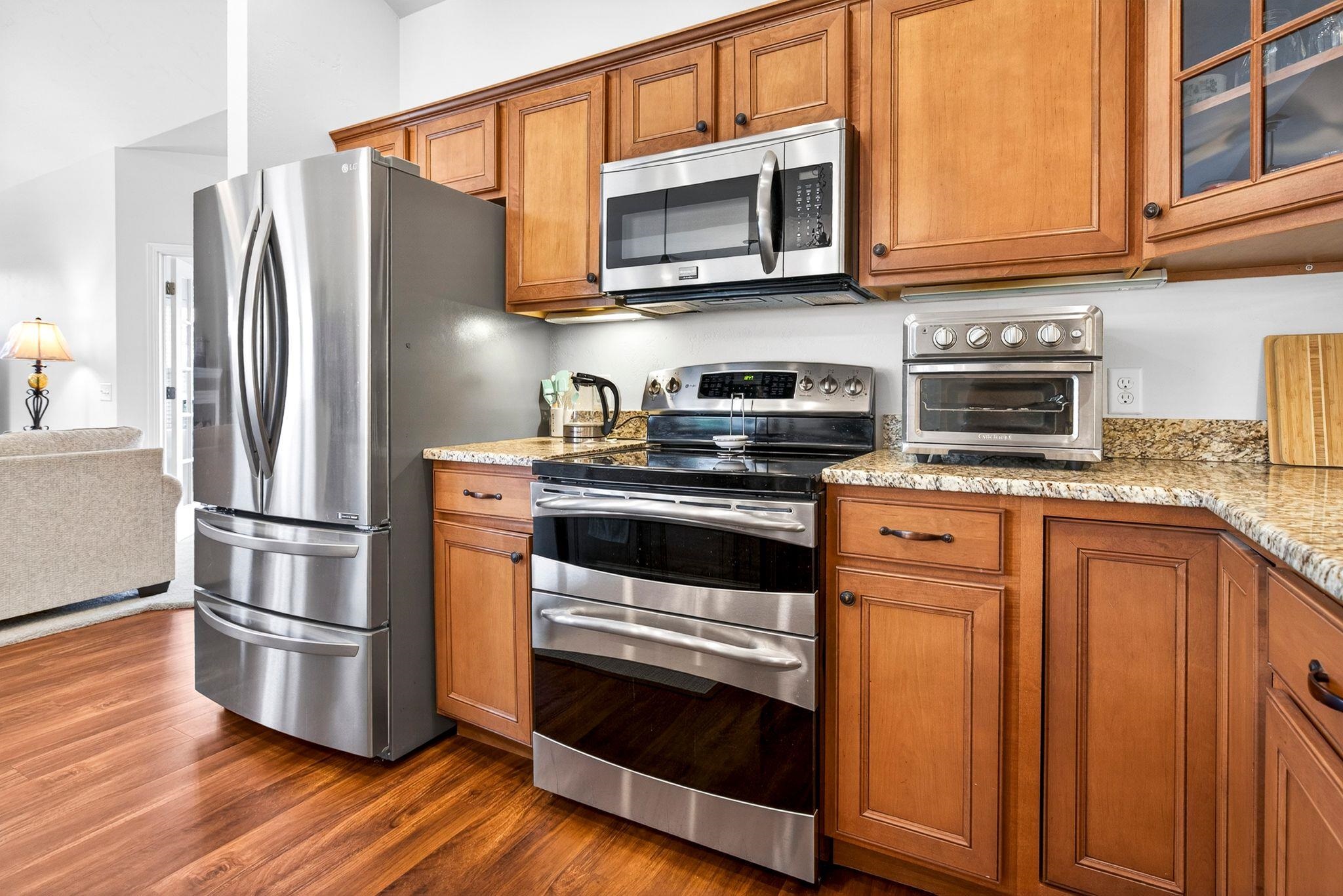 Refrigerator, Electric Stove, Microwave/Rangehood, Dishwasher, Washer, Dryer