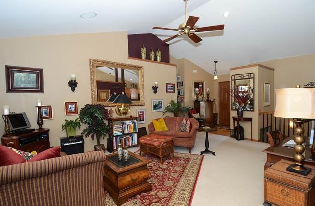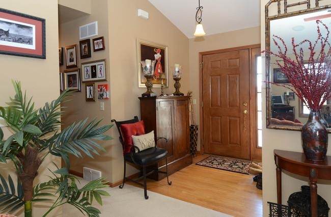 Warm and inviting custom built parade home full of upgrades. Real hardwood floors, all bathrooms have ceramic tile & marble sinks. Tranquil master suite with vaulted ceilings. Full bath & custom walk in closet. Exposed lower level for fun and entertainment. Gas fireplace, full theater sound by Paragon, bar, extra bedroom and full bath. Fenced in backyard backs up to mature tree line for added privacy. Beautiful landscaping, wood deck with gazebo. Great neighborhood to call your home. Home warranty included.