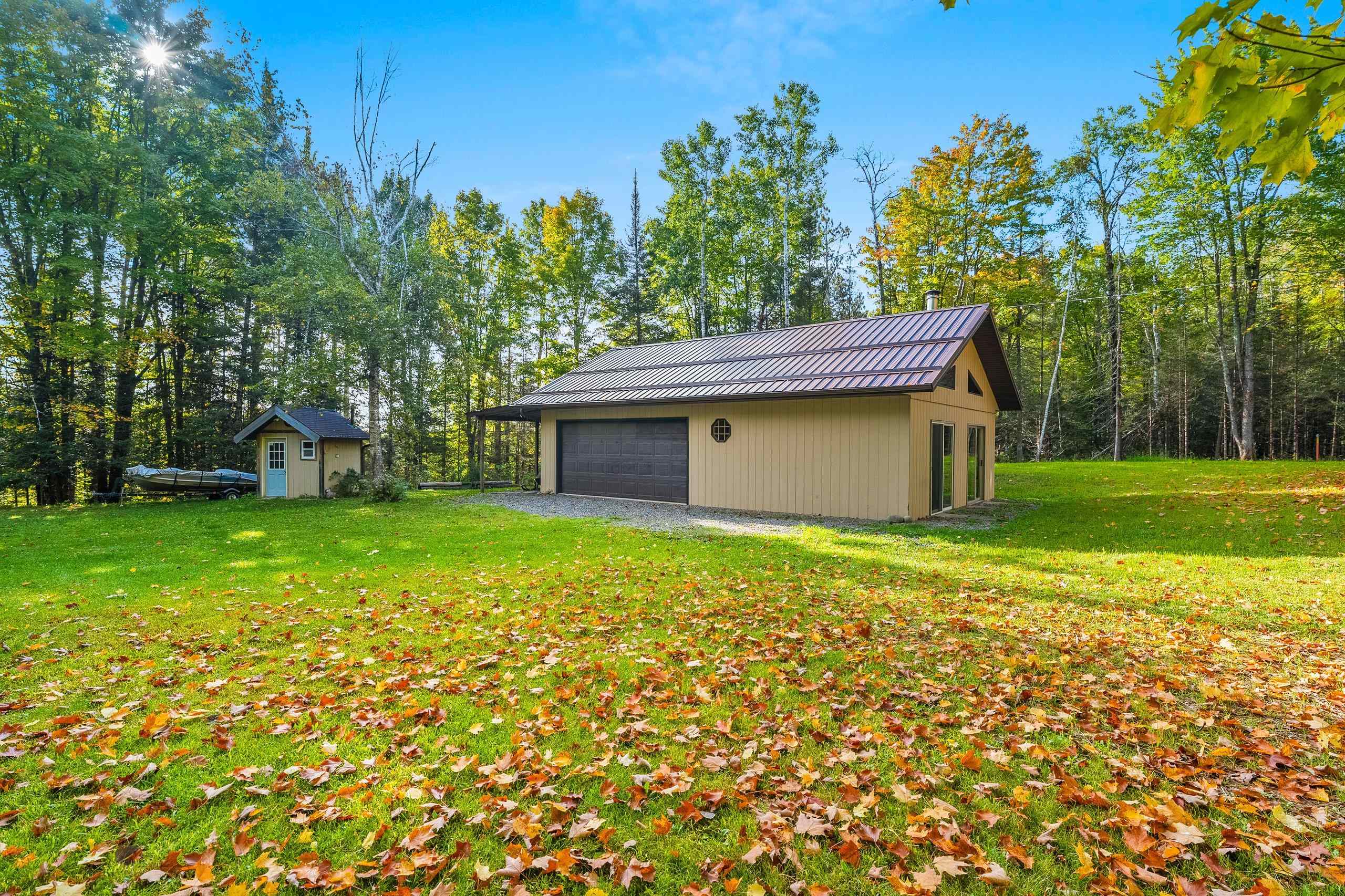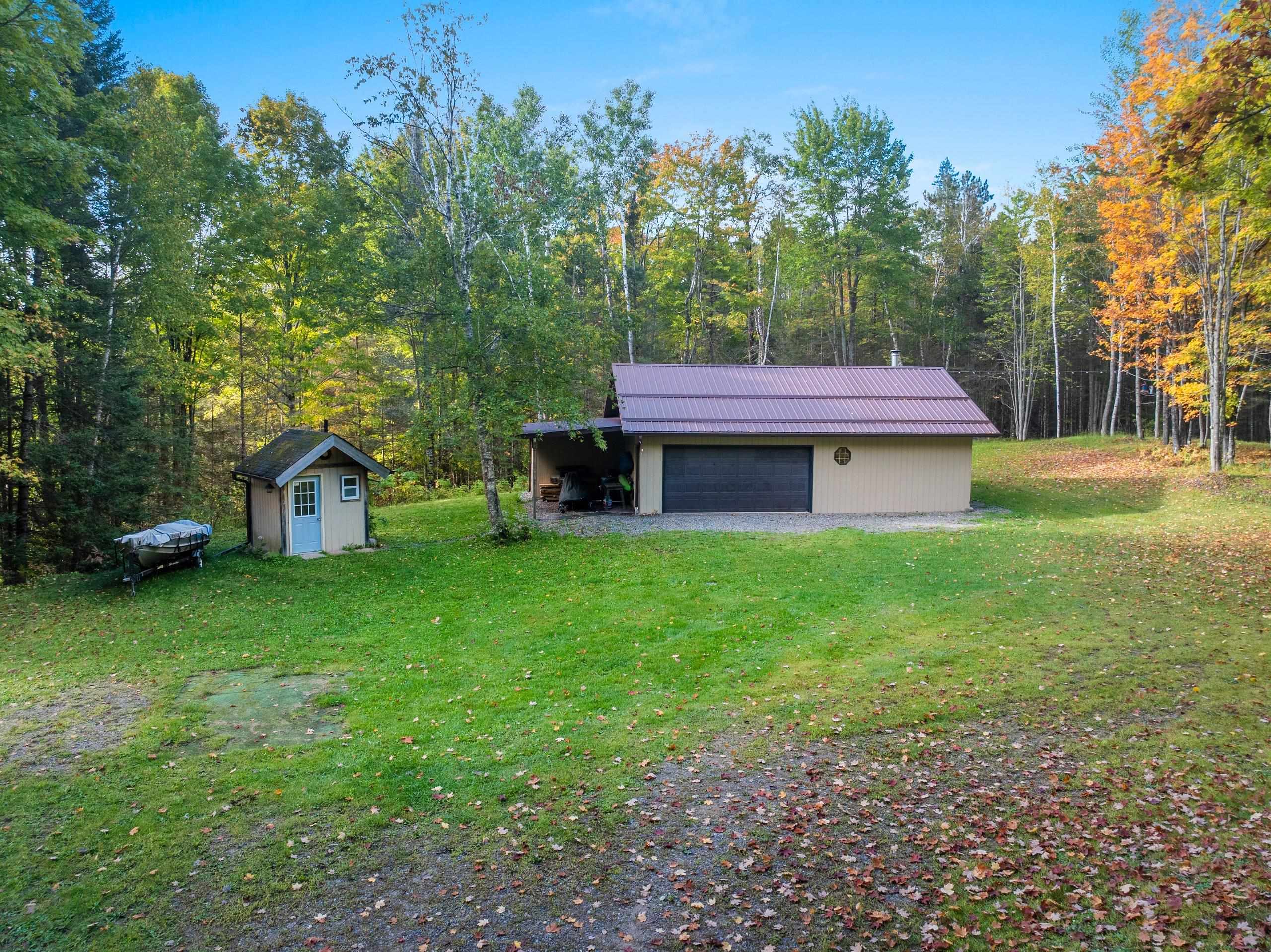 Location, Location, Location – your Northwoods escape awaits! Nestled on 9.46 acres—zoned 1 acre residential with 8.463 acres of productive forest—this retreat borders the Nicolet National Forest and offers a heated 2-stall garage with 461 sq. ft. of living quarters with a wood burning stove, a lean-to, extra storage shed, camping hookup, fire pit area, and outhouse with sanitary permit—plus plenty of room for expansion. Outdoor enthusiasts will love direct access to snowmobile trails and being just minutes from the Popple River, Long Lake, and several ski lodges. Whether your passion is hunting, trail riding, skiing, snowmobiling, kayaking, hiking, or simply relaxing by the campfire, this property provides endless possibilities for recreation or future development. Call for details!