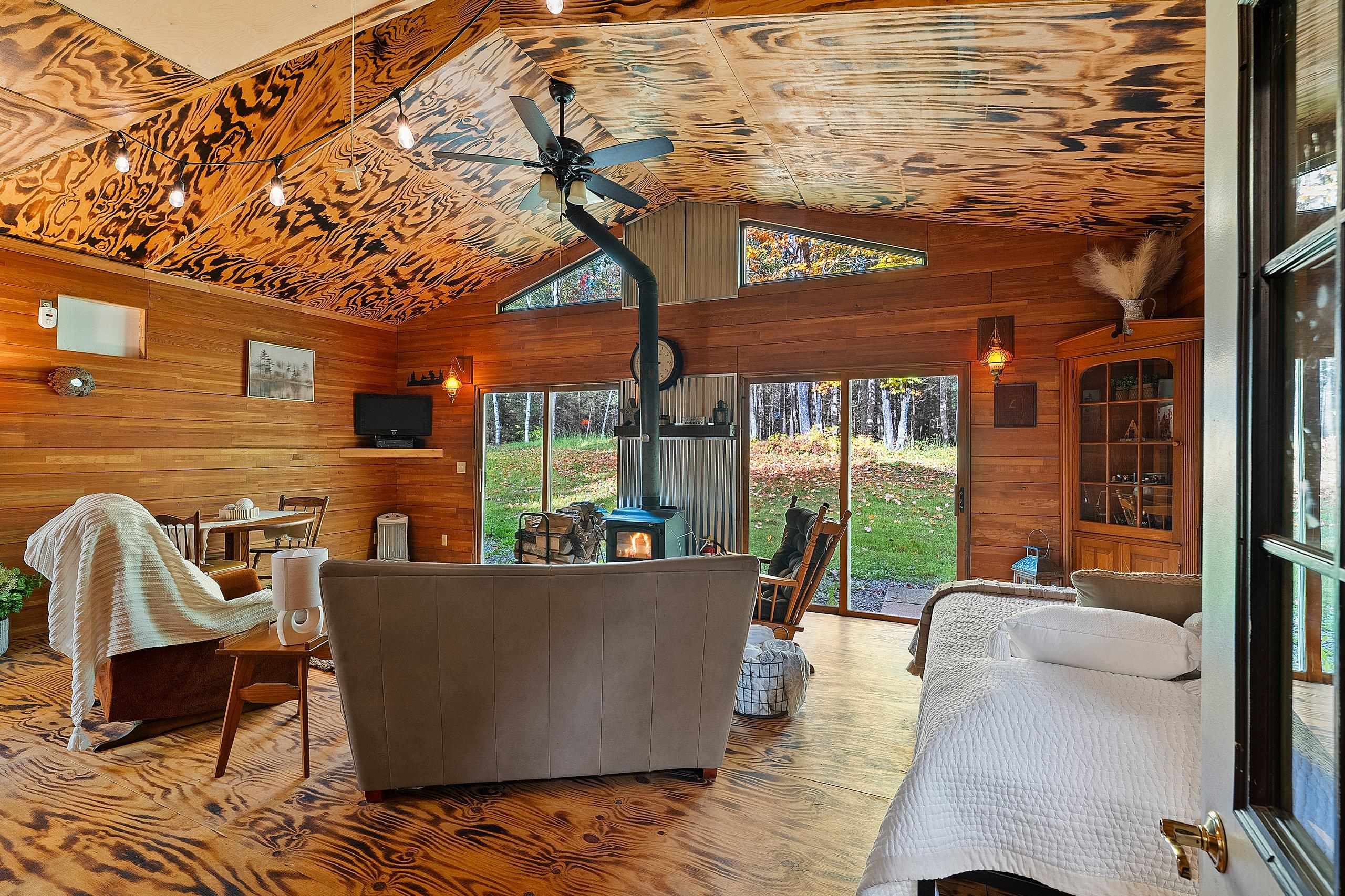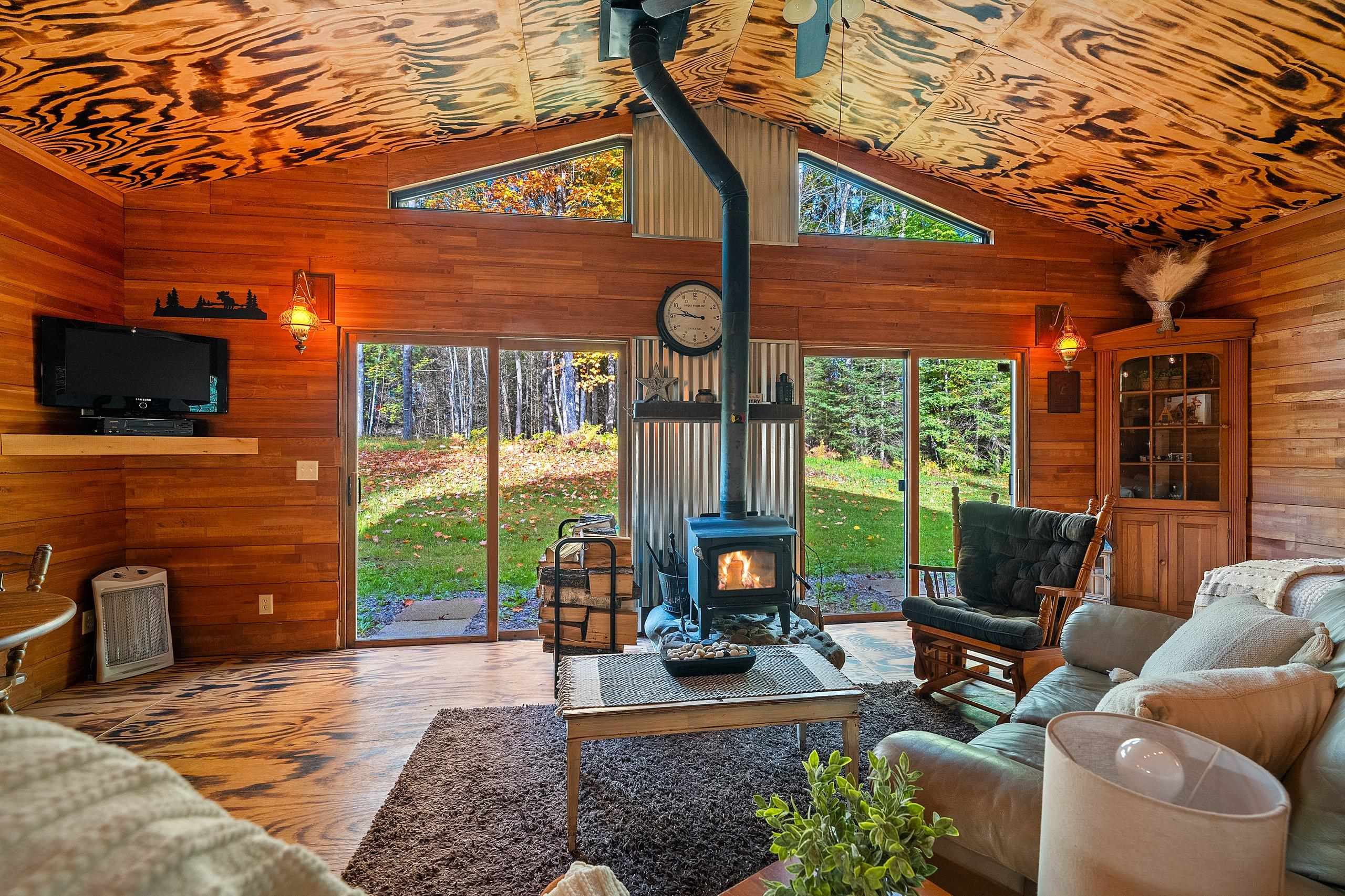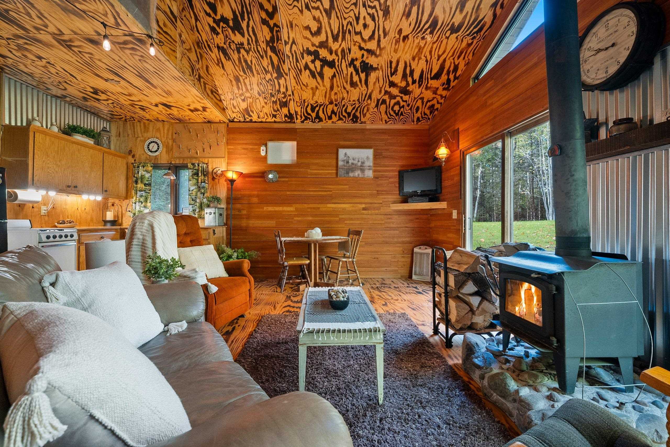 electric fireplace, wood stove, Refrigerator, Stove, Microwave, Most Furnishings, wood shed, outhouse, firepit