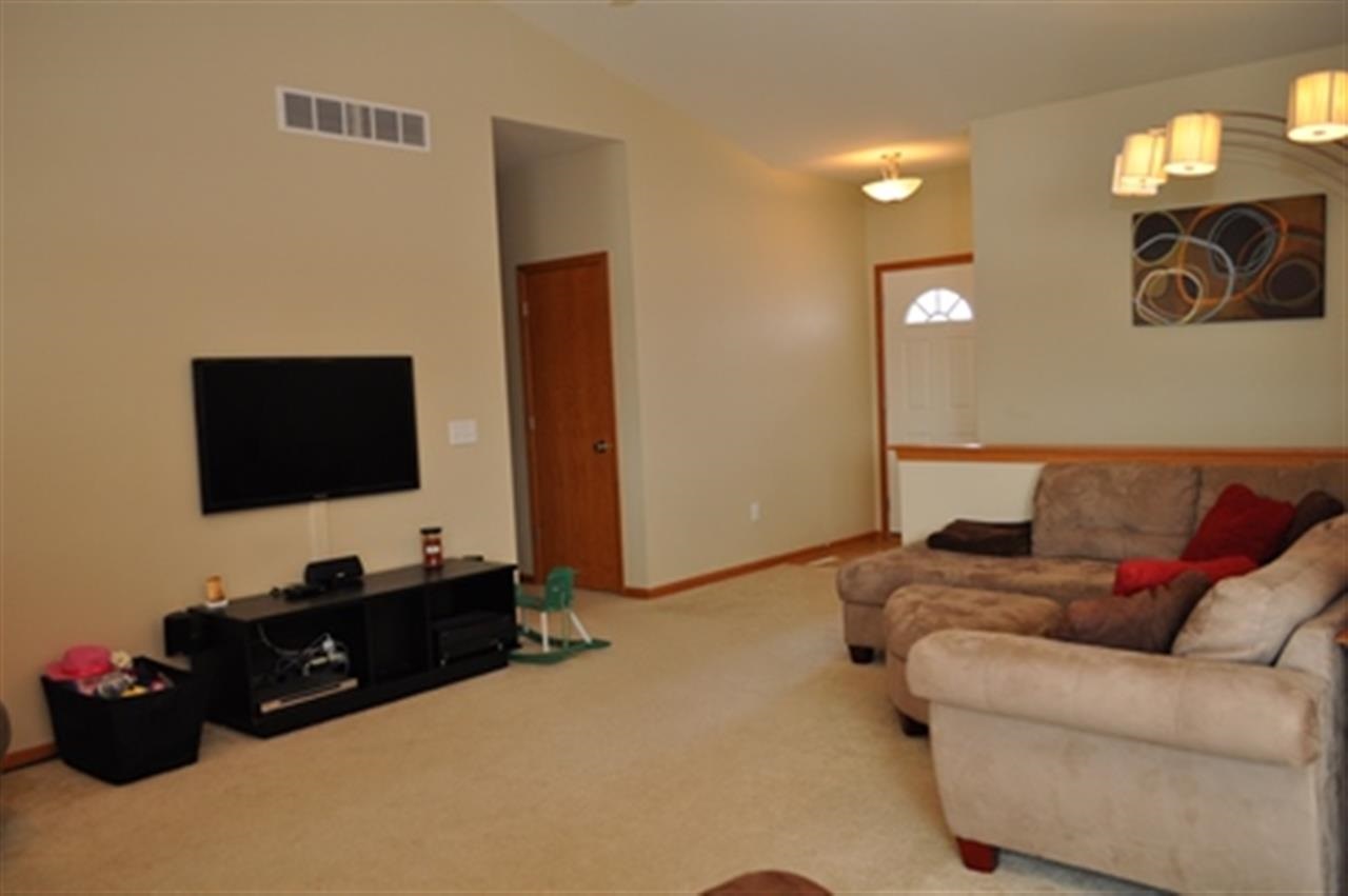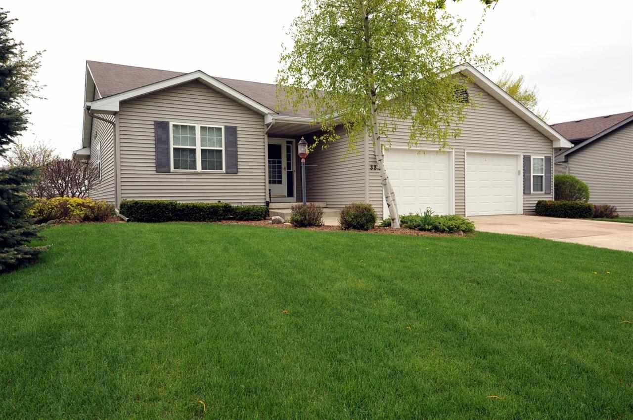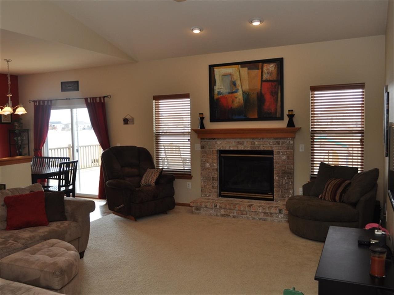 Immaculate! 3 Bedrooms on main level with cathedral ceilings and upgraded fireplace in living room. Views of the pond from your patio doors. Over 2200 sq. ft. with finished rec room in lower level with custom built in desk, media center and dry bar. Whirlpool Gold kitchen apl and wood blinds throughout. L. L has multi-zone lighting and heat, stainless bar appliances, large storage closets, and April and May air. Garage has extra long stalls, insulated walls, and extra parking. Paddle Boat included