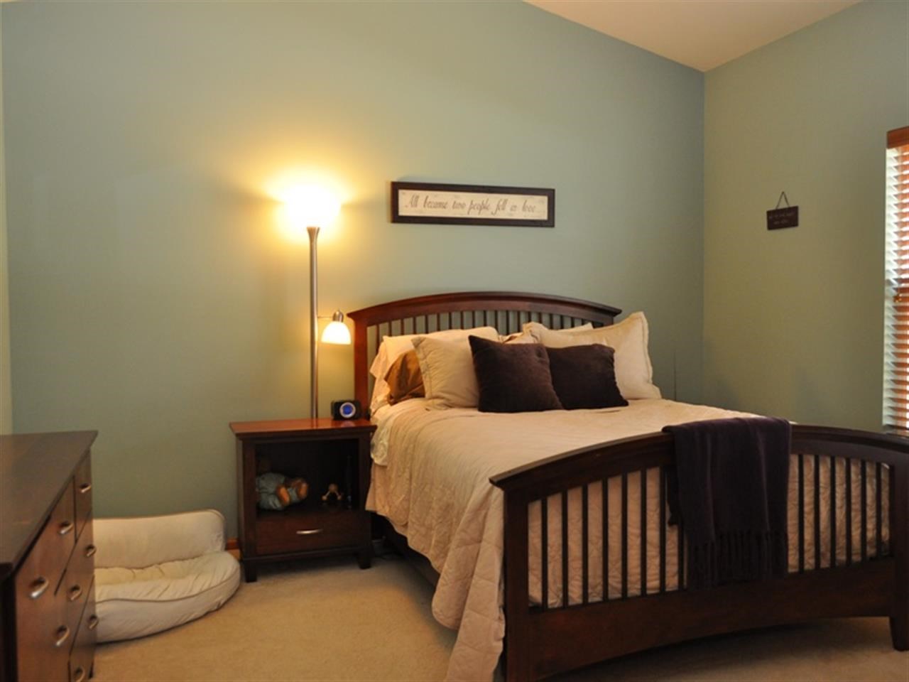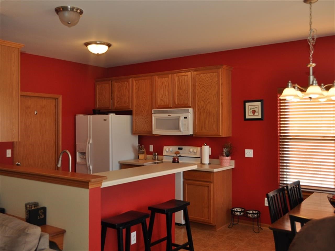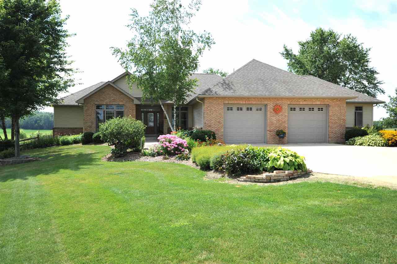 Immaculate! 3 Bedrooms on main level with cathedral ceilings and upgraded fireplace in living room. Views of the pond from your patio doors. Over 2200 sq. ft. with finished rec room in lower level with custom built in desk, media center and dry bar. Whirlpool Gold kitchen apl and wood blinds throughout. L. L has multi-zone lighting and heat, stainless bar appliances, large storage closets, and April and May air. Garage has extra long stalls, insulated walls, and extra parking. Paddle Boat included