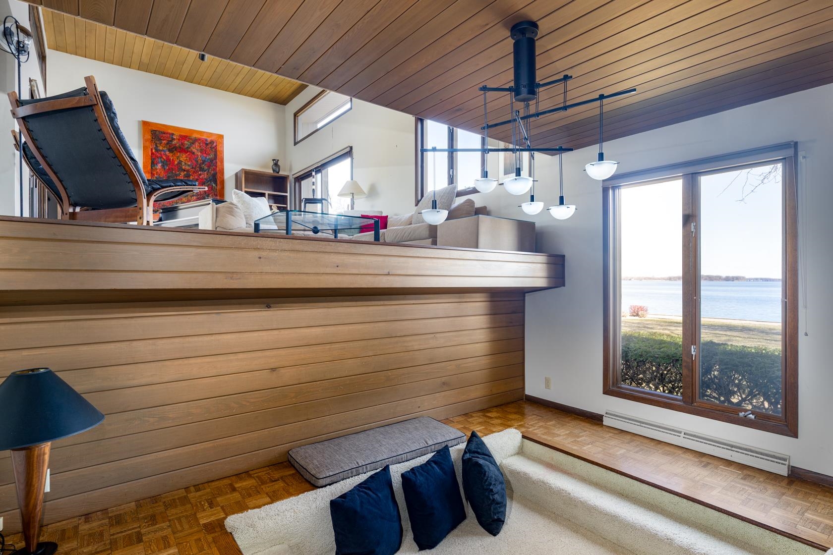 Lake Winnebago - Mid Century home w/ 100’ of pristine lake frontage! This one-owner, architectural gem features a minimalist design, filled w/ personality and style. Home has many original finishes and is ready for a period update or the ultimate style renovation on the water! Flexible layout w/ lake views from almost every room including, a spectacular two-story great room w/ two balconies, cozy conversation pit w/ fireplace, primary suite w/ balcony + private sitting area, main floor office (or bedroom 5) and a home gym. Wonderful yard w/ mature trees + landscape, entertaining deck w/ screen porch, a seawall shoreline w/ dock + boat ramp/rail system and an irrigation system. Desirable waterfront locale to enjoy year-round lakefront living w/ premier access to the entire lake system!