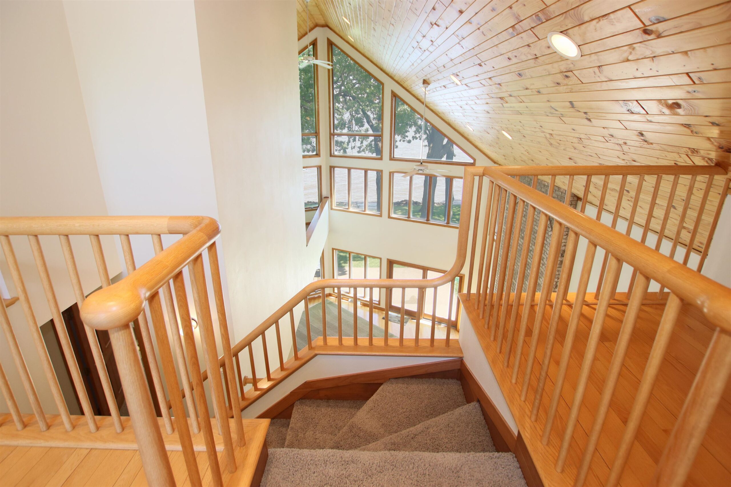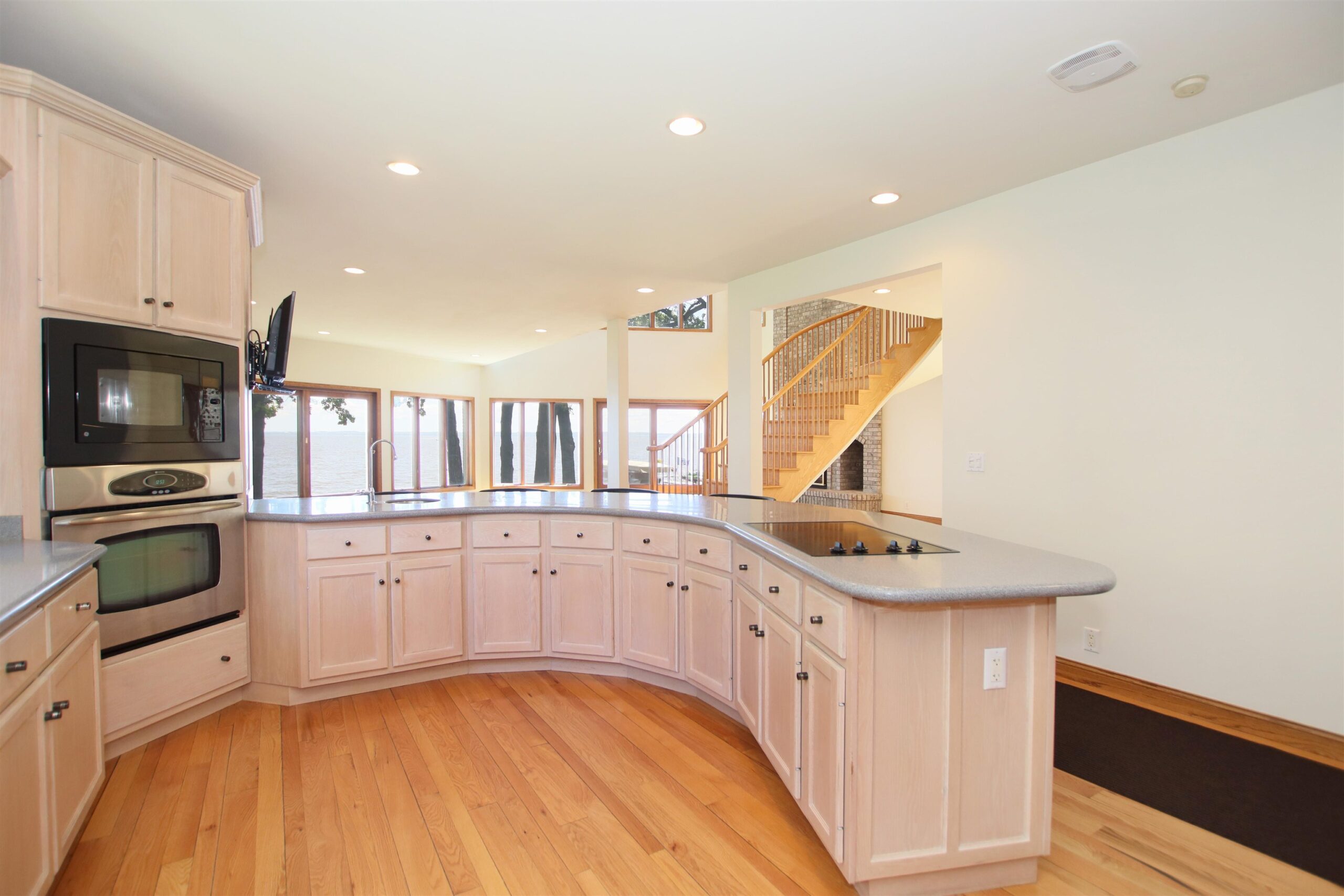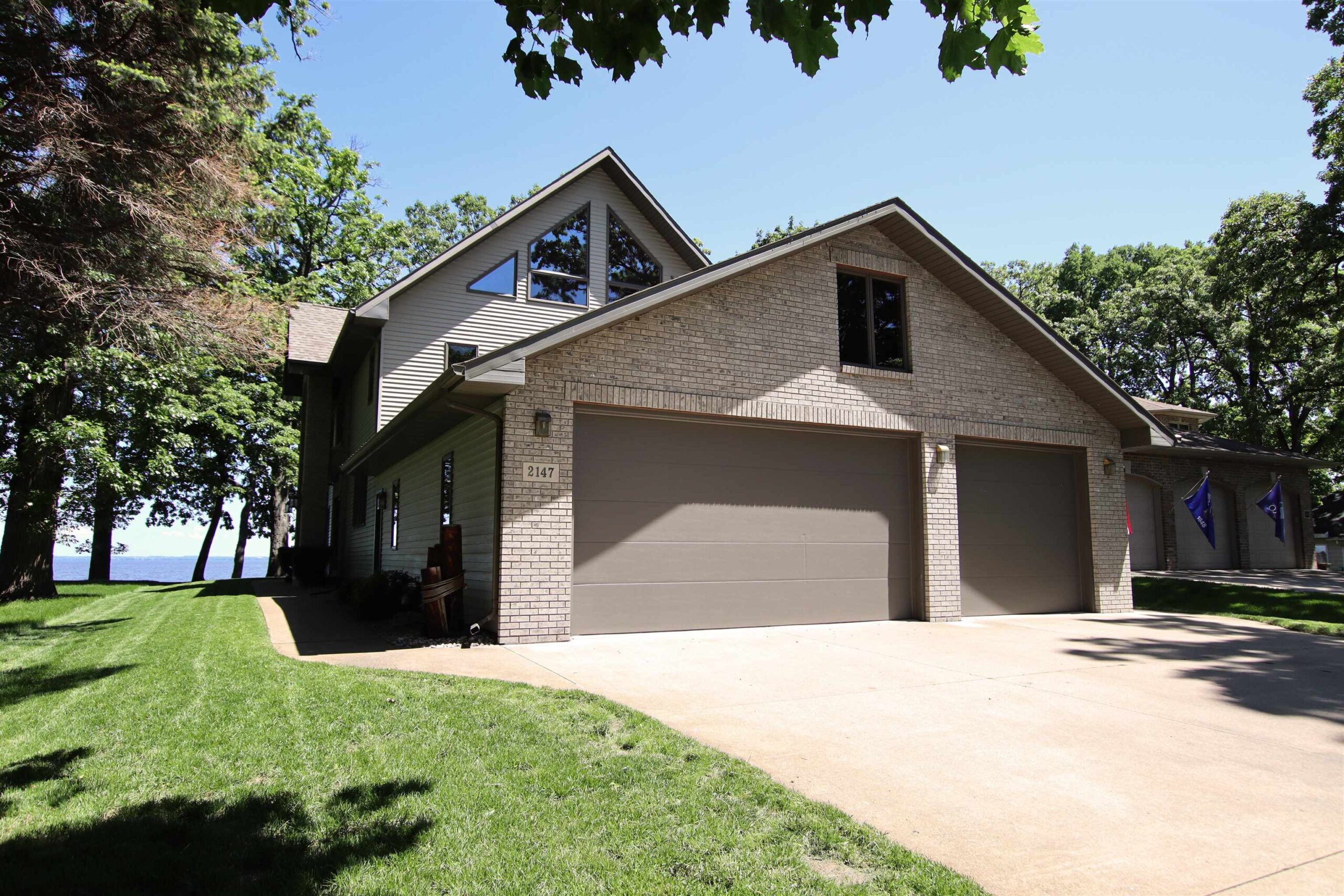 The dream waterfront home you've been waiting for! Walk in and instantly feel how well cared for and loved this home is. Breathtaking views everywhere you turn with floor to ceiling windows and fireplace, open concept layout featuring Oak kitchen cabinets, hardwood floors from original oak trees on the property, Arcway custom staircase, over 2700 sq ft with basement potential for more space, newer mechanics and roof! 3rd level offers an office/4th bedroom with views from every angle and a large walk in closet! Double patio doors lead to a patio to enjoy gorgeous views of Lake Winnebago and fishing off your included Karni pier! The updates and high end finishes are endless! Don't wait and enjoy summer nights on the lake!