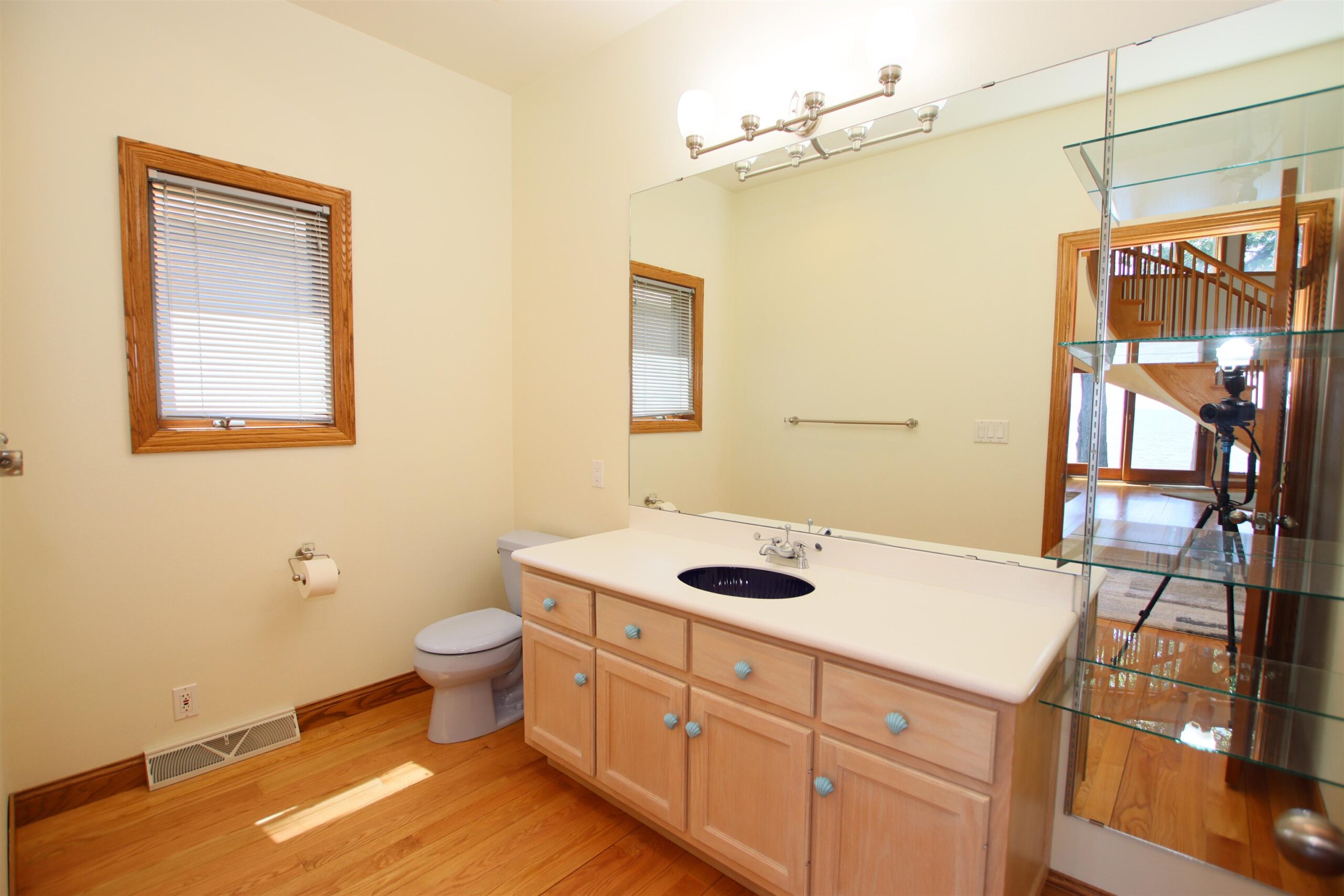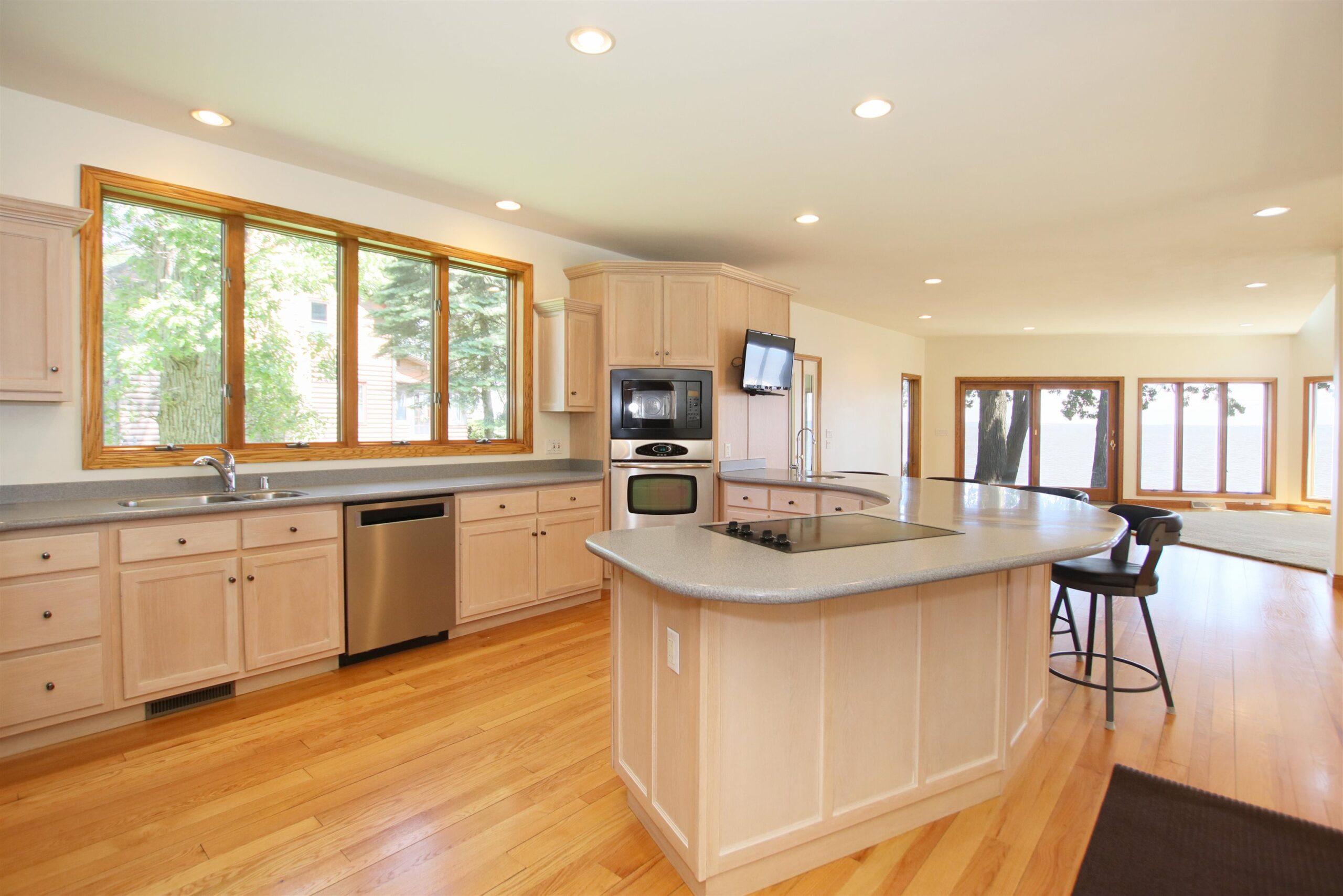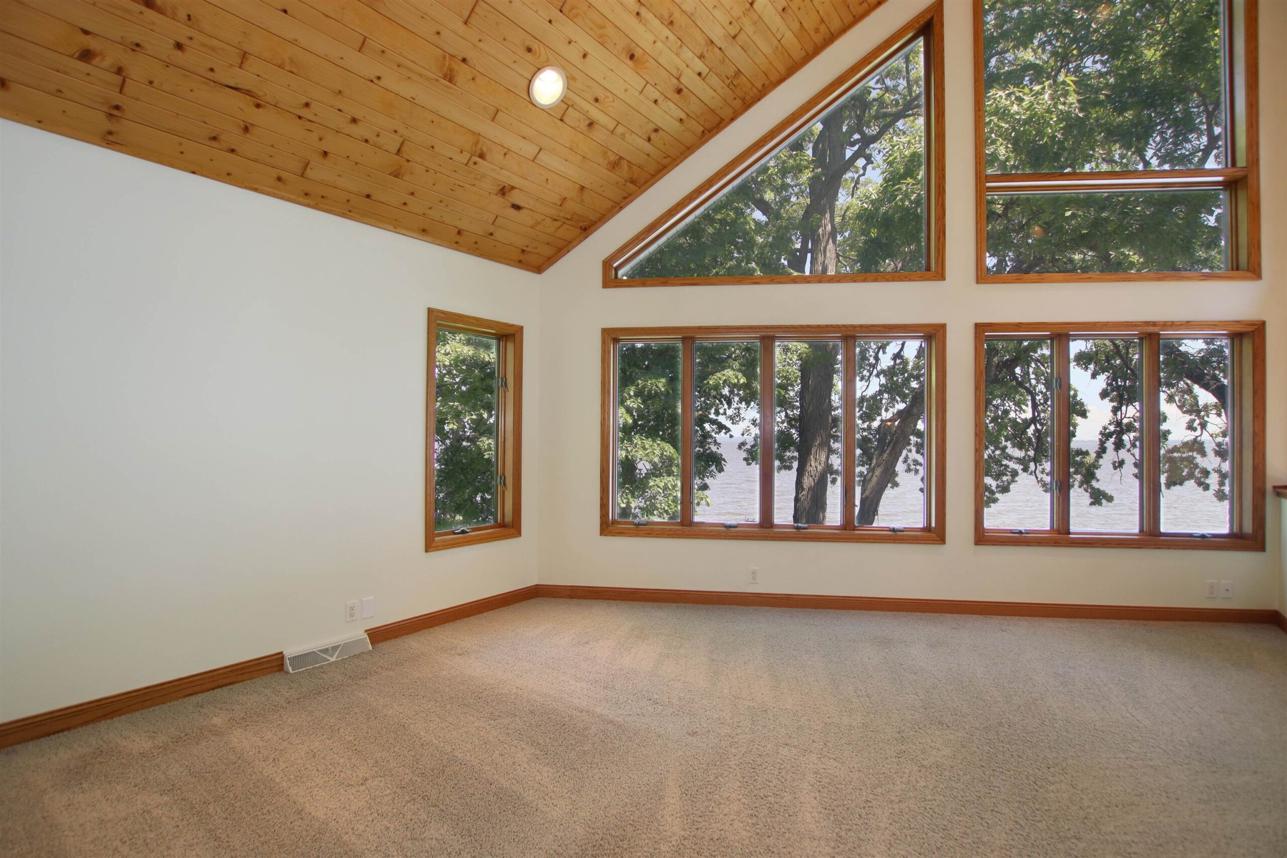 The dream waterfront home you've been waiting for! Walk in and instantly feel how well cared for and loved this home is. Breathtaking views everywhere you turn with floor to ceiling windows and fireplace, open concept layout featuring Oak kitchen cabinets, hardwood floors from original oak trees on the property, Arcway custom staircase, over 2700 sq ft with basement potential for more space, newer mechanics and roof! 3rd level offers an office/4th bedroom with views from every angle and a large walk in closet! Double patio doors lead to a patio to enjoy gorgeous views of Lake Winnebago and fishing off your included Karni pier! The updates and high end finishes are endless! Don't wait and enjoy summer nights on the lake!