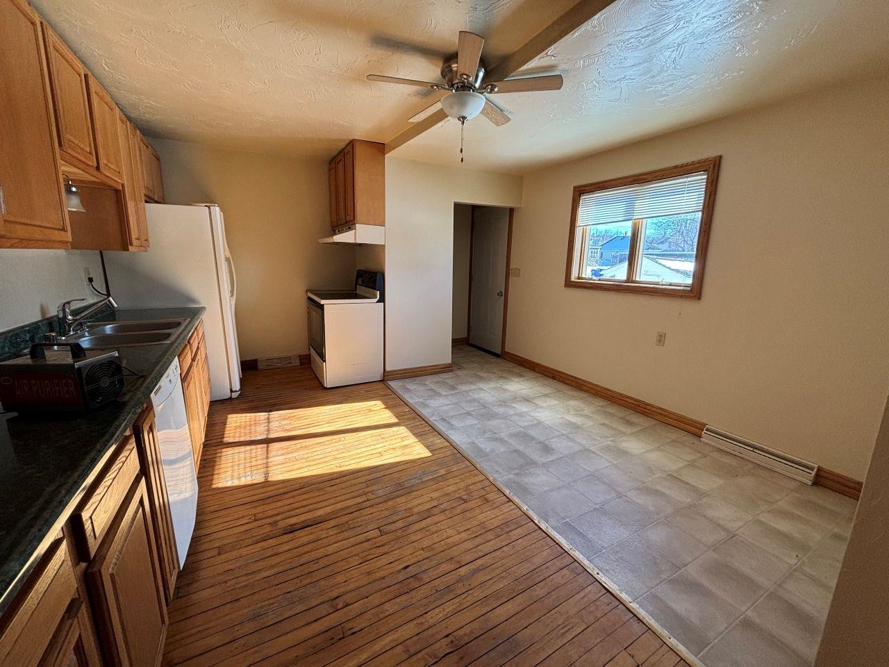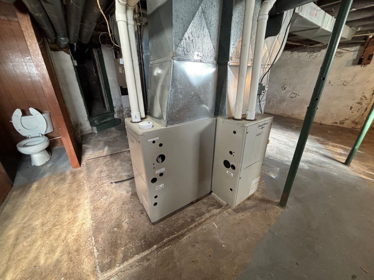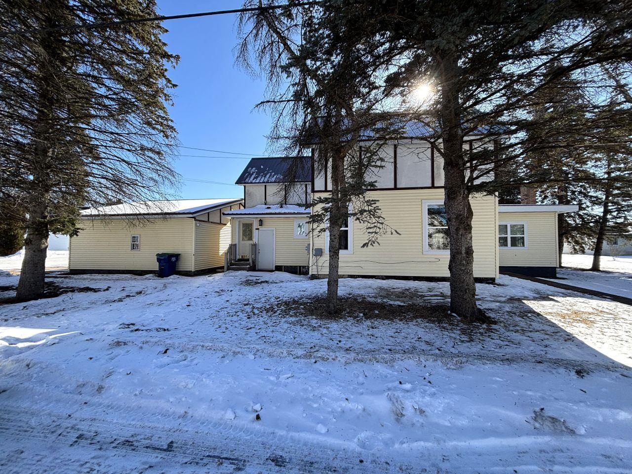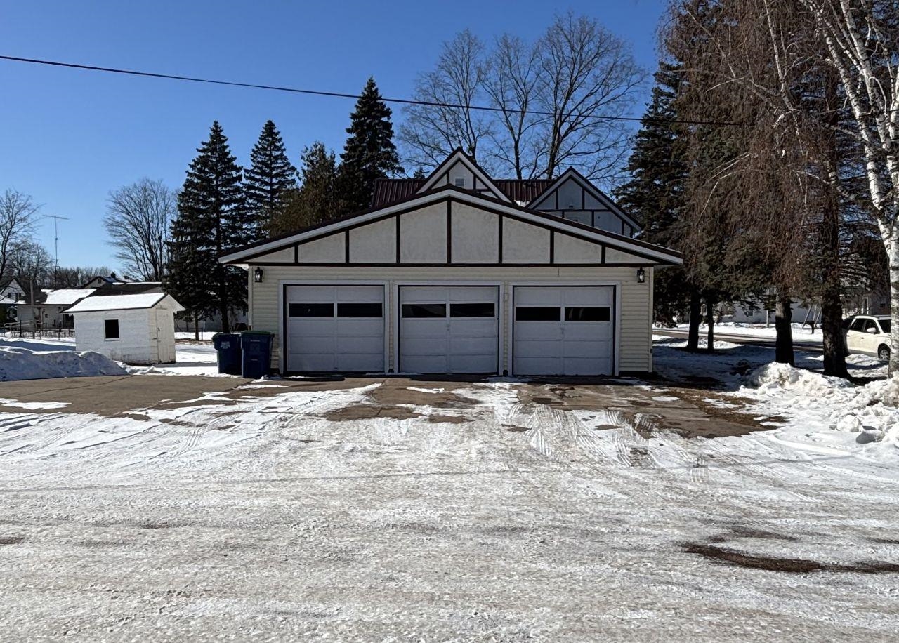 This corner-lot duplex in Marion features unique upper and lower units. The main-floor residence offers an eat-in kitchen with a stove, refrigerator, and dishwasher, along with a living room highlighted by a fireplace and built-in corner hutches. Three bedrooms and a full bathroom with a tub/shower combo complete the space, and hardwood flooring runs through much of the main level. The upper unit includes a kitchen with a stove and refrigerator, washer and dryer hookups, a living room with a ceiling fan and wall air conditioner, two bedrooms, and a full bathroom with a shower stall. Vaulted ceilings add to the upper level’s appeal. The basement provides exterior access and has two furnaces, two water heaters, and a washer and dryer. A detached 3-car garage completes the property.