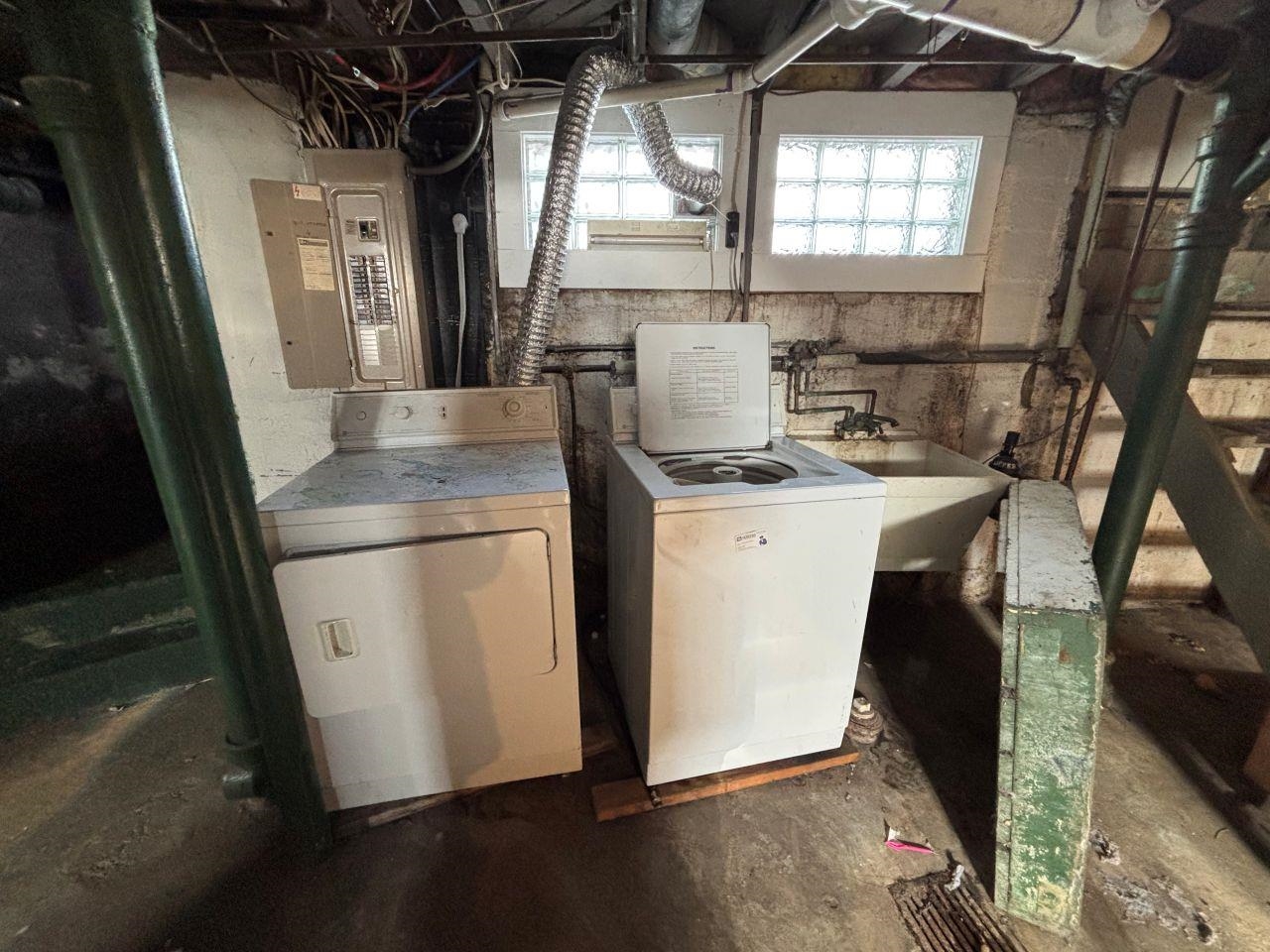 (2) Refrigerators, (2) stoves, washer and dryer in basement
