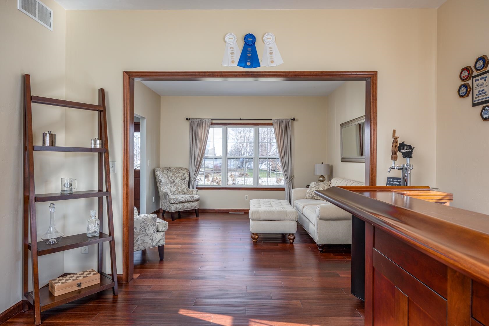 microwave, dishwasher, gas range, refrigerator, lower level refrigerator, washer, dryer, window treatments