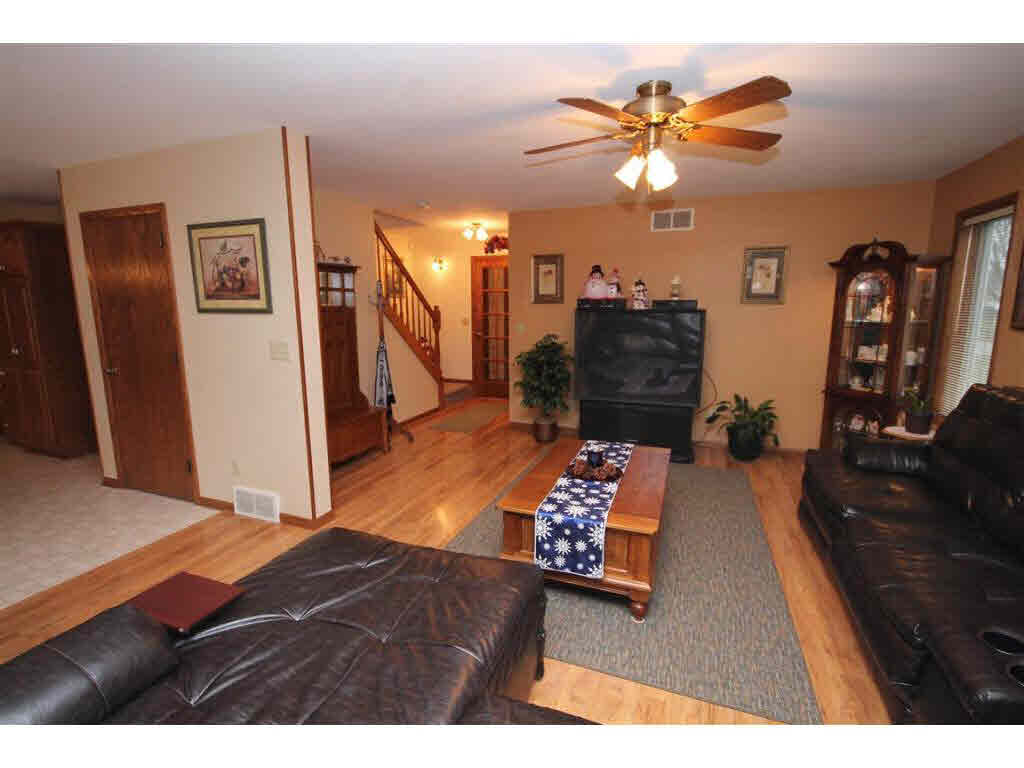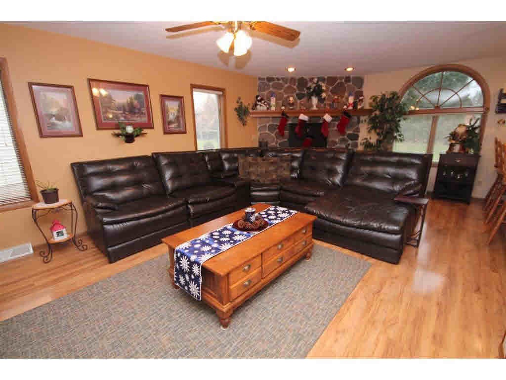 Spacious Open Concept in this 4 BR 2 story with2.5 baths, beautiful large living room w/ FP open to cheerful BIG kitchen w/island, main floor laundry, formal dining room, main floor den/office, and 4 nice sized BR's, including lovely master suite. Lower level offers rec room & potential for another bath! Garage has one extra deep stall, for workshop, storage or a 3rd vehicle!