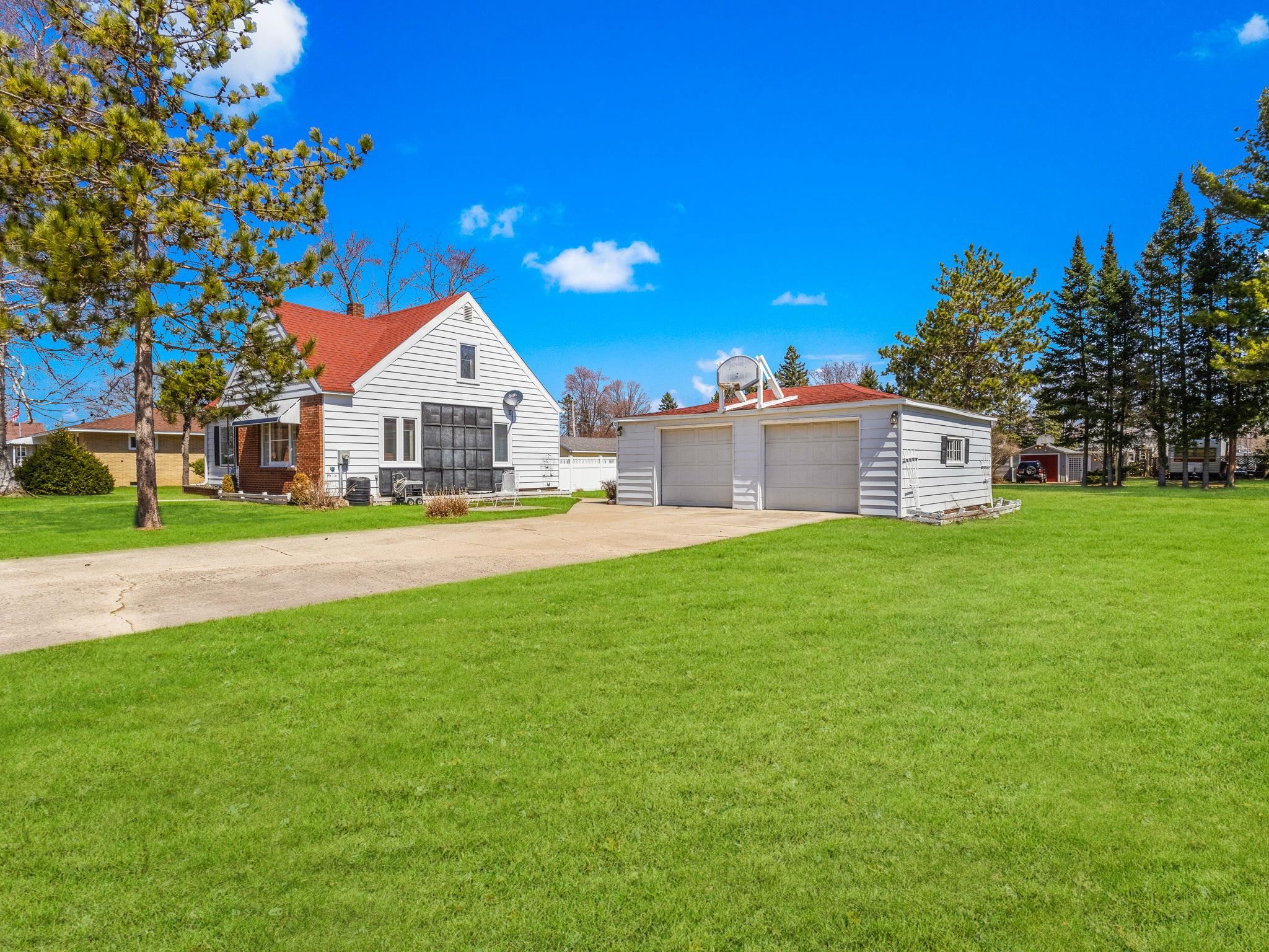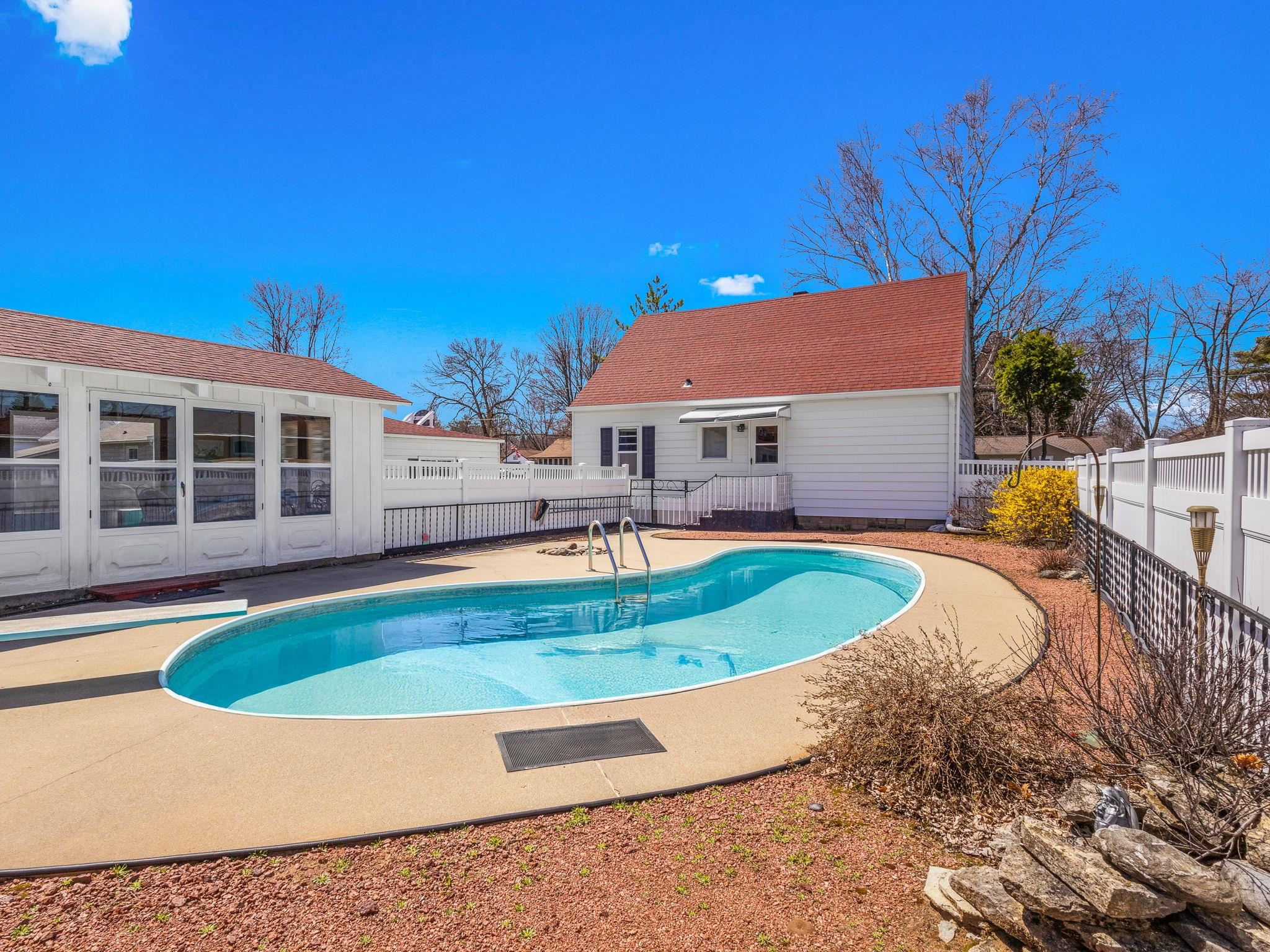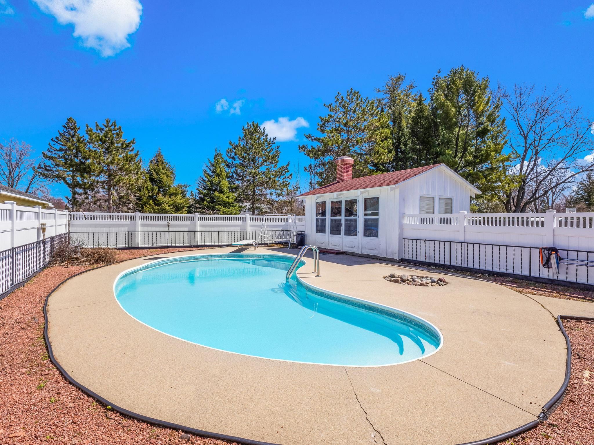 Charming 3-bedroom, 1-bath home located in the City of Peshtigo, situated on a spacious double lot. Enjoy outdoor living with a fenced in, heated in ground pool (8.5 ft deep), and a pool house featuring a cozy free-standing fireplace-great for entertaining. Large detached 2-car garage offers plenty of space. Solar panels on the side of home. This home will not last long!