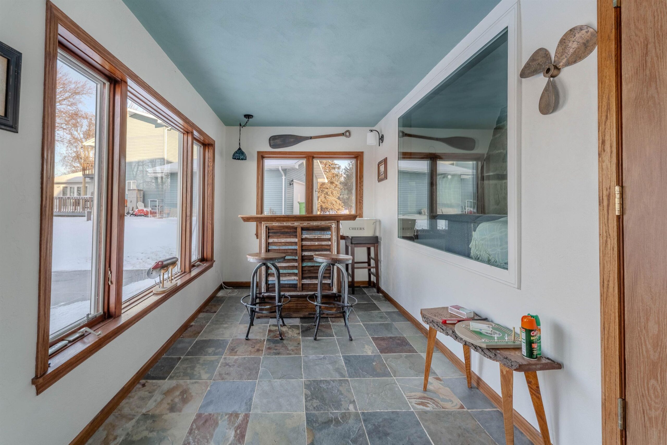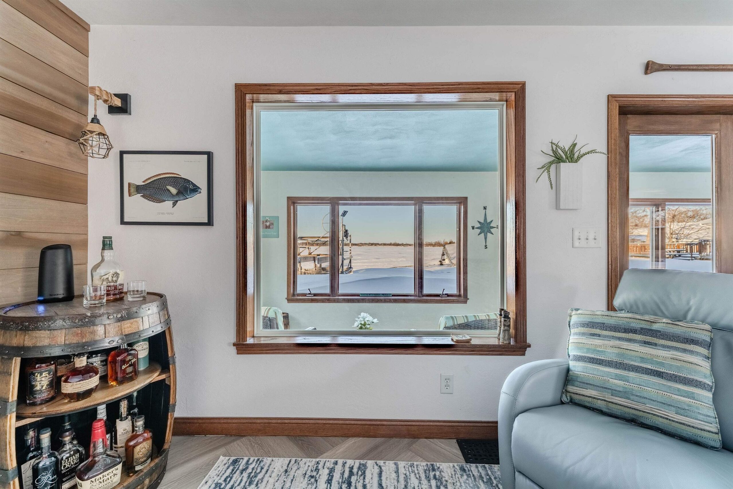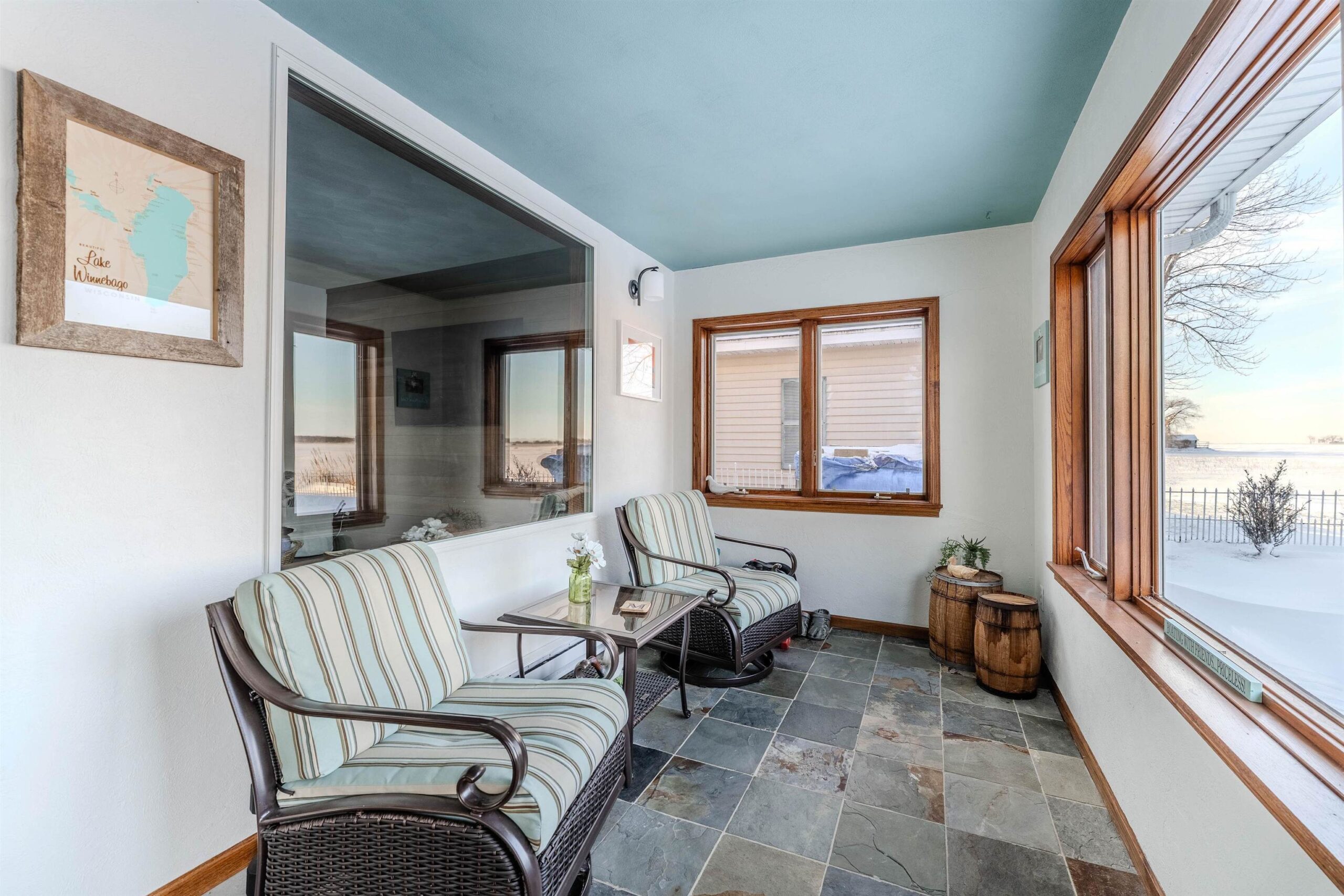 Tucked on desirable Lake Butte des Morts w/ premier views + frontage, this beautifully finished lake home is sure to impress inside + out! Well-appointed home has an open concept main floor featuring a renovated kitchen w/ island, dining area for entertaining, generous waterside living room w/ fireplace, sunroom that steps out to the yard / lake, home office and upper bedrooms including waterfront primary suite w/ vaulted ceiling + fireplace. So many updates throughout plus, great storage w/ walk-up attic and a 2 car garage. Enjoy incredible sunsets and some of the best swimming, fishing + access to recreation on the lake! All this plus, just steps from the Wiouwash Trail and convenient access to I-41 + the Fox Cities!