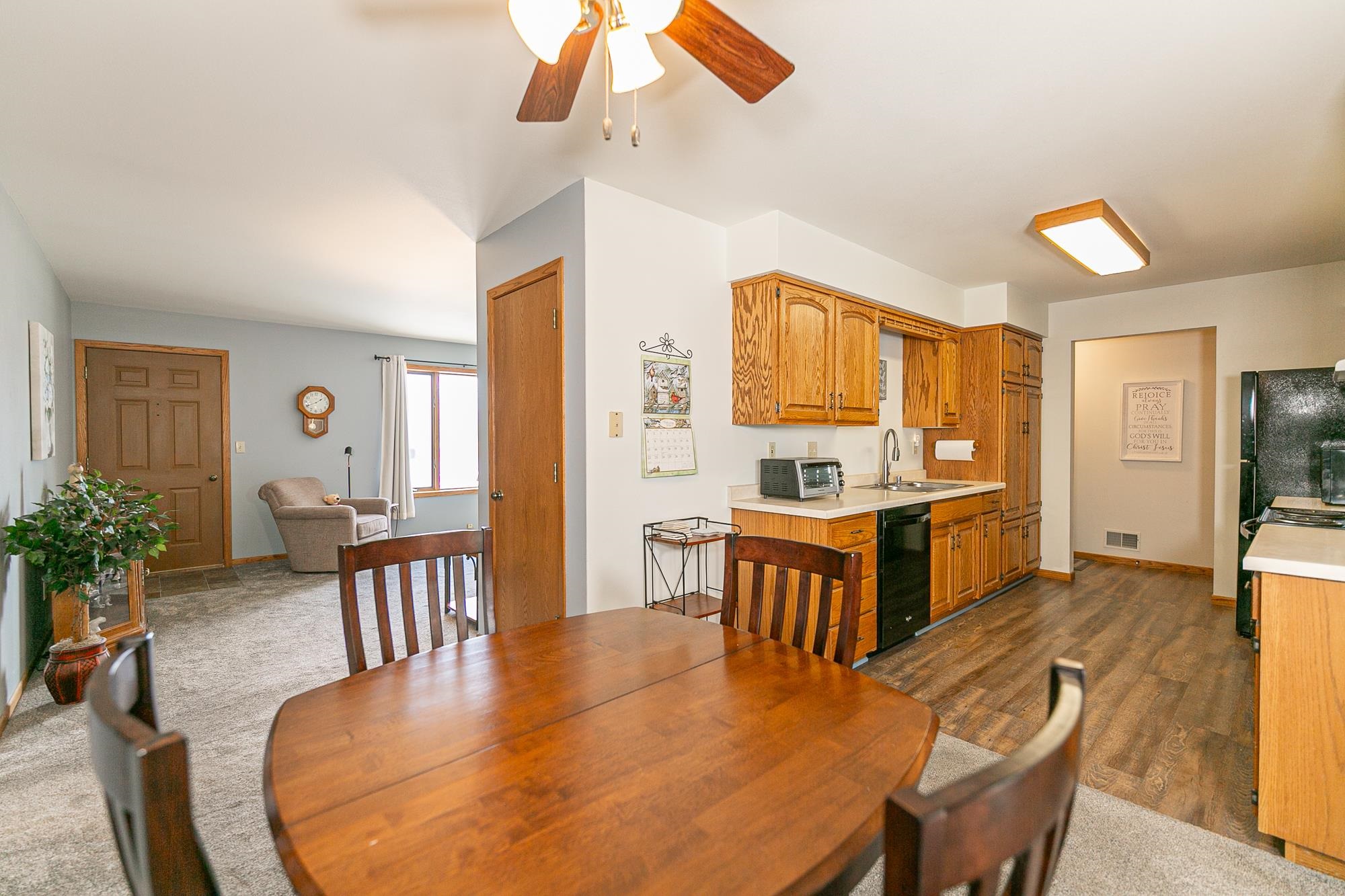 Welcome home to carefree living in this immaculate, meticulously maintained condo located in a desirable 55 & over community. Step inside to spacious living room that opens seamlessly to the dining area. Smartly laid out kitchen featuring new appliances & great counter space. New carpeting in living rm, hall & two generously sized bedrooms, Full bath highlighted w/new walk-in shower. Convenient first-floor laundry adds everyday ease & Add'tl 1/2 ba for guests. Full Basement offers excellent storage & the potential to easily add additional living space. Enjoy the 2-car attached heated garage and relax on the freshly painted deck, that is covered & enclosed for your perfect retreat at day’s end. Newer A/C unit. Call today for a private showing! Seller requests closing on or after 4/20/26