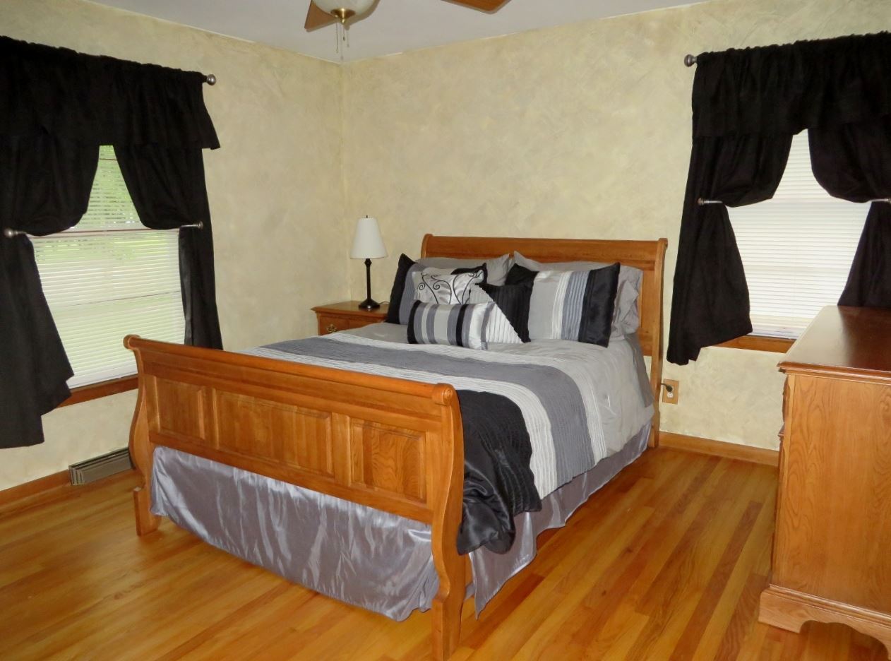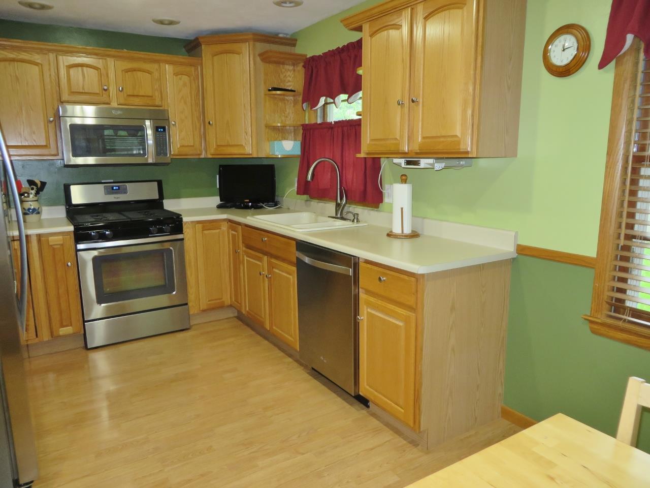 Spotless eastside 3 BR ranch with finished LL rec room. Large living/dining room has brick fireplace. Updated kitchen features oak cabinets, pantry & stainless steel appliances. Pergo flooring in the kitchen, dinette & dining area. Beautiful hardwood flooring in the bedrooms. Finished LL rec room with dry bar and another wood-burning fireplace! Newer roof, water softener, water heater & garage doors. Spacious & private fenced-in back yard with patio. 2-car garage w/pull-down stairs for more storage.
