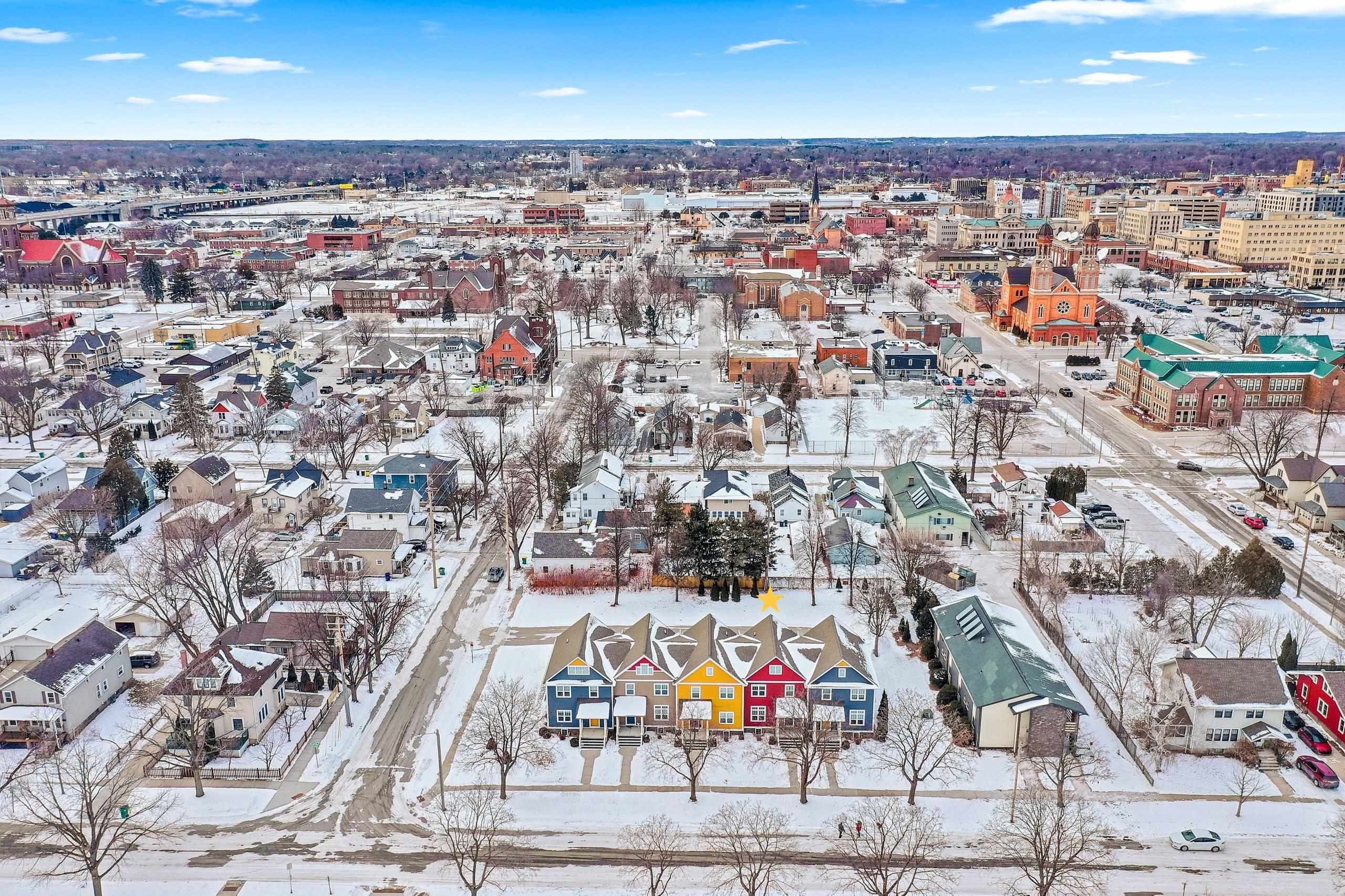 Experience modern urban living in this stunning 2-story townhome built in 2018. Located in the heart of Green Bay, steps away from the downtown scene, Fox River Trail, local shops, and vibrant farmers markets. Its prime location also offers quick access to St. Vincent and Bellin Hospitals. This sun-drenched condo features an open kitchen with a stylish island, pantry with pull-out cabinets, and a private bath off the primary suite. Enjoy a maintenance-free lifestyle including lawn care and snow removal. The basement is a standout, featuring an egress window—perfect for a fabulous rec room or a 4th bedroom. A beautiful Park sits right across the street, completing this perfect package. High-end finishes, incredible light, and unbeatable convenience await. Welcome home to Jackson Street!