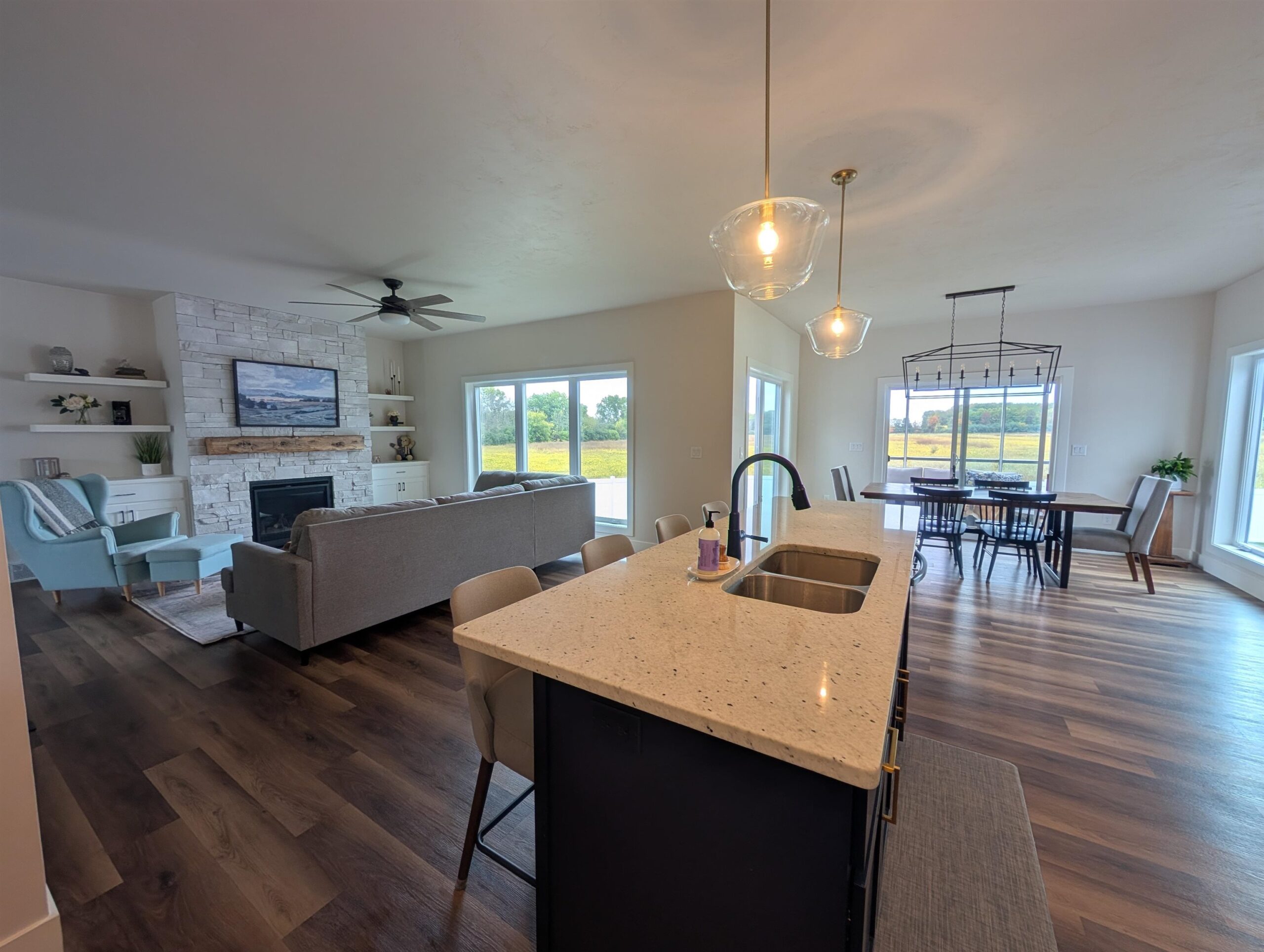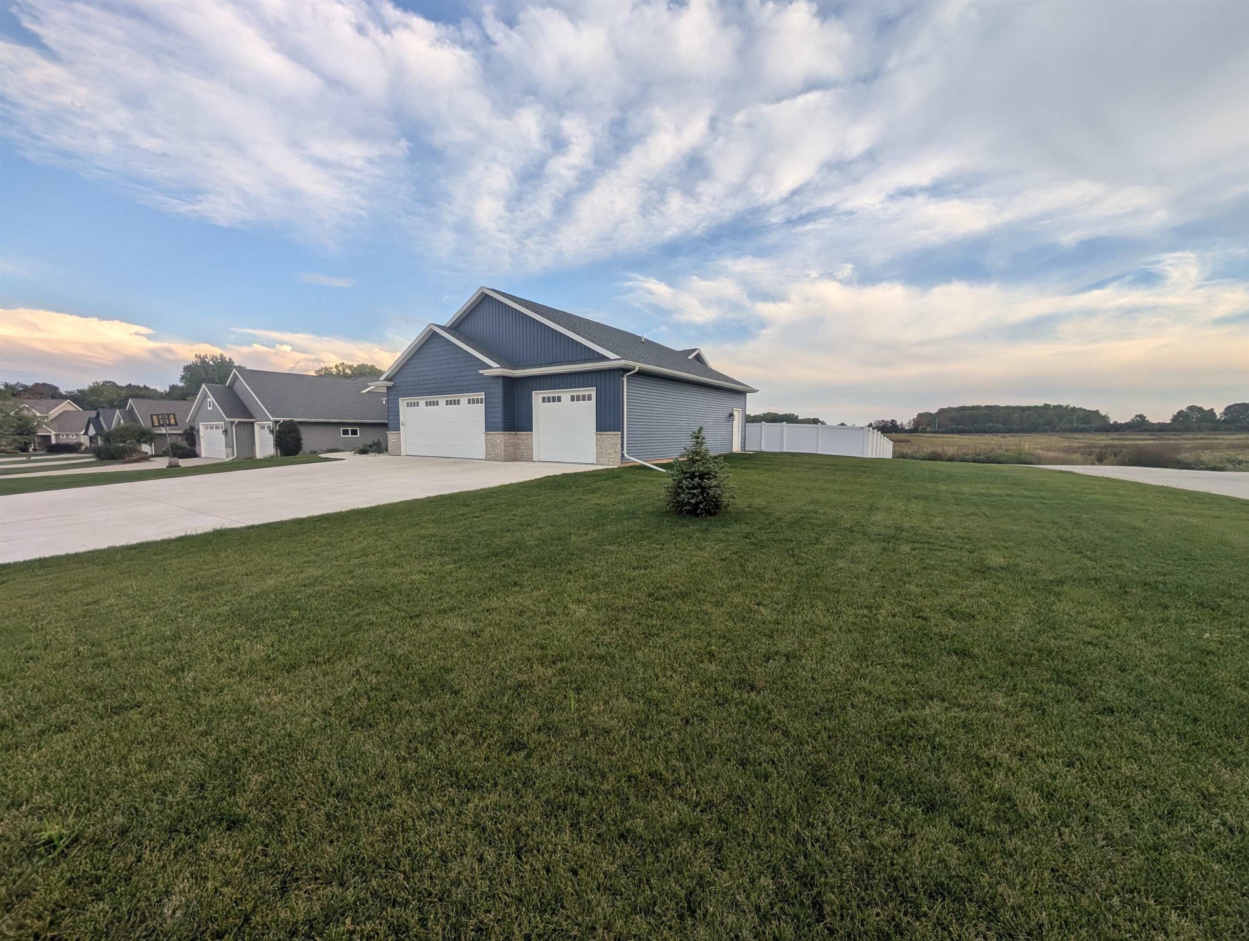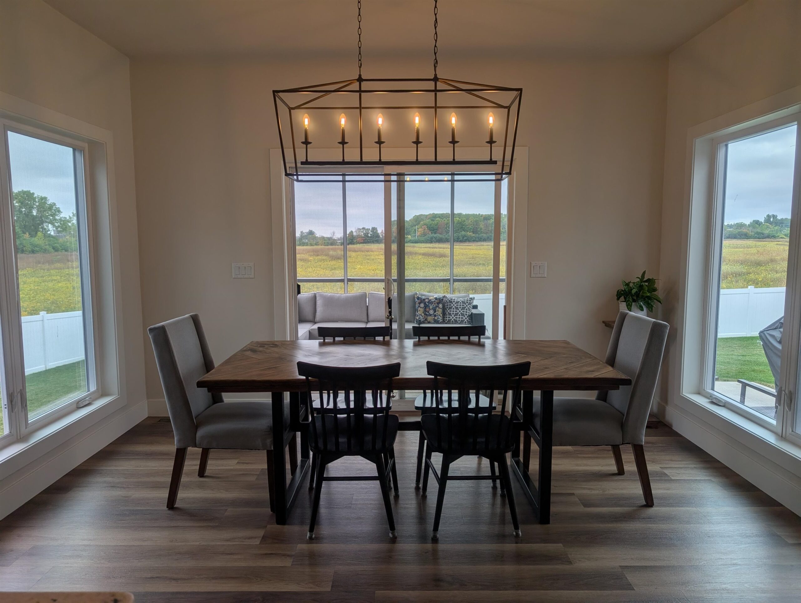 Two-year-old Custom Home with Open Floorplan with 2936 SF of living space. Southern exposure lot with fenced yard and screened in patio overlooking an open field. Luxury Vinyl flooring throughout 1st floor with beautiful kitchen open to Great Room/Dining Room area. Kitchen has custom-built 9’ tall cabinets, large island, granite countertops, tiled backsplash, black stainless steel appliances and nice sized walk-in pantry. Primary Suite features tiled shower with glass door, custom built double sink vanity, walk-in closet w/ access to laundry room. 1st floor boasts Pocket office off Foyer, beautiful transom window, Barn wood Newel Post with horizontal wrought iron bars, gas fireplace with Barn Beam Mantle and stone surround. All bedrooms have walk-in closets. Extra Deep 3rd stall garage