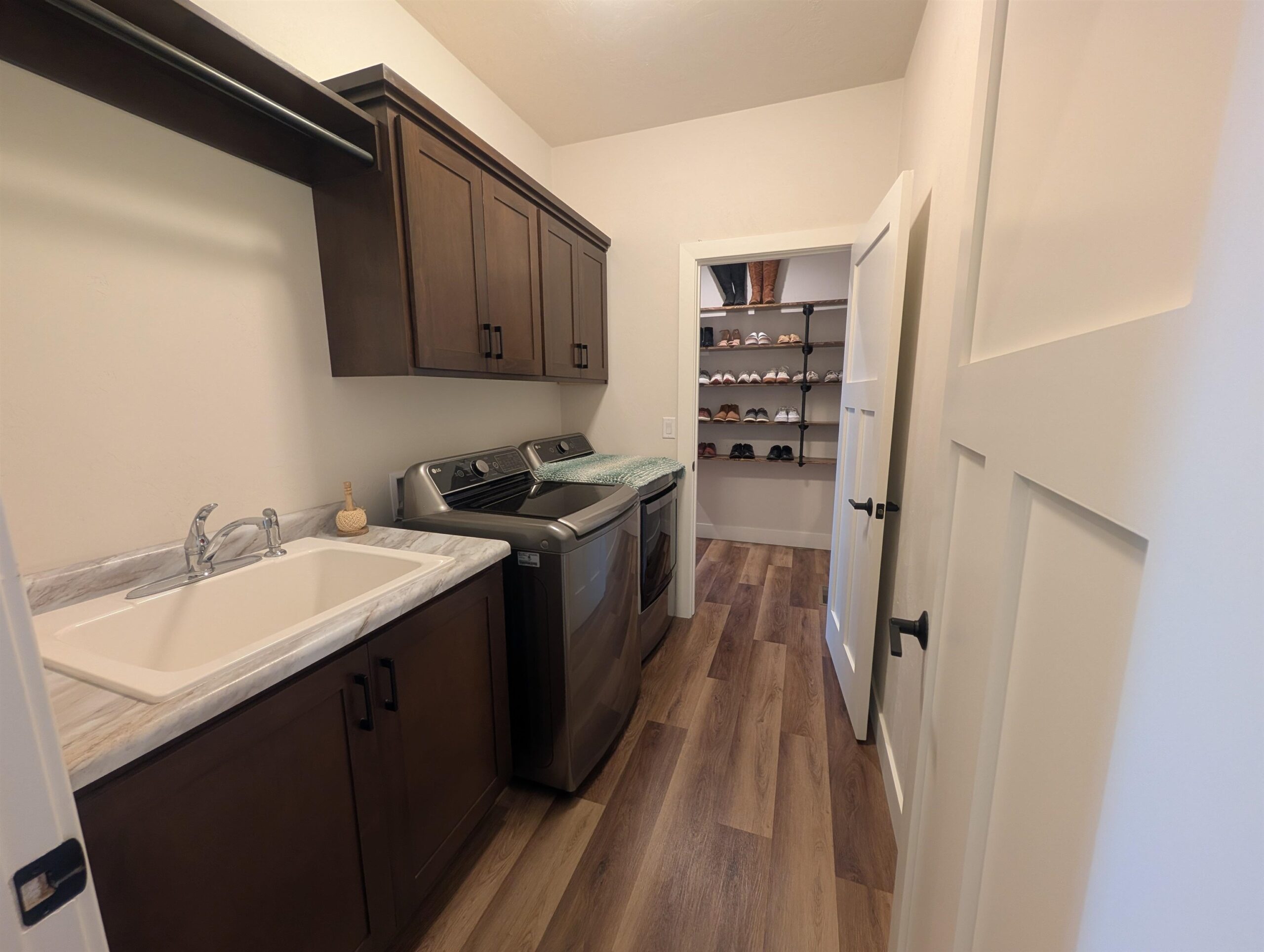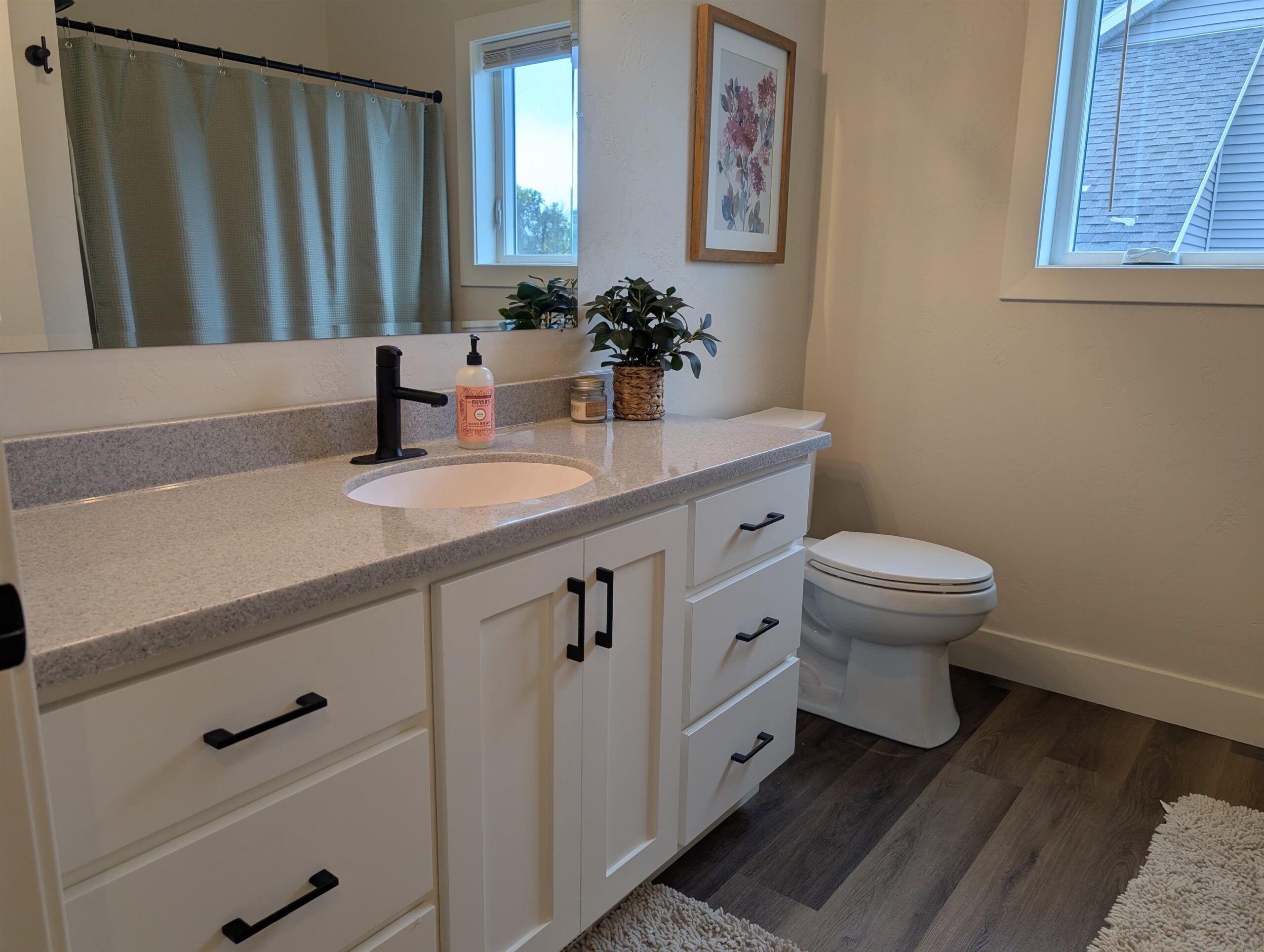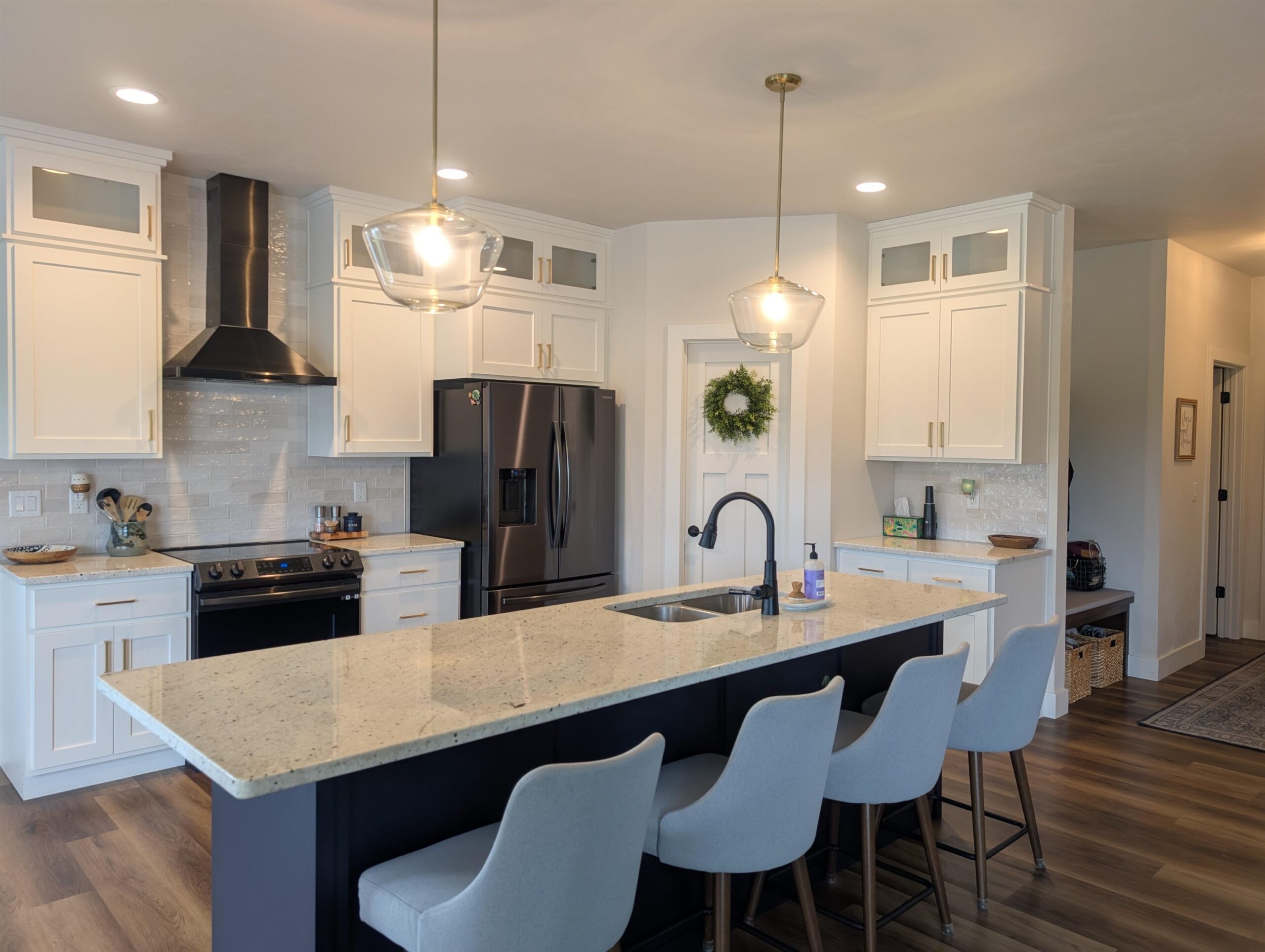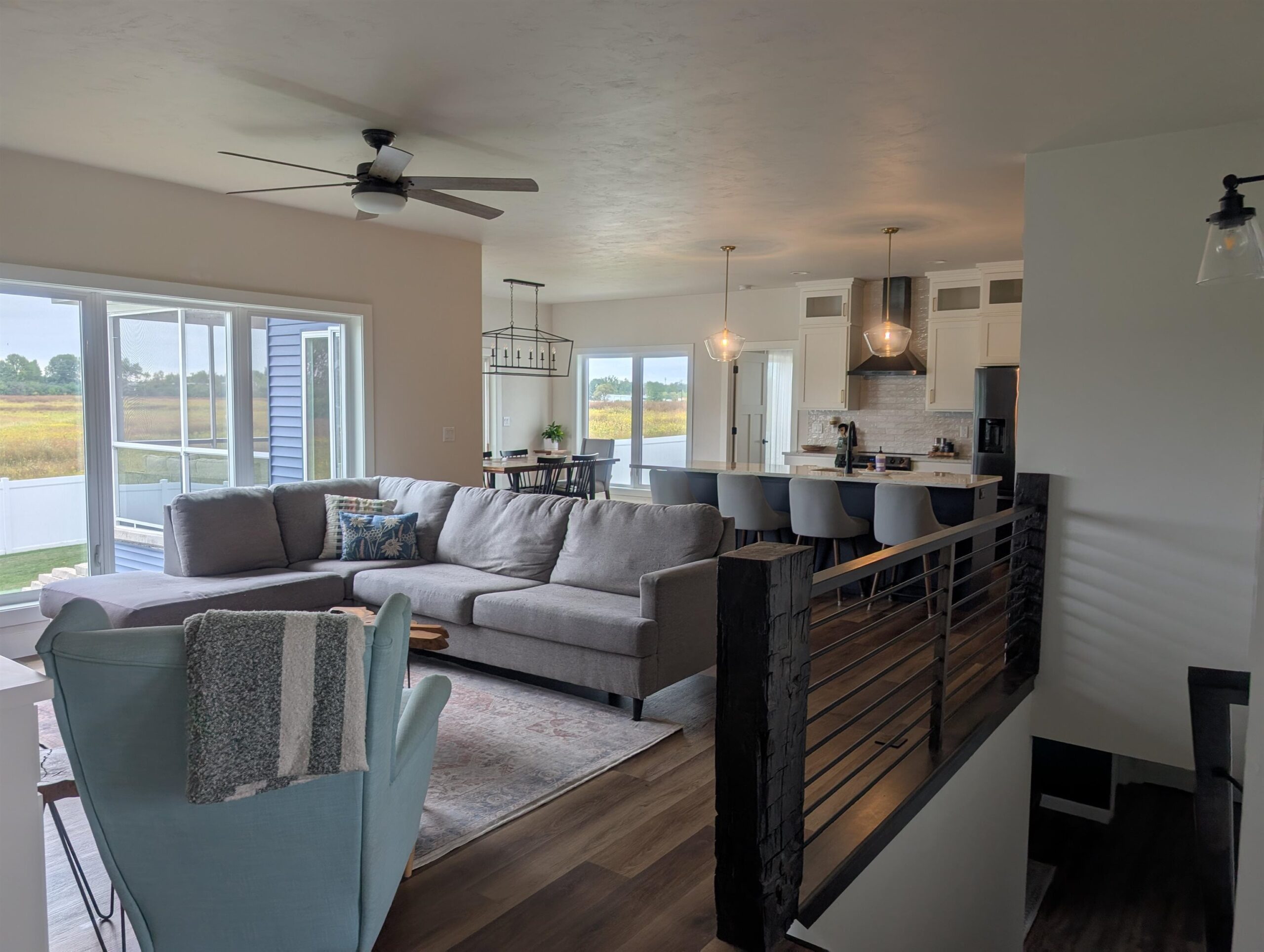 Two-year-old Custom Home with Open Floorplan with 2936 SF of living space. Southern exposure lot with fenced yard and screened in patio overlooking an open field. Luxury Vinyl flooring throughout 1st floor with beautiful kitchen open to Great Room/Dining Room area. Kitchen has custom-built 9’ tall cabinets, large island, granite countertops, tiled backsplash, black stainless steel appliances and nice sized walk-in pantry. Primary Suite features tiled shower with glass door, custom built double sink vanity, walk-in closet w/ access to laundry room. 1st floor boasts Pocket office off Foyer, beautiful transom window, Barn wood Newel Post with horizontal wrought iron bars, gas fireplace with Barn Beam Mantle and stone surround. All bedrooms have walk-in closets. Extra Deep 3rd stall garage