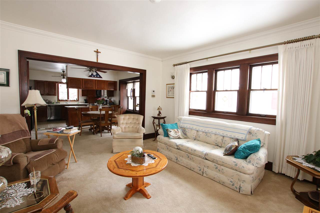 Natural light flows from room to room in this open concept 4 bedroom cape cod home. Brand new siding and roof in October 2019! 2 Main floor bedrooms, and 2 upper bedrooms. Open concept living, dining, and kitchen areas. Solid surface kitchen counters, all appliances included, and gorgeous woodwork too. Enclosed front porch features warm and sunny views even this time of year! Nicely landscaped yard with a brick patio to relax on. Great storage and built-ins!