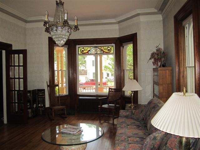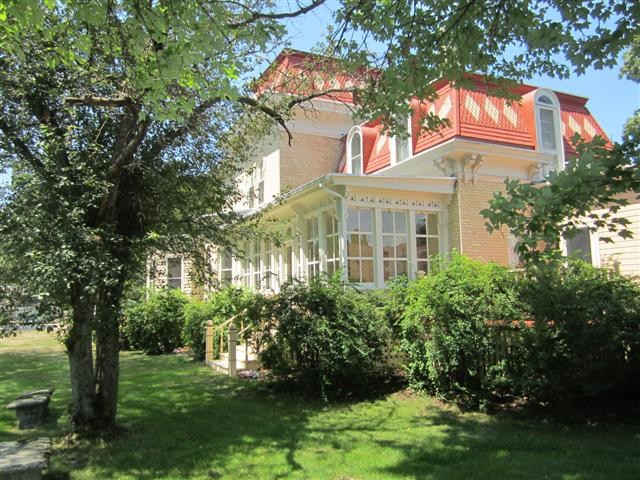 Gracious & Stately SECOND EMPIRE 4 BR restored to its original grandeur. Entry foyer w/open staircase, large parlor, library w/marble fireplace, formal dining room w/built-in china cabinet & marble fireplace, music room, 3-season porch overlooking gardens, 10 ft ceilings, stained-glass, crown moldings, tall windows, walk-up attic, hardwood & granite floors & more! Chef’s kitchen w/custom cabinetry, granite countertop, built-in appliances & island . Heated workshop in 3-car garage. You'll love this home!