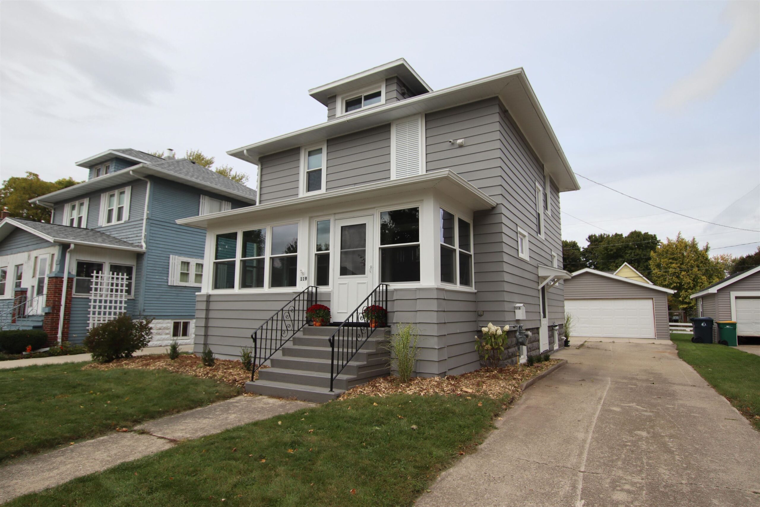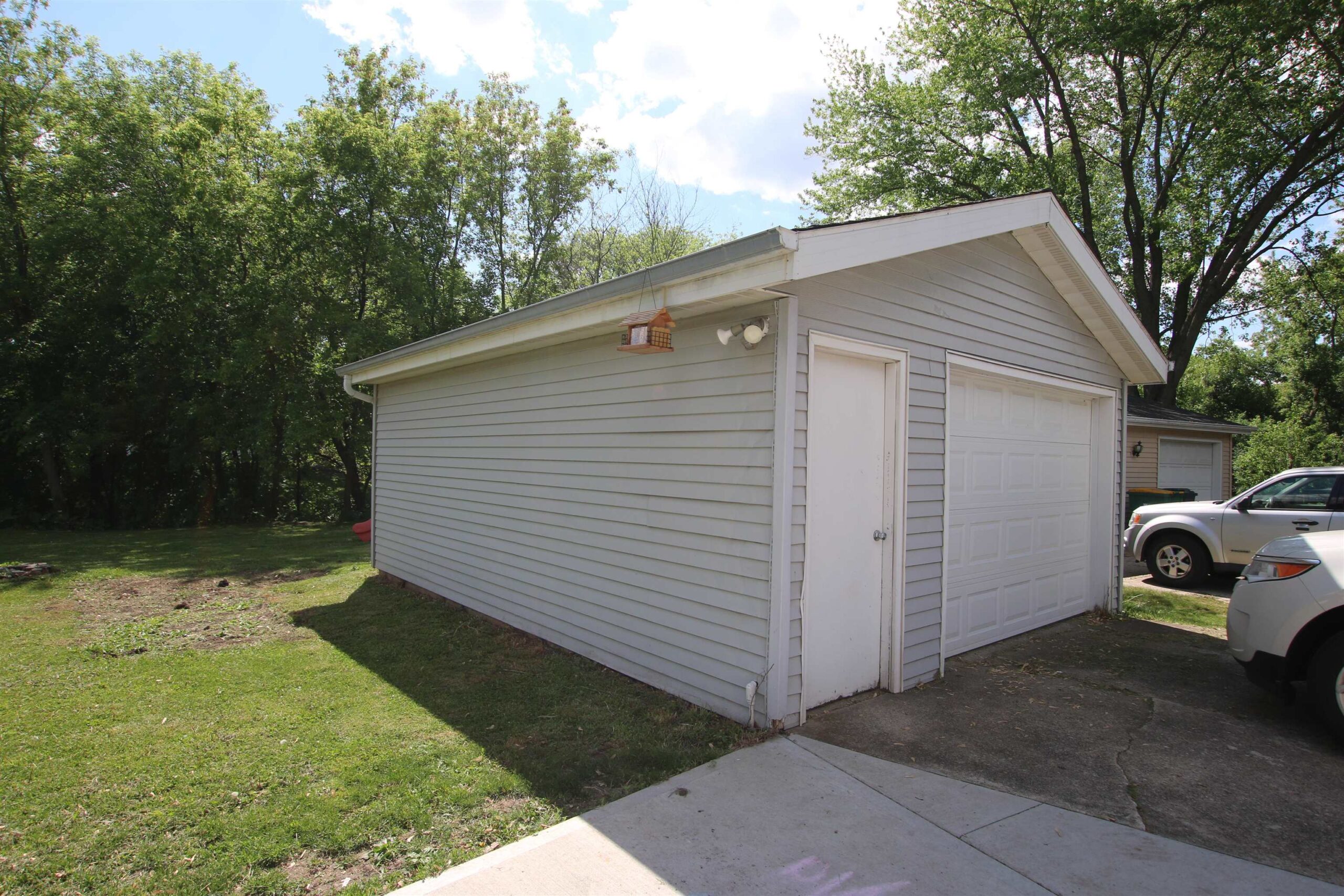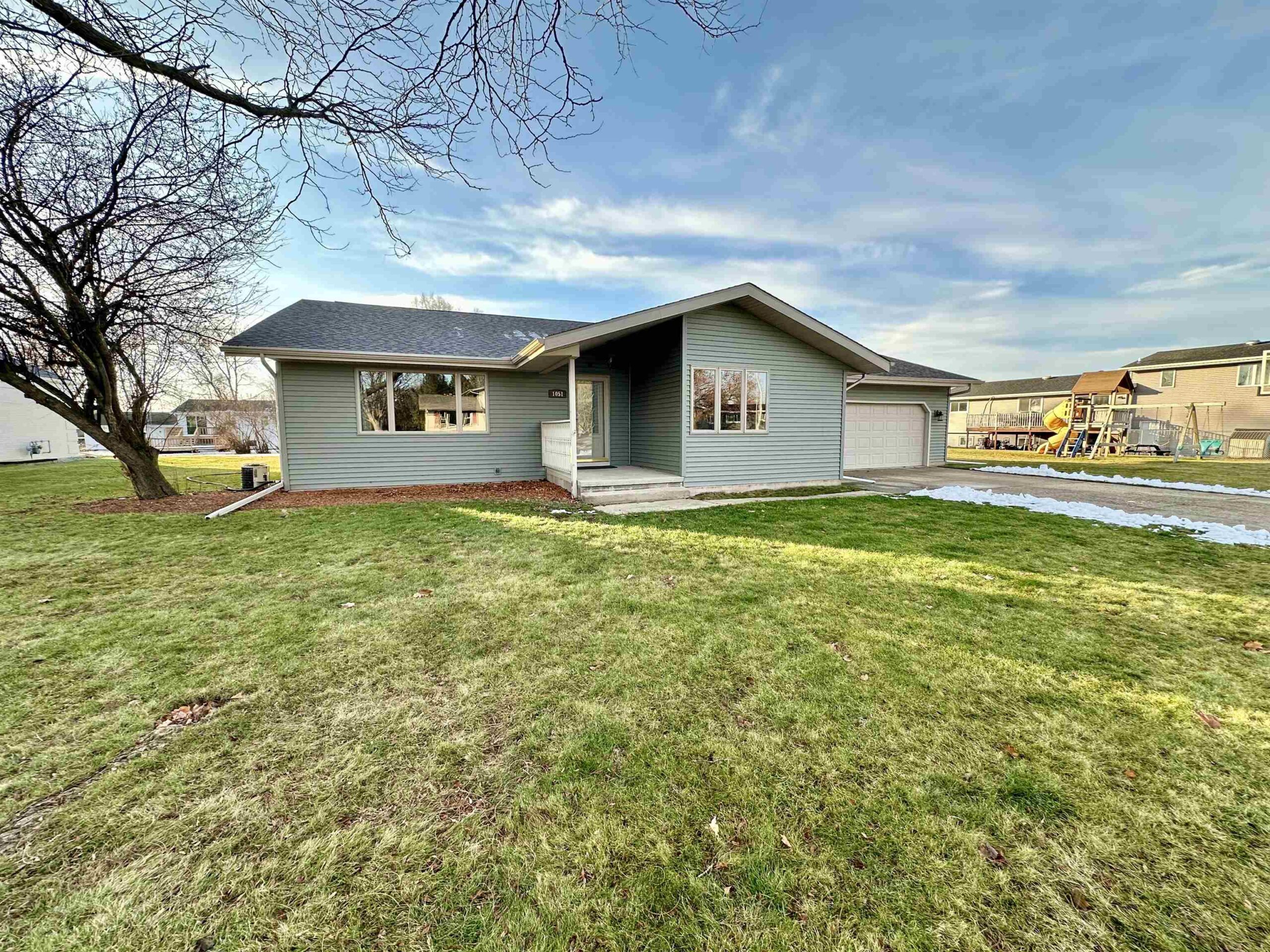 Check out this ranch duplex! Each unit features 2BR's, 1BA, separate 1.5 car garages, patio & a huge private yard that has water frontage on De Neveu Creek. One unit has newer windows. Secured common entry and divided basement (with high ceilings) for more storage or another space to hang out! Great rental history (currently MTM lease.)