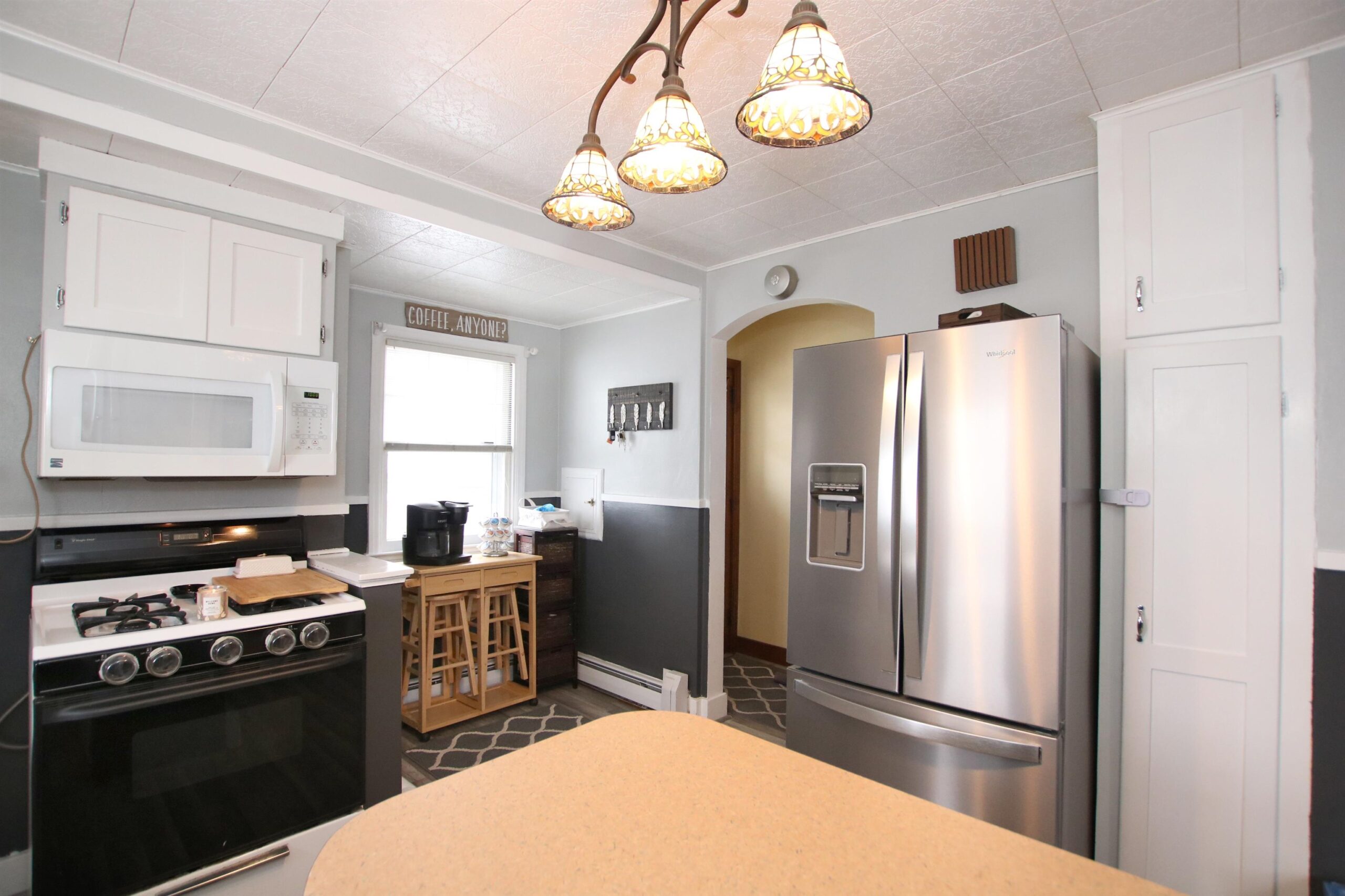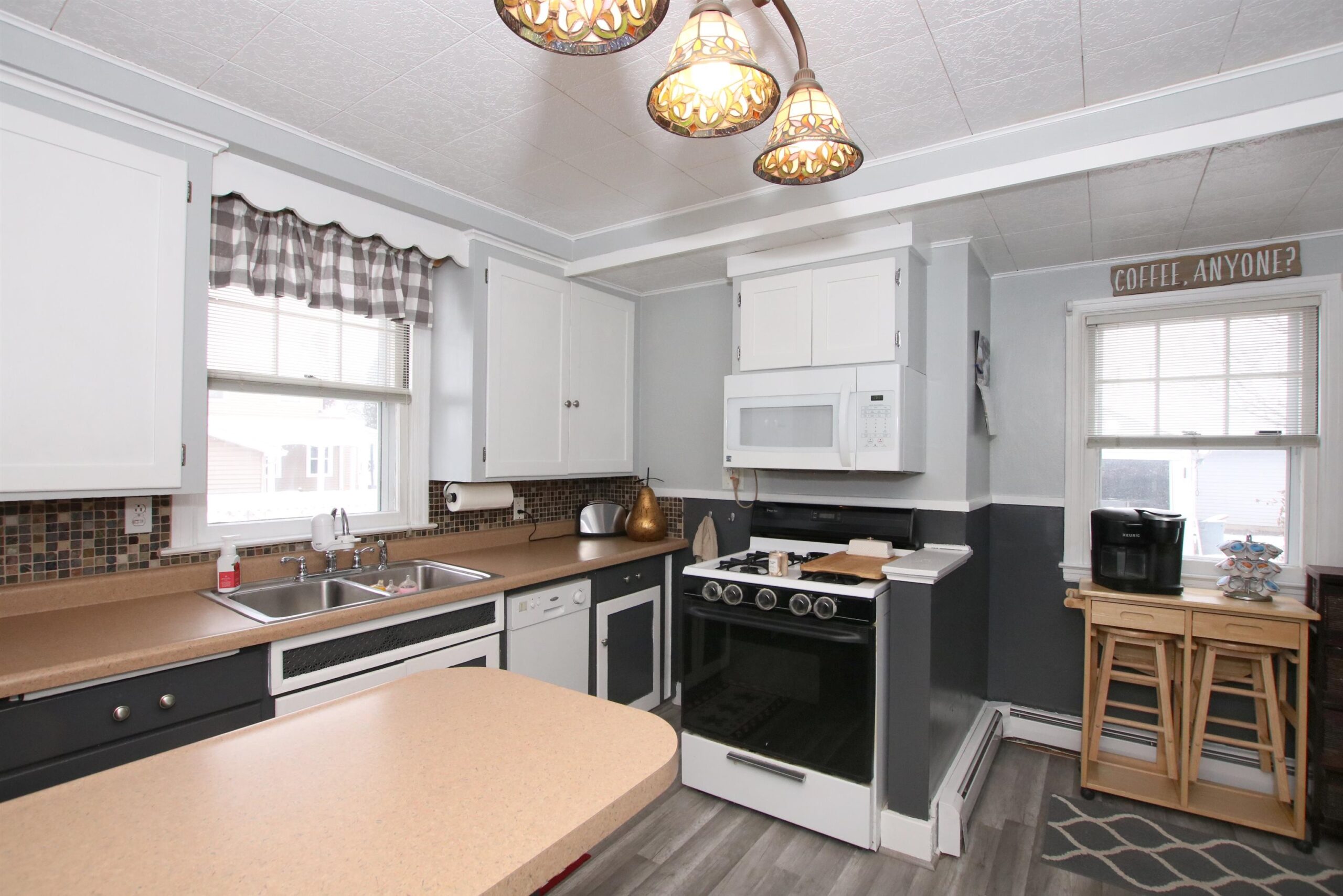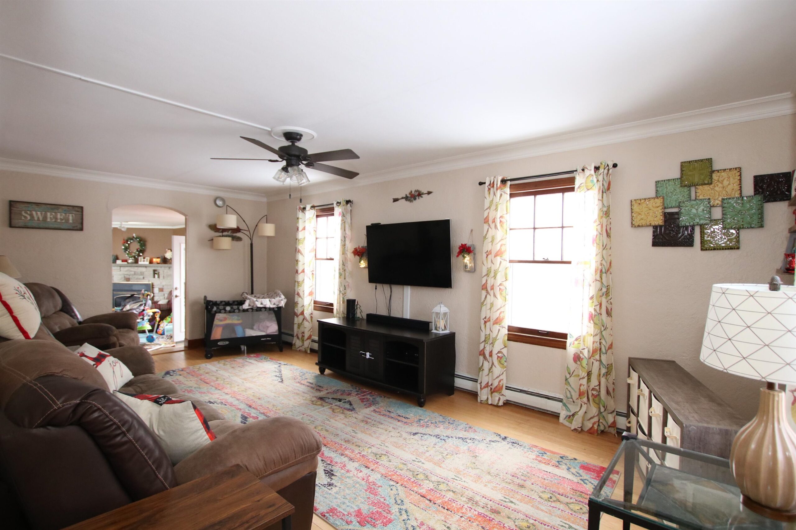 Absolutely CHARMING 2 to 3 bedroom cape cod with so many wonderful features. Currently 2 bedrooms, but potential for main floor 3rd with a gas fireplace! Beautiful hardwood floors, 1.5 bathrooms, finished lower level rec room area, and all appliances included. New deck and back door added! Newly fenced yard. Updated concrete driveway. Freshly painted kitchen and both bathrooms and kitchen with new flooring. Great home for the holidays!