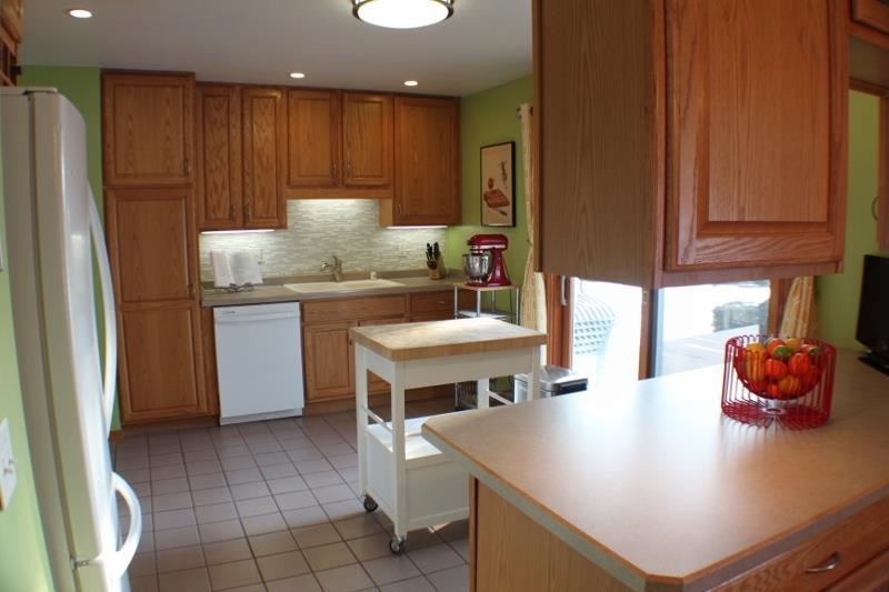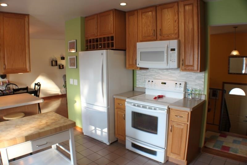 Cheerful & bright well maintained home w/inviting open floor plan. Spacious kitchen, large living room, wood floors throughout main level. Enjoy spectacular sunsets on your maintenance-free deck while enjoying the comforts of a semi-private fenced back yard - perfect for summer entertaining. Many updates including: appliances, roof, backsplash, real wood floors, deck, bay window, ceiling fan & more. Beautifully done landscaping with tulips blooming soon! Call for a private showing today. Home Warranty Incl