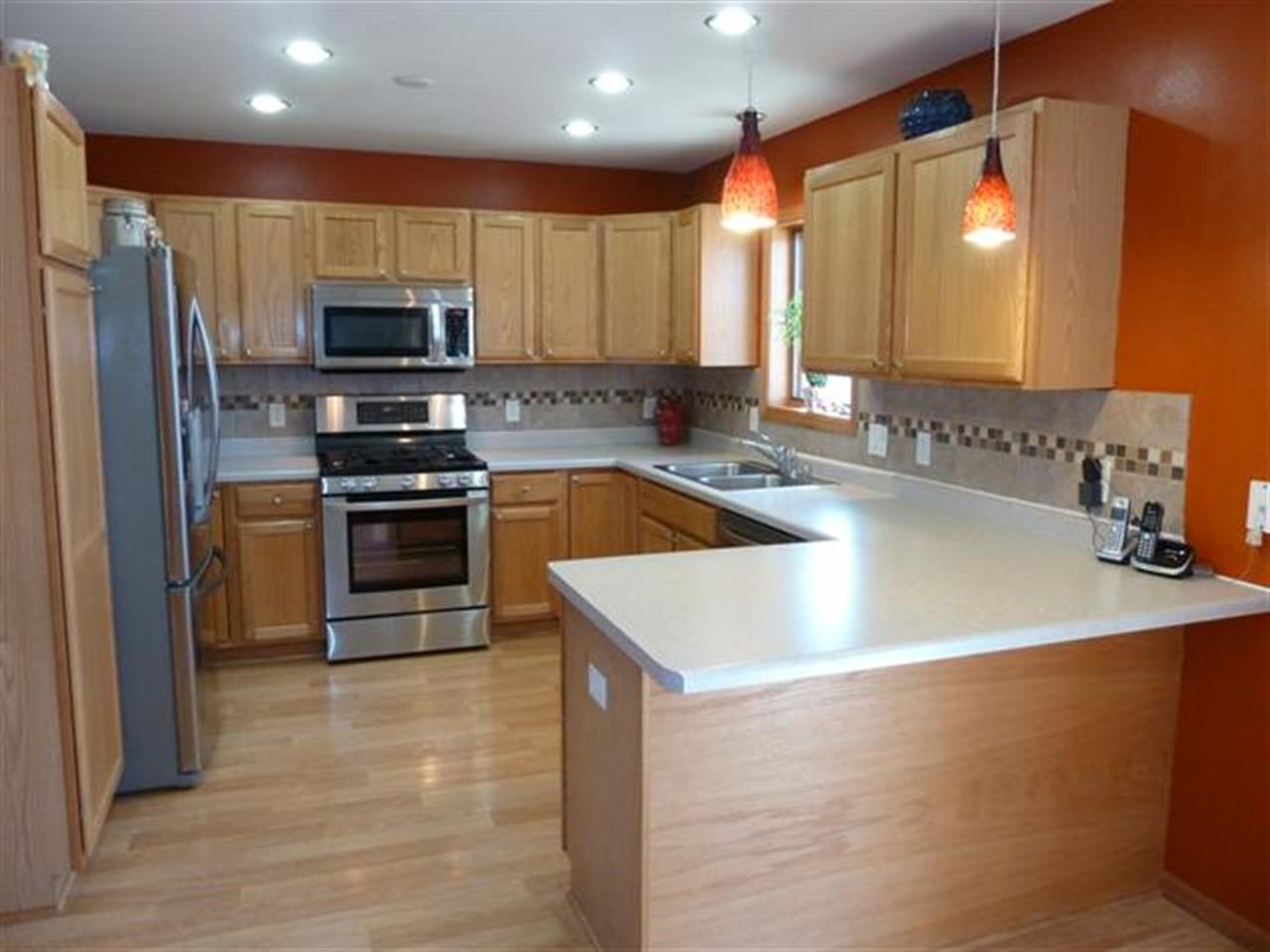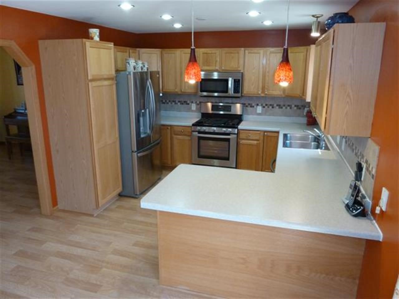 Let the sun shine in! Immaculate 2-story w/wood floors on most of the main floor. Vaulted ceiling w/gas fp plus bay window in familyrm, open to kitchen, featuring breakfast bar, tile back splash, pantry and all stainless appl. Livingrm/diningrm, plus office area and first floor laundry. Exposed lower level has rec room, wired for surround sound and office, could be 4th bedrm. Master w/walk in closet, private bath w/double sinks. Fantastic yard w/stamped concrete patio, fruit trees,gardens& playset. UHP inc