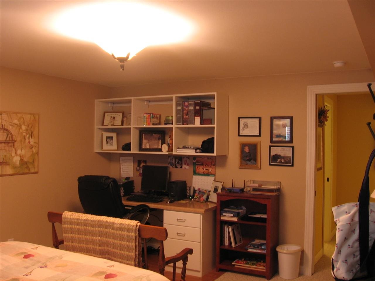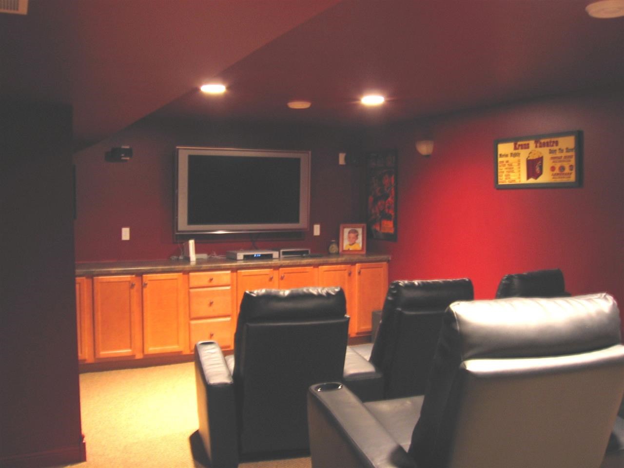 Custom build home with numerous amenities! Maple flooring in Master bedroom,living dining and hallway. 4 inch trim and crown molding,California closets, pocket doors, and a theatre room to die for!! 3 season porch over looks the professionally landscaped yard---Quality home!!
