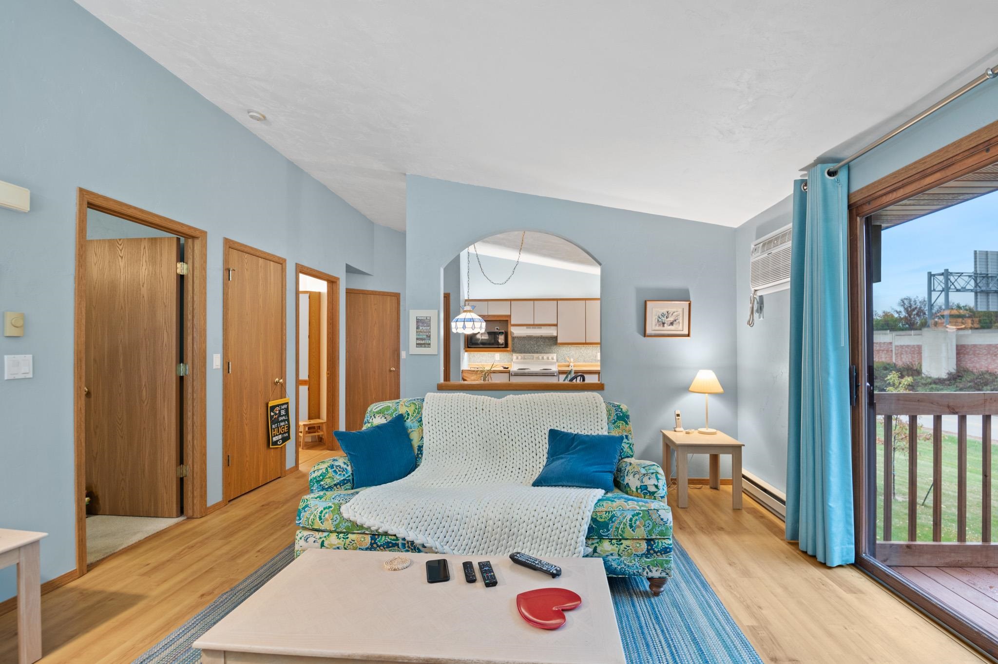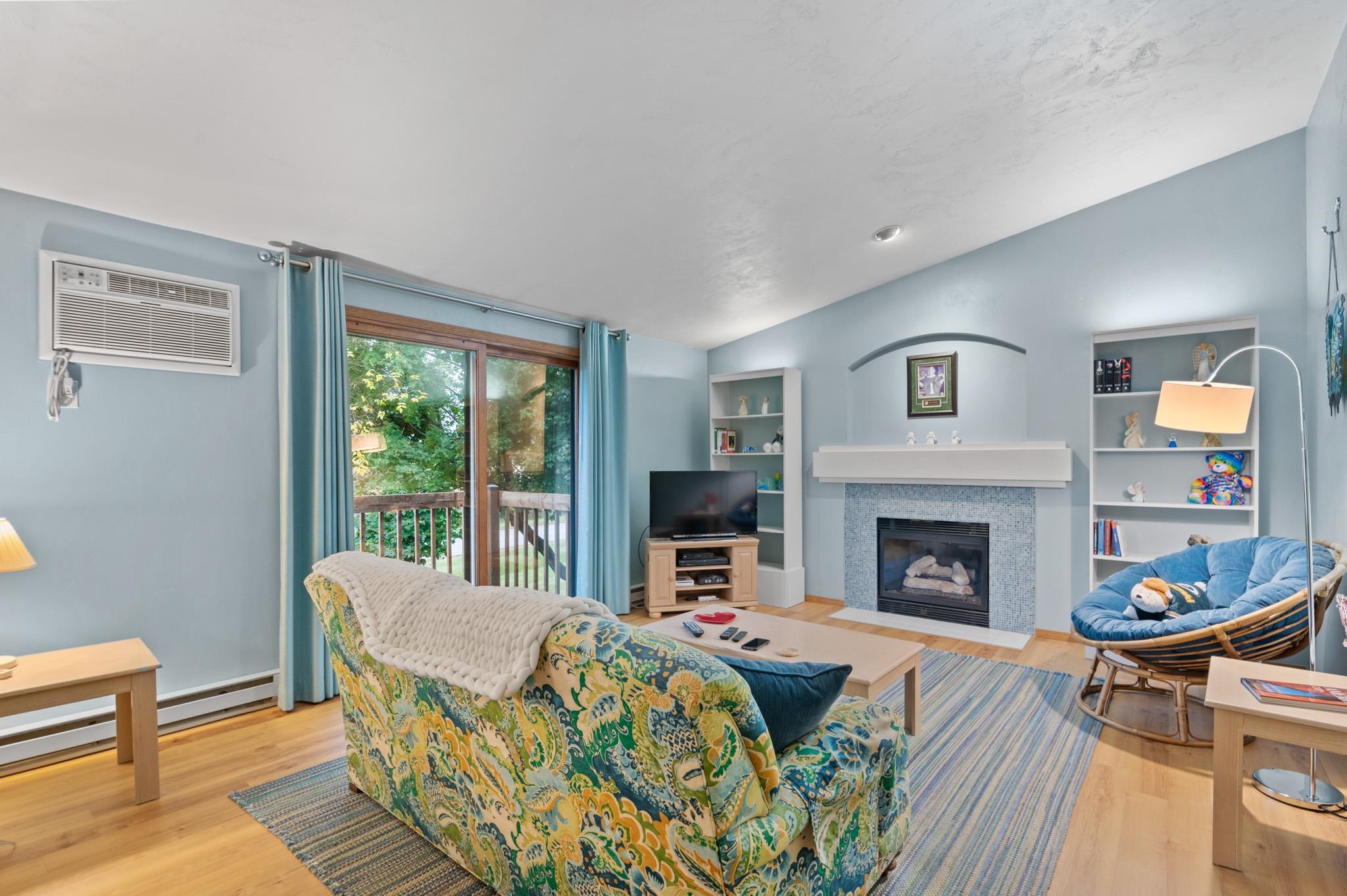 Welcome to this contemporary 1 Bedroom, 1 Bath condo centrally located. You will love the many updates including a walk-in shower, ceramic backsplash in kitchen, under cabinet lighting, ceramic tiling around the gas fireplace and wood flooring. This condo also boasts a stacked washer and dryer located inside the condo. Convenience, security, and easy living!
