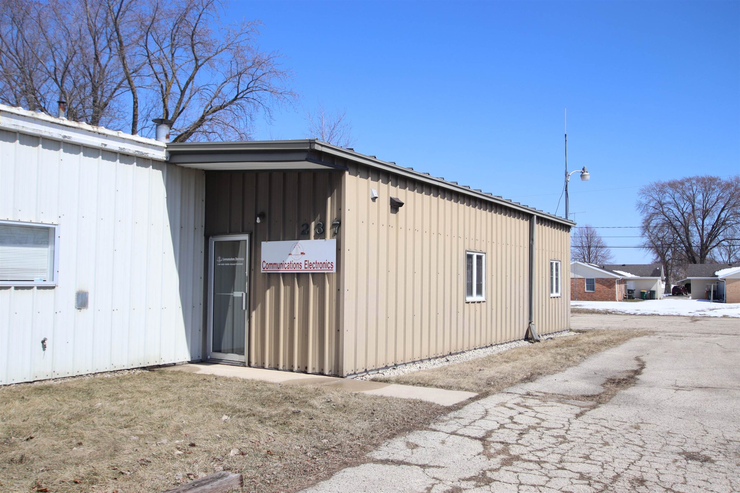 For Sale! Multiple use opportunities can be explored with this 2 unit building totaling 4,800 sq ft. #235 Offers large and bright windows inviting for a cafe or retail space, kitchen area with tile floor, 3 bathrooms, plenty of storage room, and office rooms. Separate heating and a/c controls. #237 Offers a great set up for construction or trades work usage. This unit features an attached partially finished garage with concrete floors and a 9Hx10W garage door, 13ft ceiling height throughout, office spaces, storage, Male and Female bathrooms, and separate heating and a/c controls. Secure indoor storage units is another possibility in both of these units. Metal exterior and roof. 1.5 car garage on the property with a 30+ parking lot.