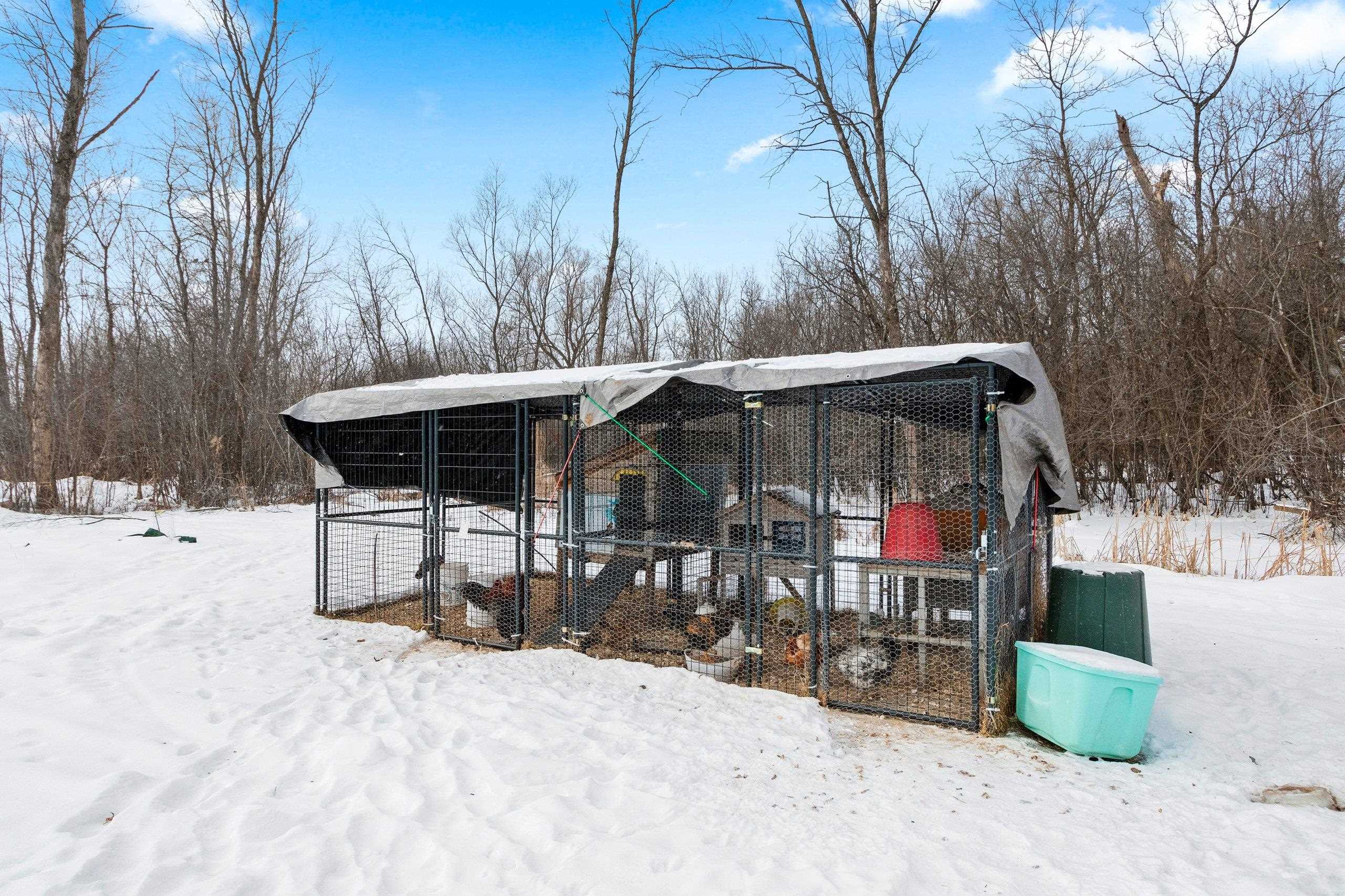 Hot tub, pond aerator, pond dock, upright freezers, chicken coop, microwave, garage heater, 12x20 shed, front air condensor