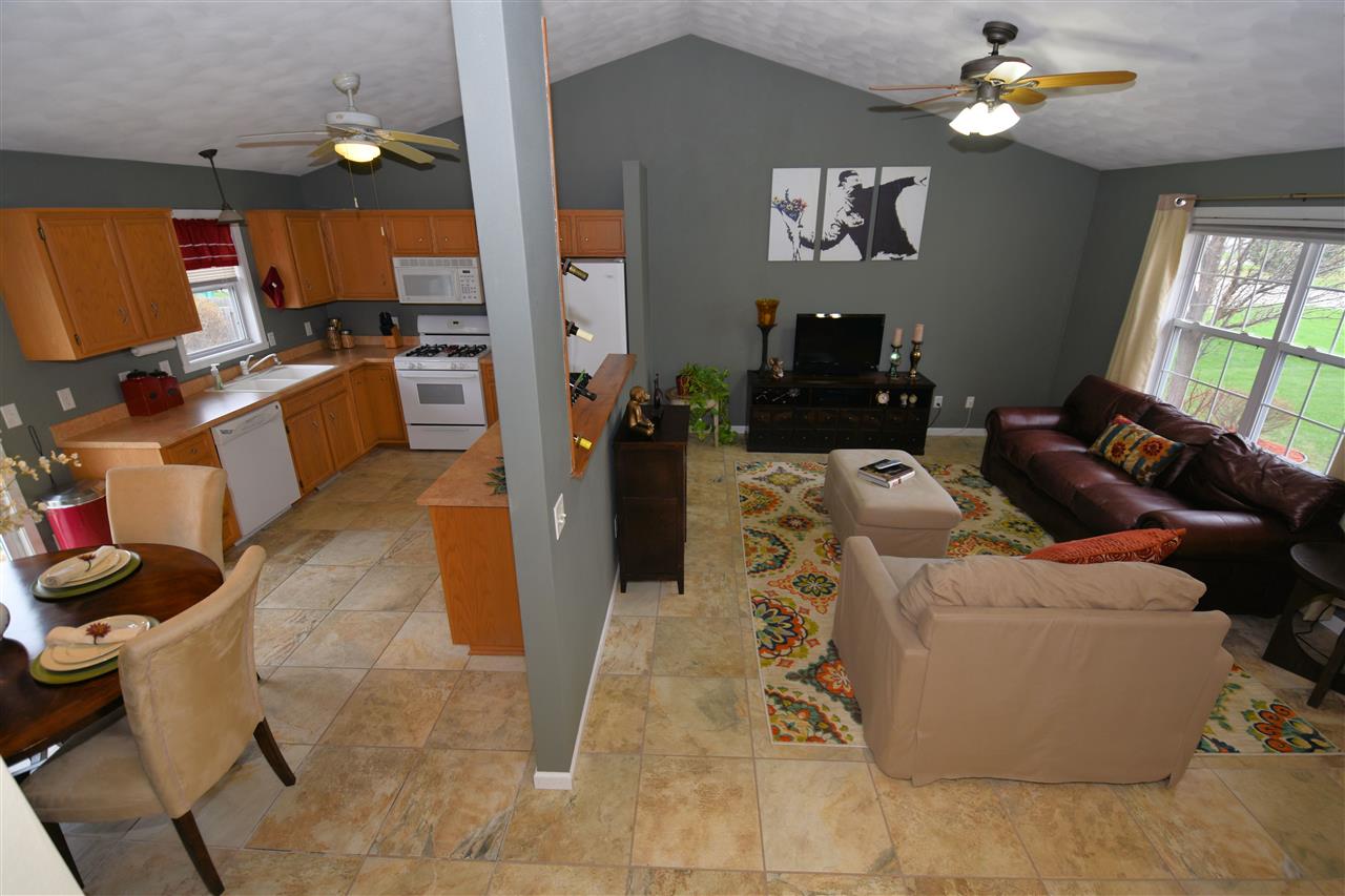 Spacious and Open! You will feel right at home with the warm colors and attractive decorating. 2014 New Tile flooring throughout first floor which includes living rm with vaulted ceiling and kitchen. New carpets and laminate wood floors in other rooms. Plenty of space in bright family room. Kitchen leads to back yard patio with a Fenced yard. Freshly painted thru out, you must see this 4 Bedroom home 2 full bath, 3 car garage with extra storage.