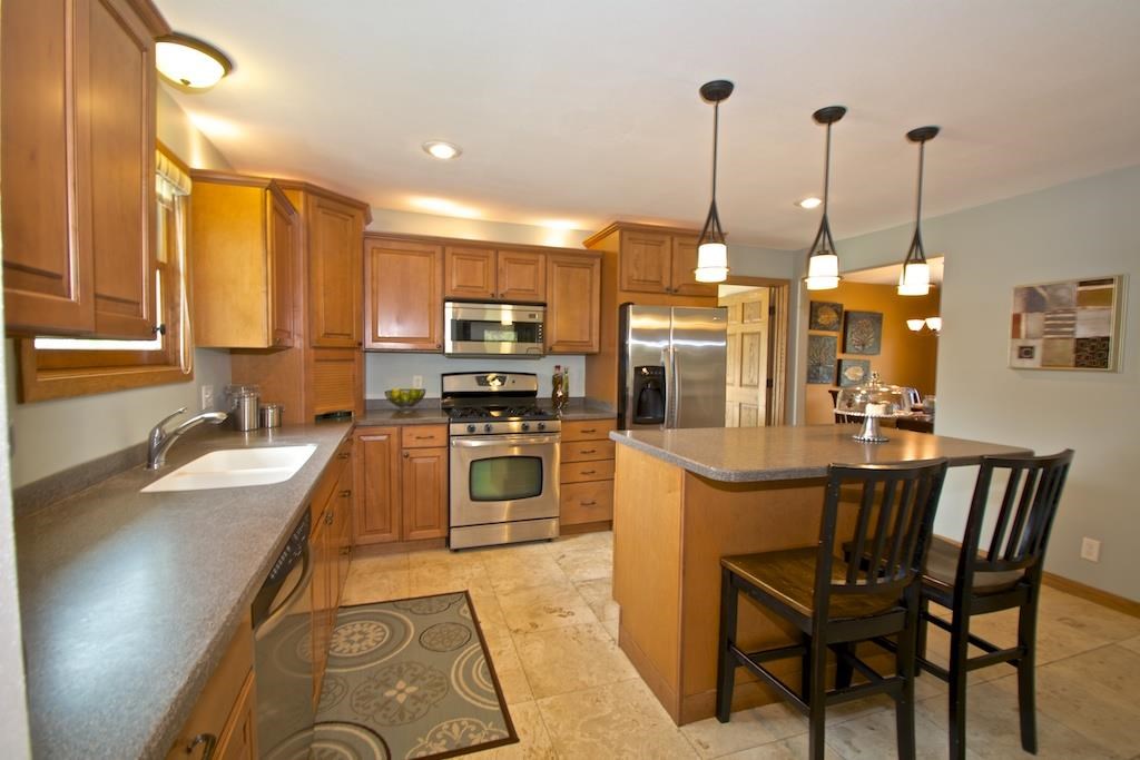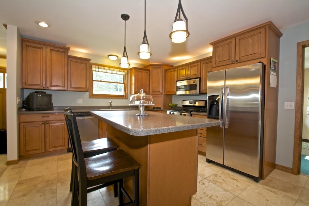 Come see this gorgeous, updated stone home in desired Oregon School District. Main level features an open floor plan with many updates like solid-surface countertops and stainless appliances, fireplace, hardwood floors in bedrooms, tiled bathrooms, tub w/separate shower in master. Finished lower level has full bath, wet bar, rec room w/stone fireplace, and 4th bed w/separate entrance. Enjoy the sunset views over the large, enclosed lot from your deck. Short drive to belt line, downtown, and Lake Waubesa.