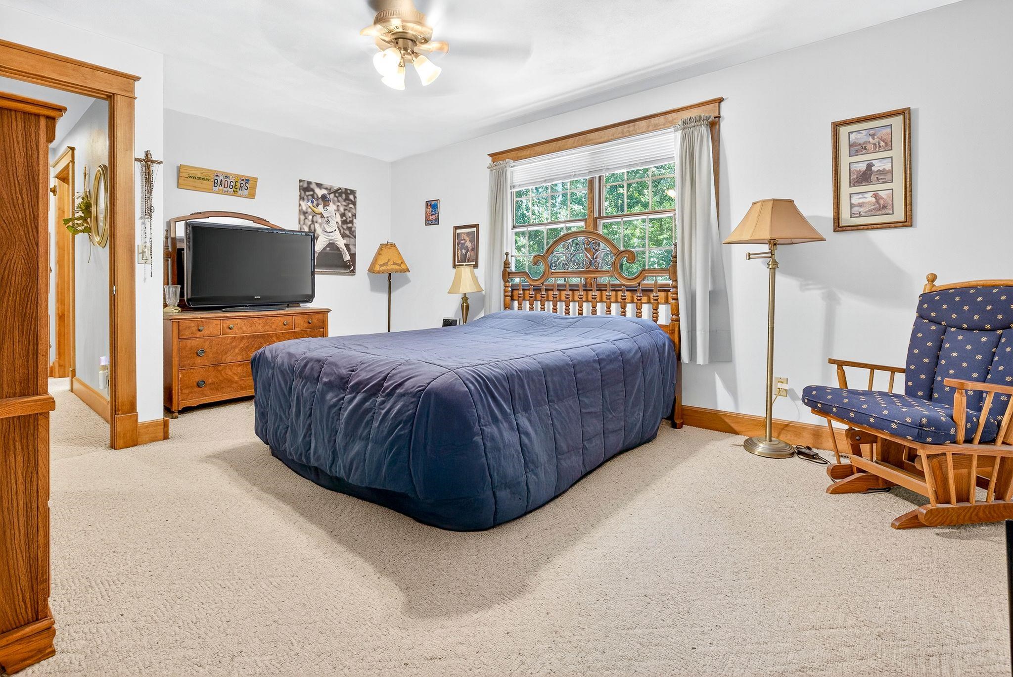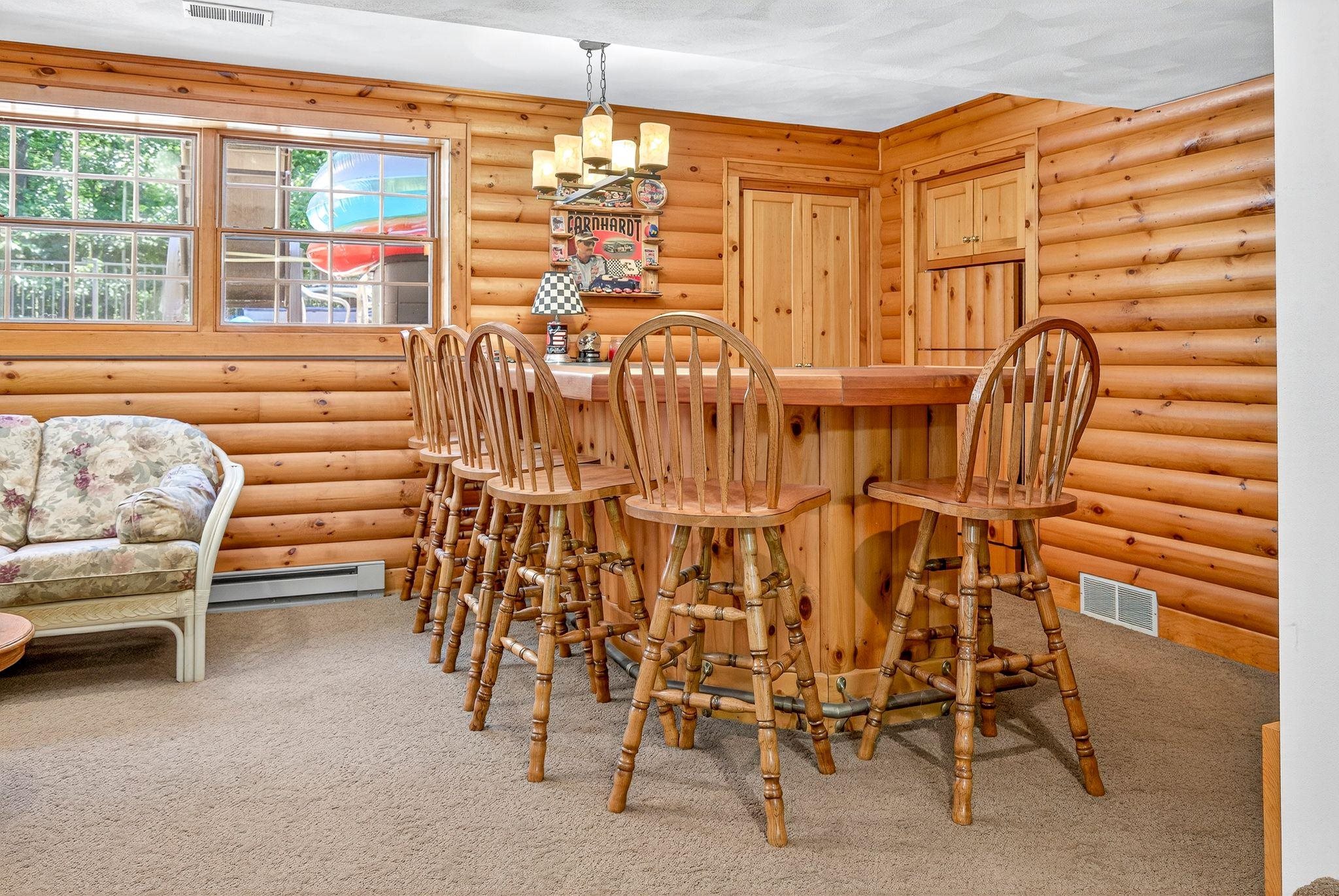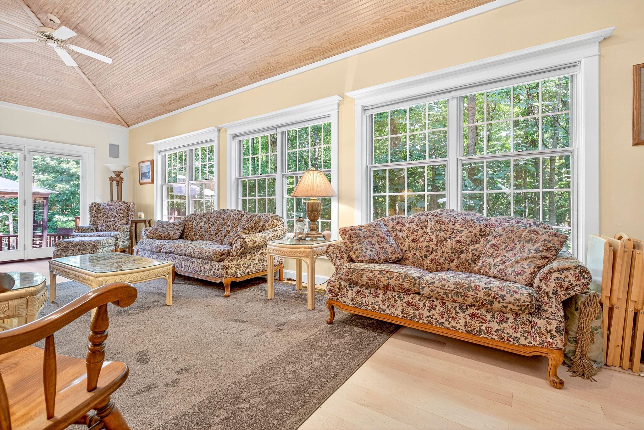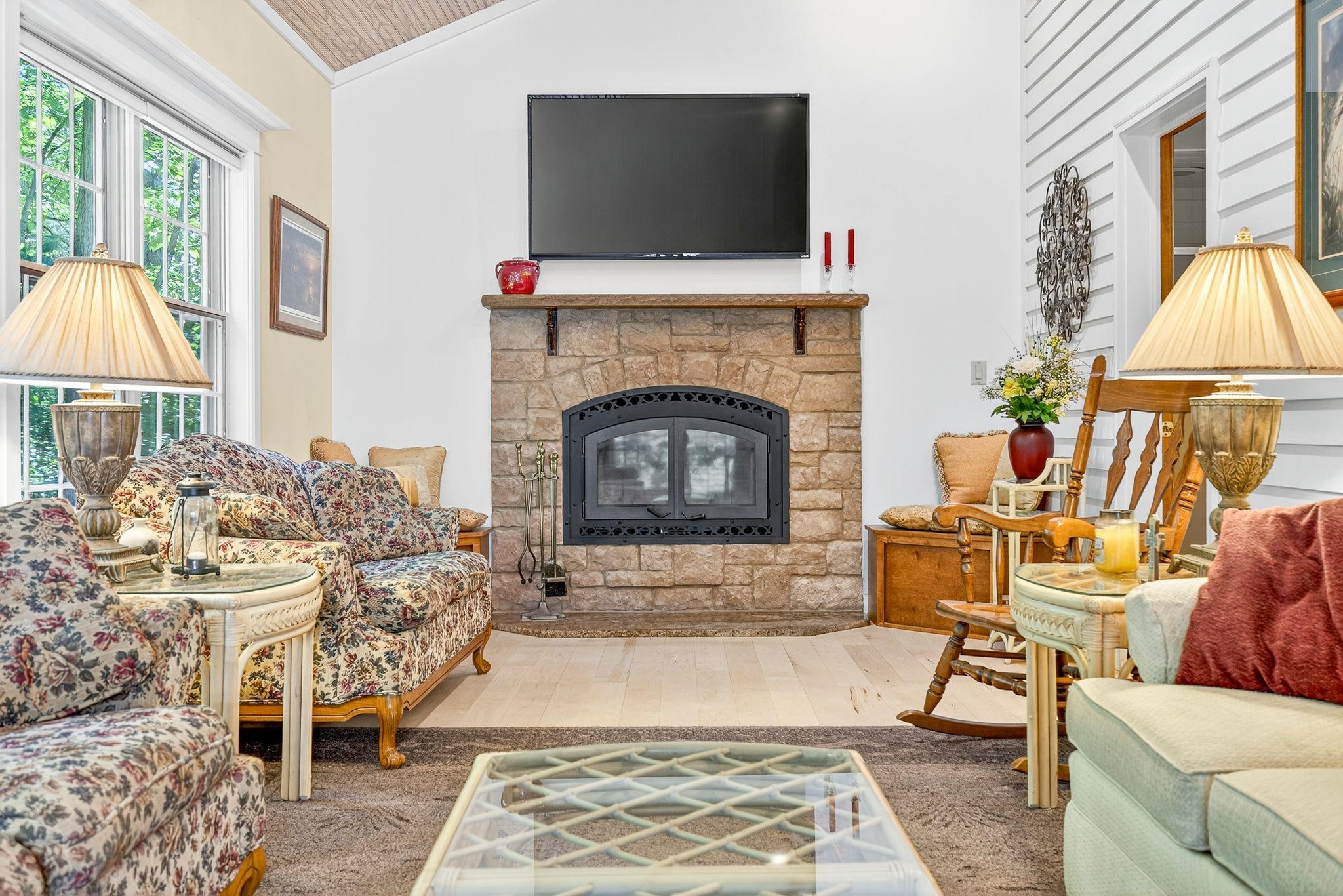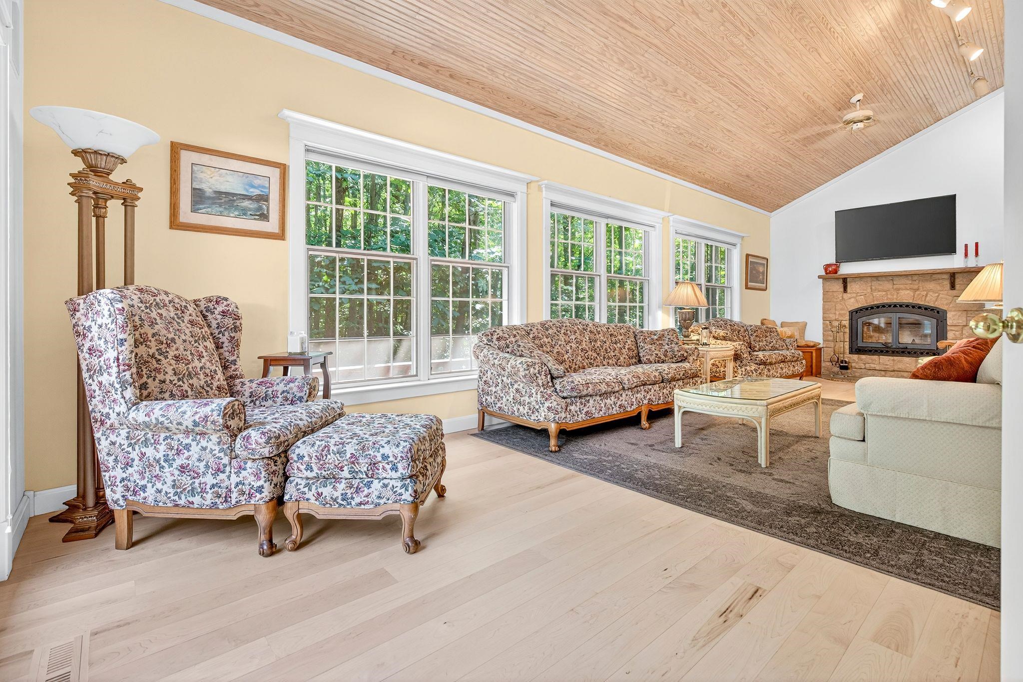Your secluded retreat awaits - impeccably maintained modern chalet-style home nestled on private, wooded .78-acre lot. This exceptional property offers abundant living spaces both indoors and out. The chef’s delight kitchen features solid surface counters, SS appliances, a pantry and large island. Stunning sunlit 4-seasons room with vaulted wood ceiling & cozy wood-burning FP creates the ideal year-round retreat. Step outside to your personal oasis with a multi-level deck, patio, and heated inground sport pool—perfect for entertaining or relaxing on warm summer days. The main floor owner’s suite featuring a spa-like bath, finished LL with versatile rec/hobby space and the massive 36x28 attached garage completes the pkg. Minimum 48-hrs binding acceptance, 60-day close preferred.