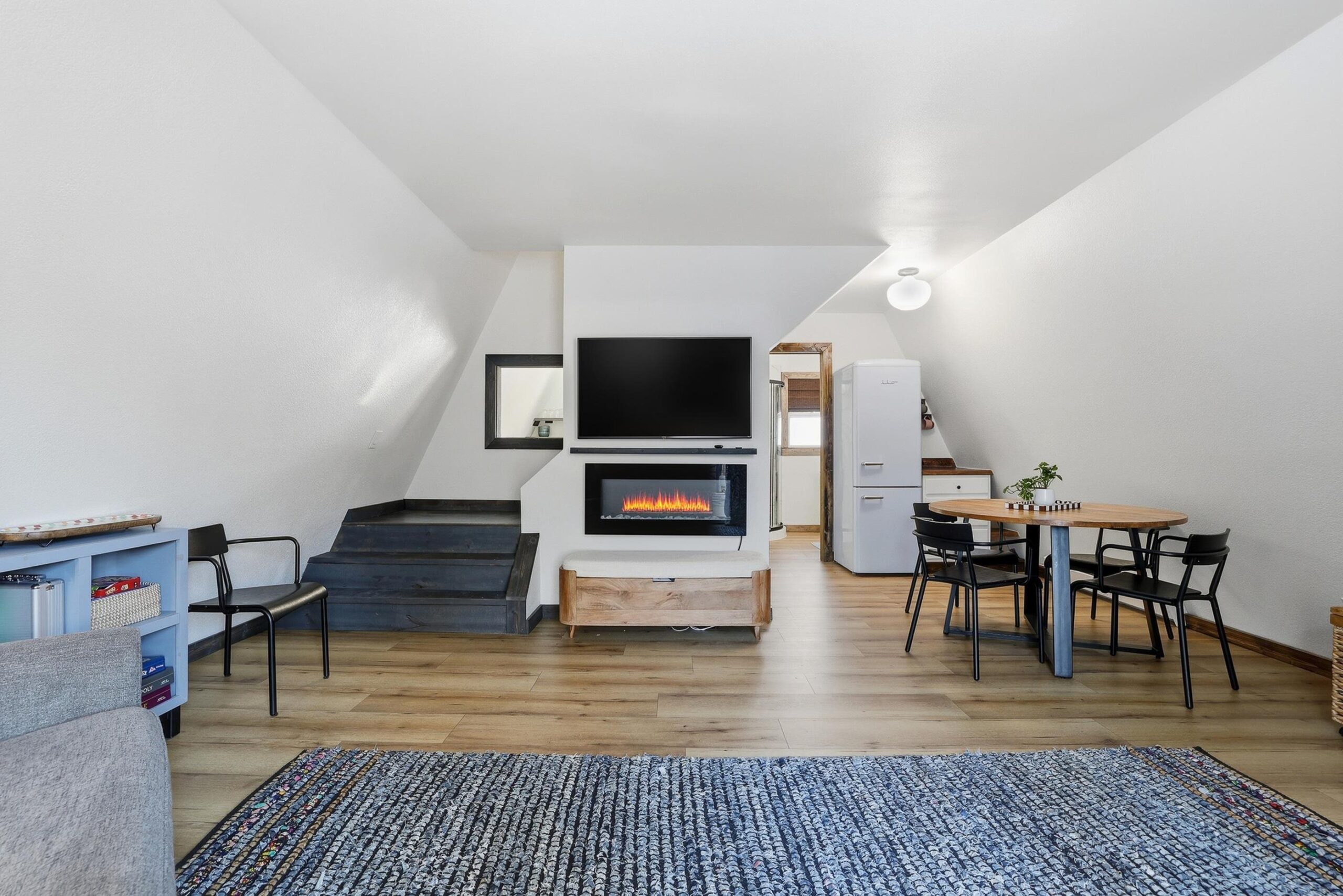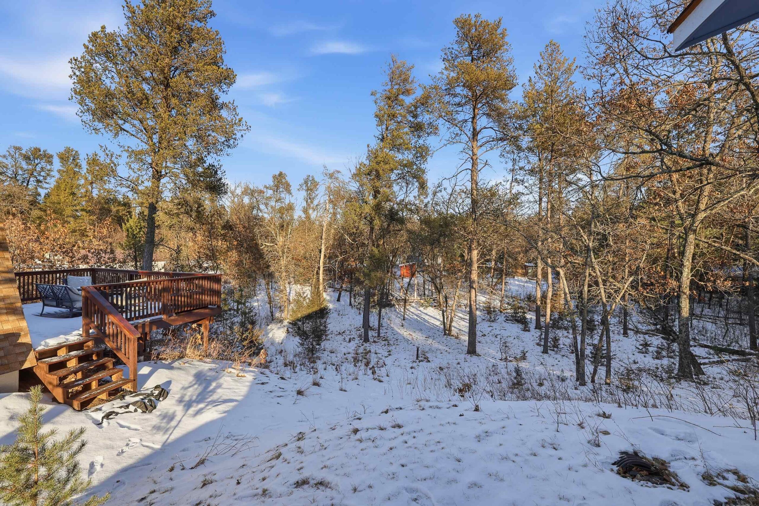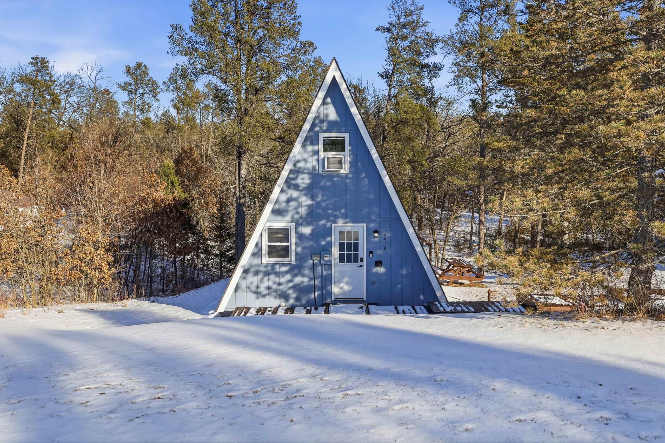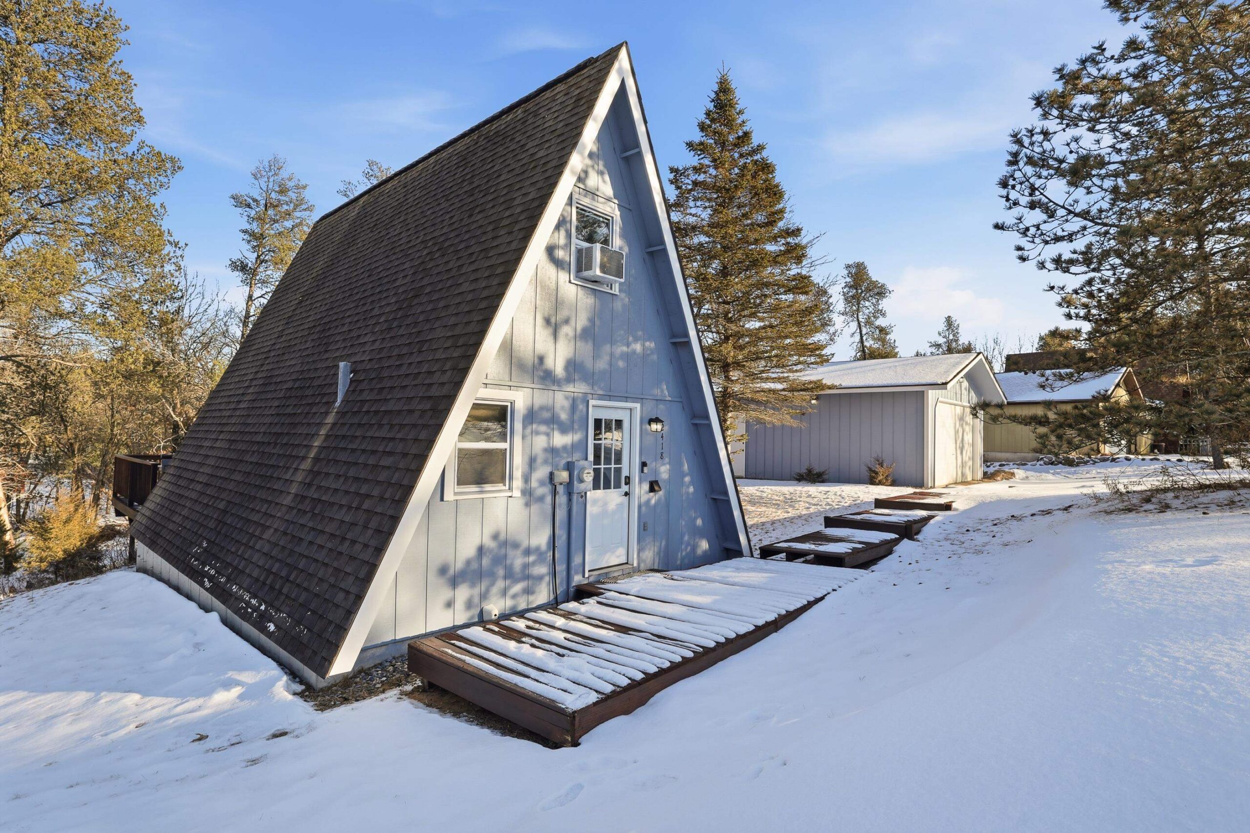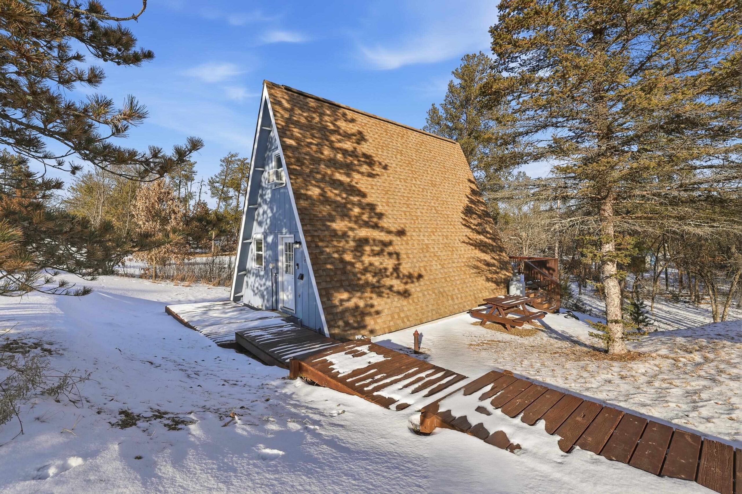 Super cute remodeled A-Frame! 2 Full bedroom and 1 Full bath with a large 2 car detached garage, located on a .46 acre lot. Updates galore! Updates completed early 2025 and added to seller's short term rental inventory. Gross income in 2025 $19,000+!!! Located within minutes of Castle Rock Lake. Literally seconds from ATV and snowmobile trails, and just a short drive to world class golf of Sand Dunes and other popular courses. Newer AC units, newer electric fireplace. LP or electric heat options. Newer flooring, interior/exterior doors, garage roof, paint exterior/interior, repair and stain on deck, washer/dryer + hookups, bathroom completely remodeled, kitchen counter tops and sink, Lighting throughout, and newer bar/drink station.